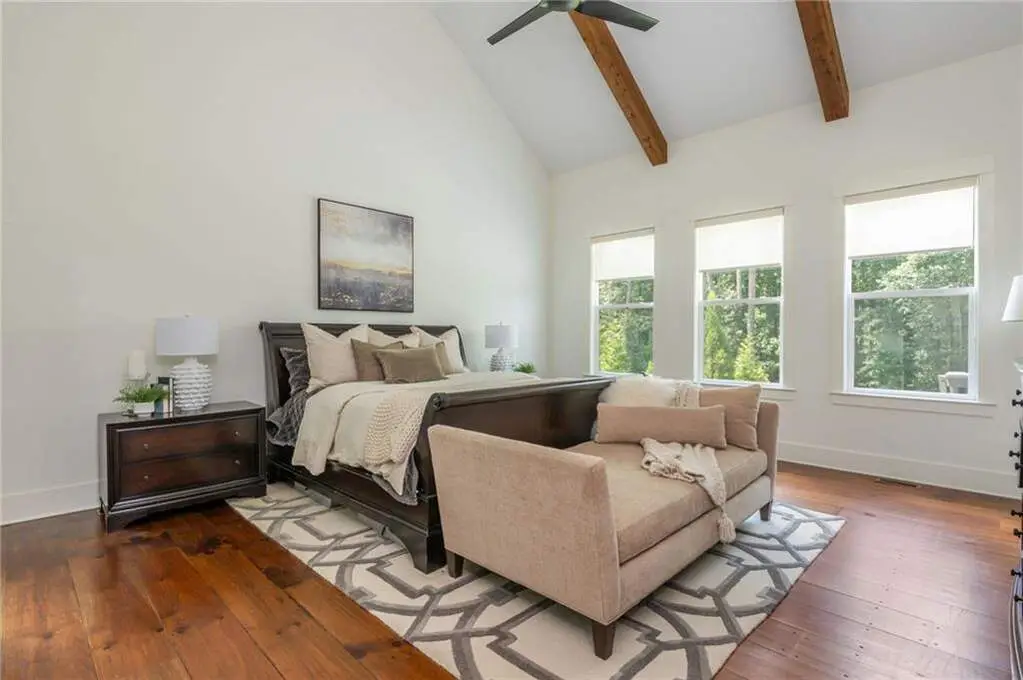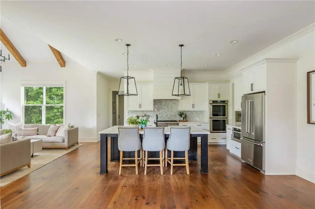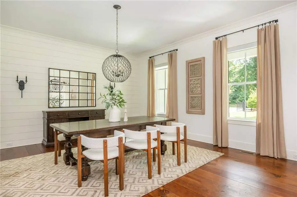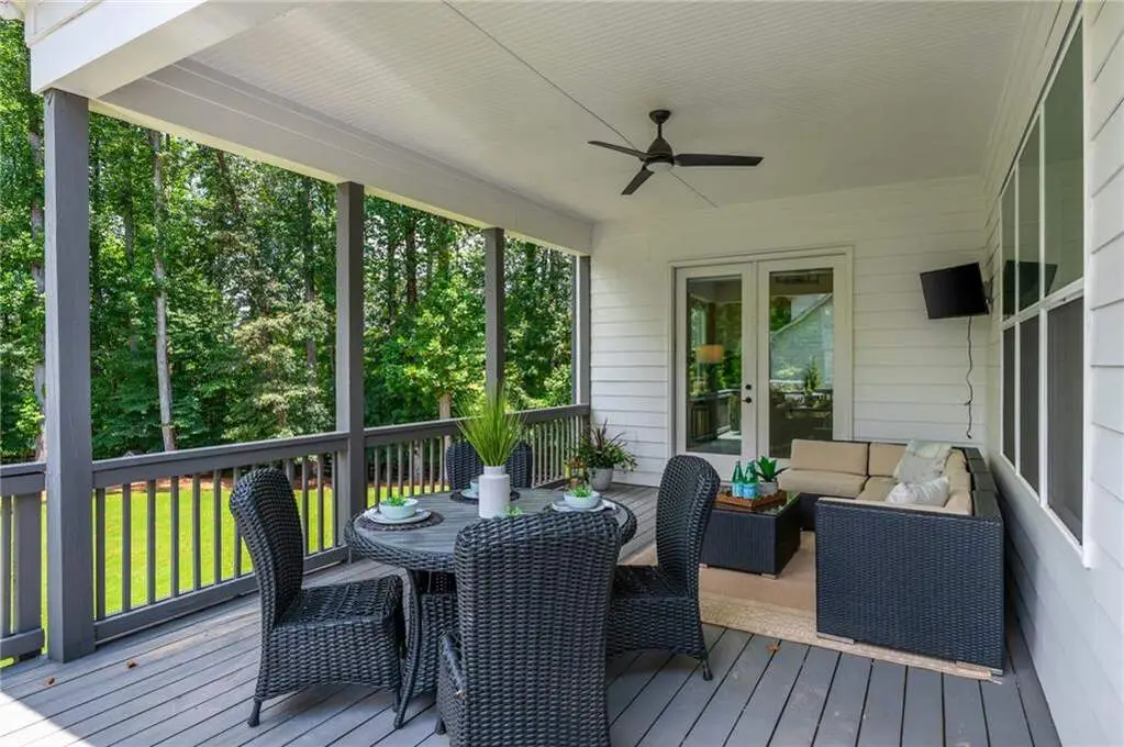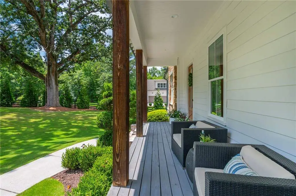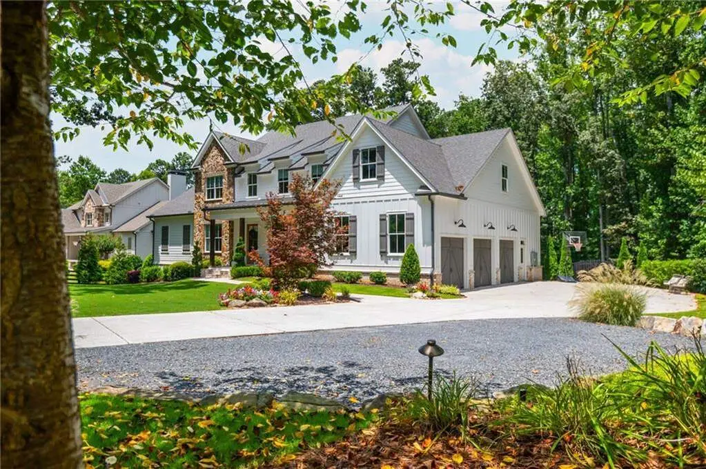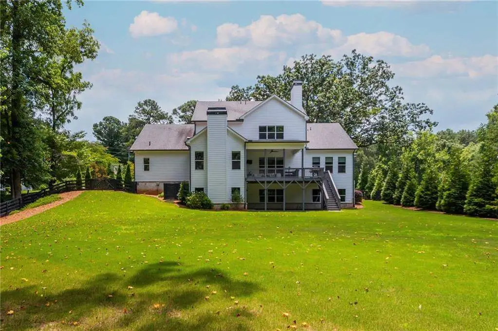 Welcome to 15430 Birmingham Highway! This is an exceptional opportunity to own a custom-built, gated home in the highly sought-after Birmingham Falls/Northwestern/Milton school district, all for under $1.5 million. Set on a beautifully landscaped property with over $100K in recent outdoor enhancements, this 5-bedroom, 5.5-bath home offers timeless design, thoughtful upgrades, and abundant living space inside and out. A charming front porch overlooks the lush front yard and leads into a warm, inviting interior where gorgeous heart of pine floors and beamed ceilings capture your heart. The open-concept layout features a spacious family room with fireplace and custom built-ins, elegant separate dining room with butler's pantry, and a large chef's kitchen with 6-burner gas range, double ovens, large walk-in pantry, built-in microwave, and a generous island with seating for six. Adjacent is a cozy fireside keeping room, perfect for relaxed gatherings or everyday living. Highly desirable primary suite on the main level includes vaulted, beamed ceilings, double vanities, a soaking tub, oversized walk-in shower, and a custom walk-in closet. A main-level guest suite offers flexibility for visitors, multigenerational living, or is perfect as an office. Tucked away you will also find a well-designed mudroom and laundry room with a sink and storage. Upstairs are three additional bedrooms, two full baths, a large bonus/media room, and even more finished space (Approx. 513 sq. ft.) thanks to the newly finished bonus room ($60K) above the garage, complete with 3 storage areas. The unfinished daylight basement includes a recently installed full bathroom and HVAC system with duct work to all areas. The basement is also partially wired with electrical outlets and low voltage for TV and internet. The fully fenced flat backyard is a true highlight with fresh sod, trees, and irrigation. Enjoy views of the well manicured lawn and mature trees surrounding the property from the expansive deck. The 3-car garage is equipped with a 240-volt outlet for electric car charger. Other notable upgrades include a new upper-level HVAC system, security gate with internet control, whole home external security cameras, home automation lighting control, uNiFi access points on all levels, irrigation system throughout the property, landscape lighting, and a separate parking pad. This is a prime opportunity to own a move-in ready, thoughtfully maintained property with high-end finishes, modern conveniences, and room to grow all in one of Milton's most coveted school zones within close proximity to popular Scottsdale Farms, 7 Acre Barn & Grille, Publix, and more!