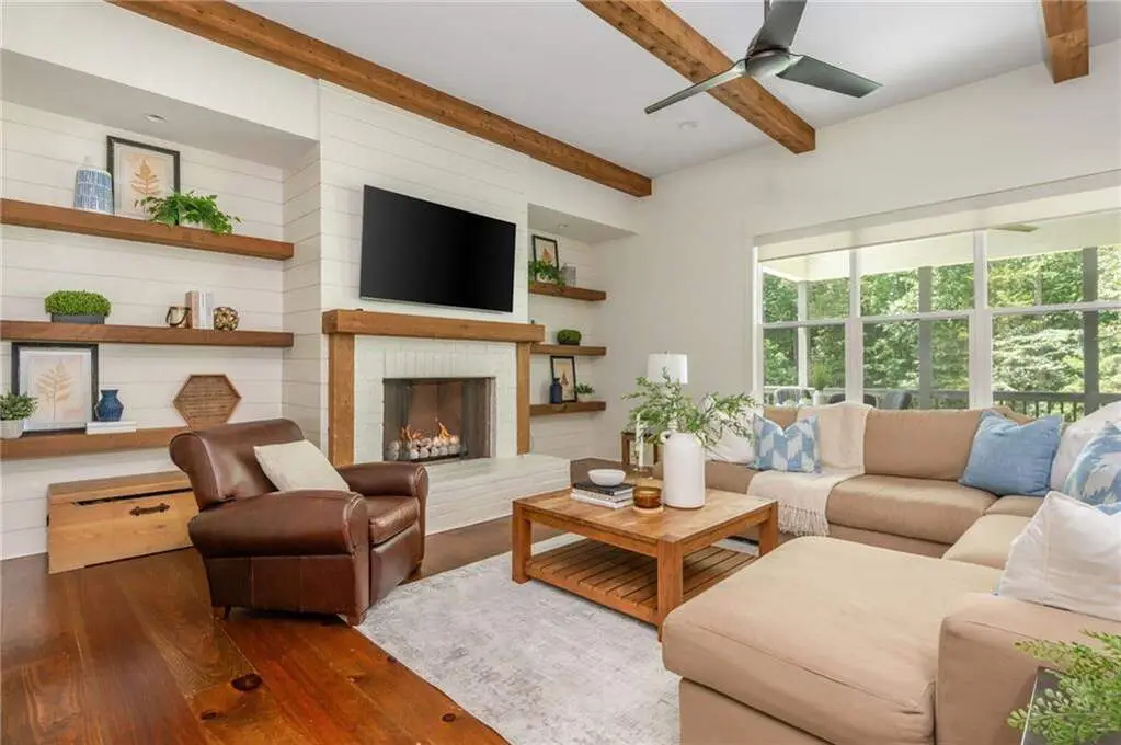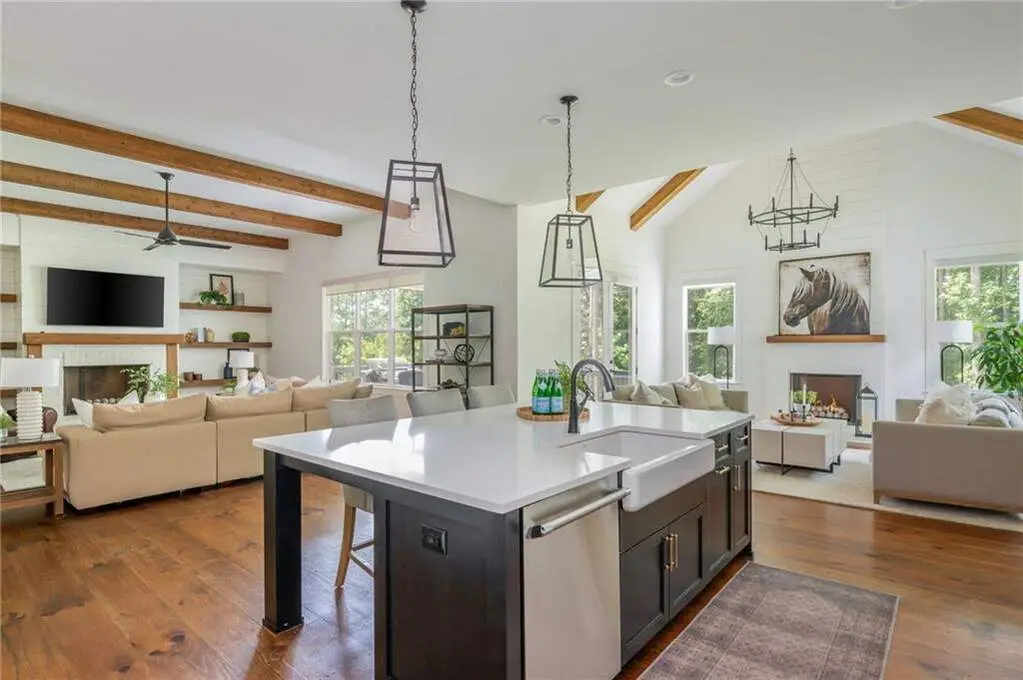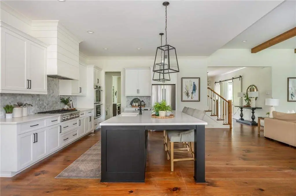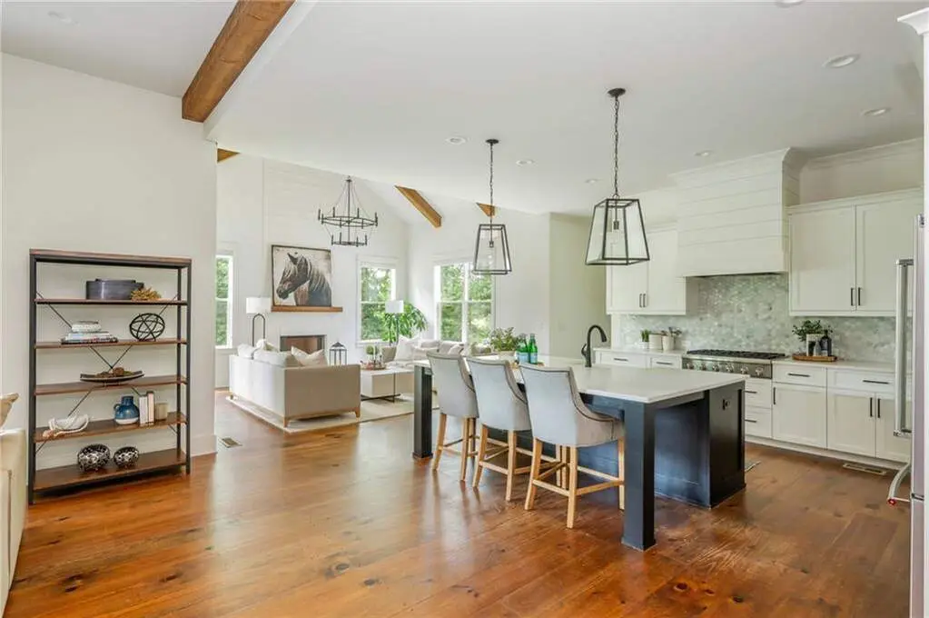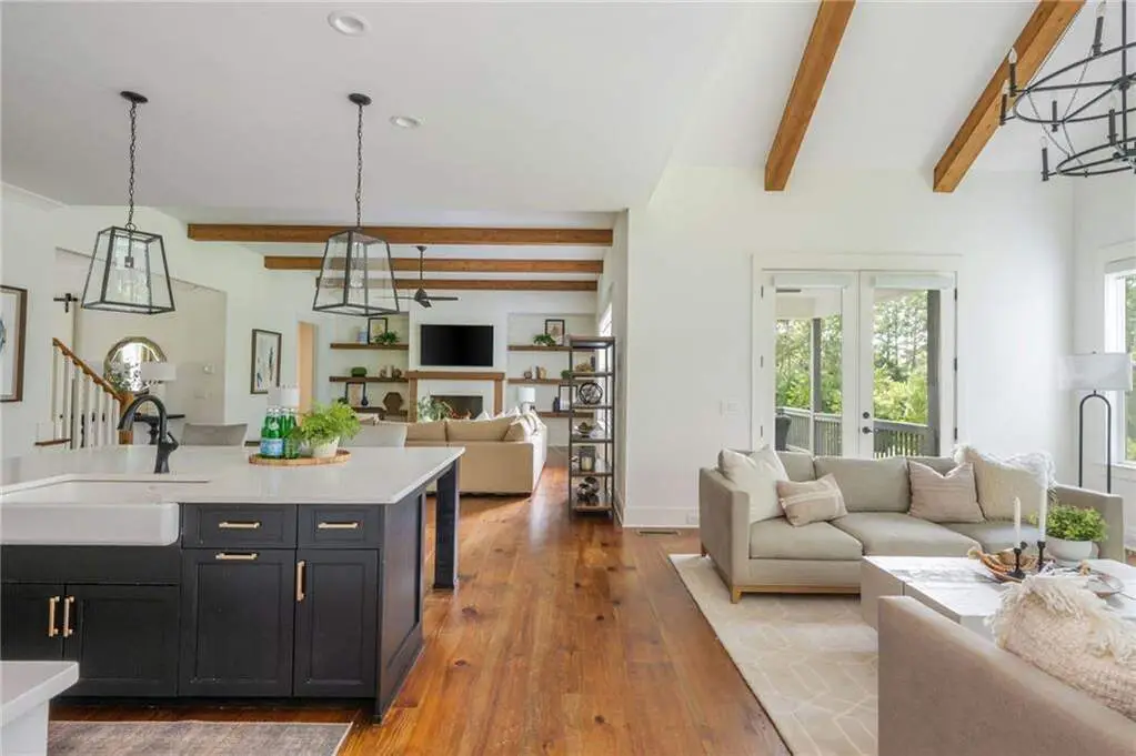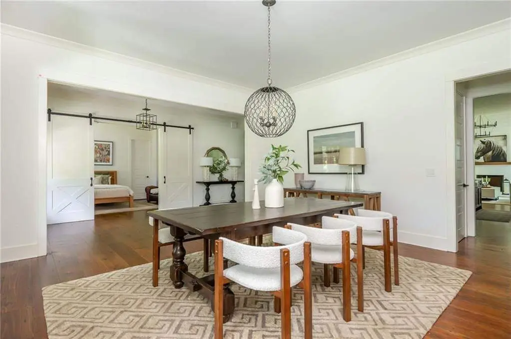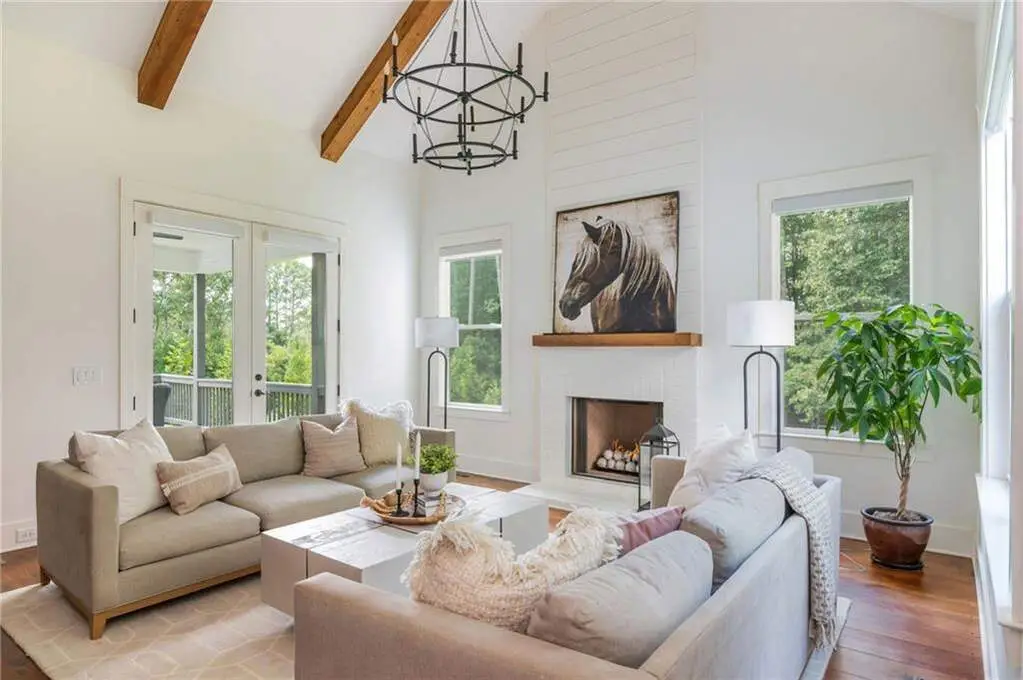 Welcome to 15430 Birmingham Highway! This is an exceptional opportunity to own a custom-built, gated home in the highly sought-after Birmingham Falls/Northwestern/Milton school district, all for under $1.5 million. Set on a beautifully landscaped property with over $100K in recent outdoor enhancements, this 5-bedroom, 5.5-bath home offers timeless design, thoughtful upgrades, and abundant living space inside and out. A charming front porch overlooks the lush front yard and leads into a warm, inviting interior where gorgeous heart of pine floors and beamed ceilings capture your heart. The open-concept layout features a spacious family room with fireplace and custom built-ins, elegant separate dining room with butler's pantry, and a large chef's kitchen with 6-burner gas range, double ovens, large walk-in pantry, built-in microwave, and a generous island with seating for six. Adjacent is a cozy fireside keeping room, perfect for relaxed gatherings or everyday living. Highly desirable primary suite on the main level includes vaulted, beamed ceilings, double vanities, a soaking tub, oversized walk-in shower, and a custom walk-in closet. A main-level guest suite offers flexibility for visitors, multigenerational living, or is perfect as an office. Tucked away you will also find a well-designed mudroom and laundry room with a sink and storage. Upstairs are three additional bedrooms, two full baths, a large bonus/media room, and even more finished space (Approx. 513 sq. ft.) thanks to the newly finished bonus room ($60K) above the garage, complete with 3 storage areas. The unfinished daylight basement includes a recently installed full bathroom and HVAC system with duct work to all areas. The basement is also partially wired with electrical outlets and low voltage for TV and internet. The fully fenced flat backyard is a true highlight with fresh sod, trees, and irrigation. Enjoy views of the well manicured lawn and mature trees surrounding the property from the expansive deck. The 3-car garage is equipped with a 240-volt outlet for electric car charger. Other notable upgrades include a new upper-level HVAC system, security gate with internet control, whole home external security cameras, home automation lighting control, uNiFi access points on all levels, irrigation system throughout the property, landscape lighting, and a separate parking pad. This is a prime opportunity to own a move-in ready, thoughtfully maintained property with high-end finishes, modern conveniences, and room to grow all in one of Milton's most coveted school zones within close proximity to popular Scottsdale Farms, 7 Acre Barn & Grille, Publix, and more!