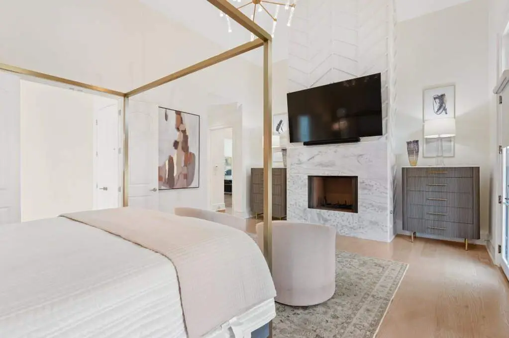 Impeccably maintained home that embodies luxurious finishes, curated spaces, and is designed for relaxing living has a beautiful yard with sparkling pool and fabulous view of the golf course. Sun-filled entry opens to spacious Dining Room/Flex Room with fireplace and overlooks the yard and pool. Wide staircase to all levels and elevator to all levels. Gourmet Kitchen has lots of cabinets for storage space, center island, top-of-the-line appliances, walk-in pantry, additional ovens, and dedicated bar space. Kitchen is open to two-story Great Room with fireplace and large windows that overlook yard and pool, and opens out to covered back porch. Private Main level Owners Suite opens out to backyard and includes a fireplace, two walk-in closets with built-ins, and a luxurious bathroom with double vanities, separate dressing/vanity area, soaking tub, heated towel rack, and spa shower. Main level Laundry Room includes dog washing area. Upper level is amazing and includes four bedroom suites - each of which includes a private bathroom and walk-in closet. A spacious laundry room is also located upstairs, as well as a storage/craft/exercise room. Walk-up attic staircase. Finished terrace level features a custom-built bar area, game area, family room, finished room that would be ideal for a future theater room, full bedroom suite and full bathroom. Easy access to the Clubhouse, practice green, and amenities. Gated community. Close to grocery stores, restaurants, Greenway, and GA 400.