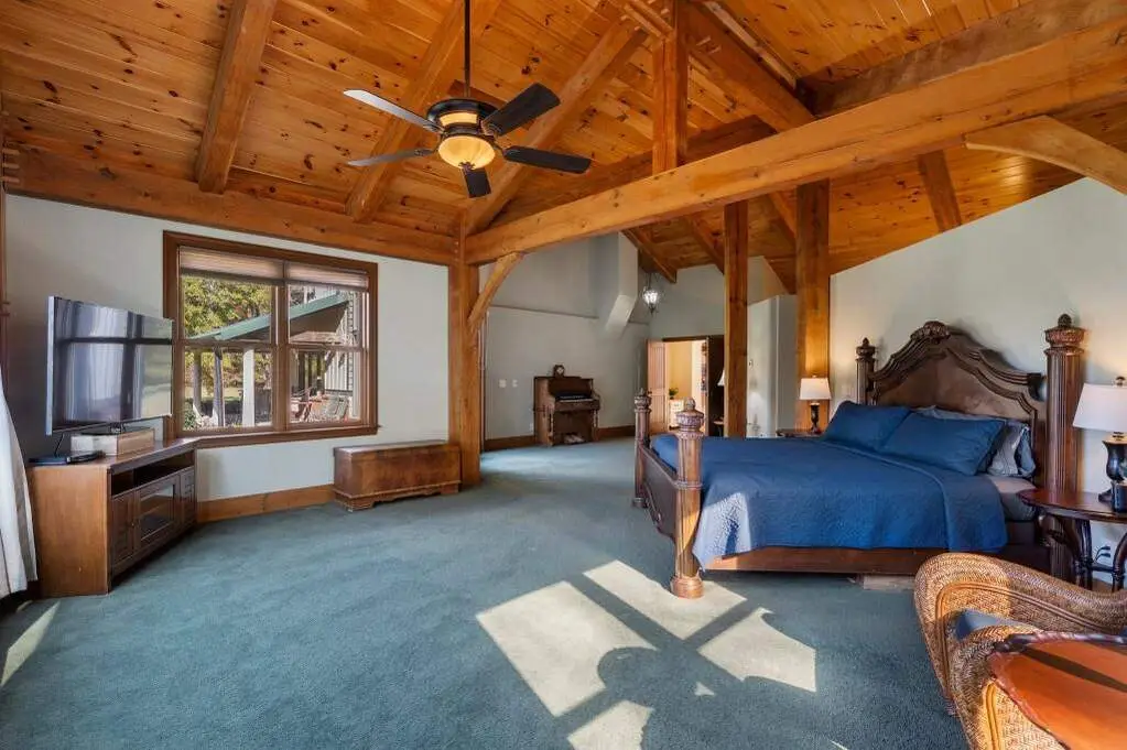 Nestled on over 16 +/- acres, this custom-built home is truly a unique gem. This astounding property features; expansive picture-book grounds, a serene pond, a detached four-car garage with a finished loft space and so much more. As you approach this stunning home you will begin to notice all the intricate details; greeted by the eclectic charm of this impressive home, from the white oak beams, the lofty vaulted ceilings, and intricately designed iron railings, to the floor-to-ceiling windows that fill the home with warmth and light, this home offers a quiet oasis. The main floor has designated spaces while also offering an open floor plan; including a cozy library and office, a formal dining room, a theatre room, and a well-appointed kitchen complete with a walk-in pantry. The chef's kitchen boasts a charming breakfast nook that overlooks the scenic landscape, two dishwashers, stainless steel appliances, and a kitchen island made of exquisite cut stone. This culinary space flows beautifully into the living room, where family and friends can gather around the handcrafted fireplace while enjoying views of the tranquil pond. Venturing beyond the living room, you'll discover the expansive primary suite with two custom closets, a linen closet, and a luxurious spa-like bath featuring a soaking tub adorned with a stained glass window, a custom stone shower, and charming separate vanities. Additionally, on the main floor, you will find a bonus room that is ideal as a guest room or office space and a fully equipped laundry room. As you make your way up the staircase, you'll come across two cozy loft spaces, a billiards and game room, and a quaint living space with a Juliet balcony overlooking the beautiful landscape. There are three guest suites on this level, each with oversized closets and adjoining Jack and Jill baths. The stone wrap-around porches are truly magnificent and perfect for a rocking chair or swing to enjoy the tranquil outdoors. The four-car garage is the pe