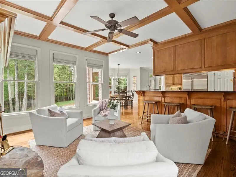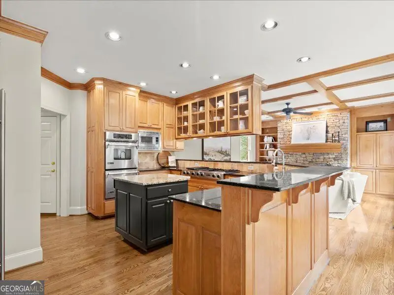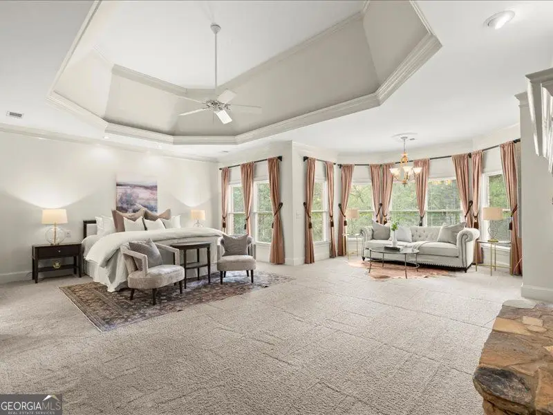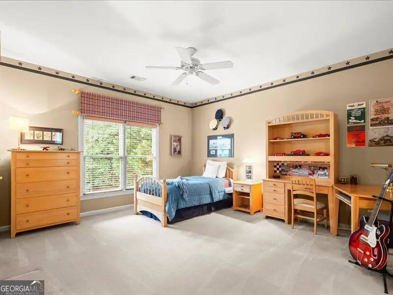 Welcome home to this amazing home in the sought after Seven Oaks Community. This home sits on almost an acre private lot in a cul-de-sac. The main home boasts 7 bedrooms, 5 full and 1 half baths. The Carriage house adds another bedroom and full bath making the total 8 bedrooms and 7 baths. There are 4 garage spaces and plenty of parking. This home can meet all your needs! Enter this beautiful home into the magnificent two-story foyer which opens to the oversized formal dining room and office with custom built in shelving. The grand room is a show stopper with its amazing wall of windows, custom built in shelves and an antique fireplace mantle (dating back to the 1800's). The kitchen is a chef's delight with top-of-the-line appliances including double convection oven, JennAir cook top with griddle and grill and Sub-Zero refrigerator. The cozy keeping room off the kitchen is great for a fire side gathering or just to relax and watch TV. Dine in the oversized breakfast area. You will also find on the main floor a large bedroom with en-suite bath. A powder room is the final touch on this floor. On the second floor-3 oversized bedrooms and the primary suite. Two bedrooms share a Jack and Jill bath and one has an en suite bath. The primary is enormous with beautiful stacked stone fireplace and sitting area. The updated master bath and oversized closet complete this room. Laundry will be easier with the laundry room on this second floor. Head to the basement and you will discover a 2-bedroom apartment complete with full kitchen and laundry! This apartment has a walk out to the large, enclosed patio overlooking the back yard. The other side of the basement is where you will find your entertainment with pool table, TV viewing area or play a game at the card table. This private wooded back yard has a play set, large decking and patio area, and has the perfect spot for a pool. The 2-car Carriage house has a finished area upstairs for your studio apartment, private office, man cave - there are so many uses for this wonderful space. Johns Creek has been recognized by US News & World Reports and Architectural Digest as the country's BEST place to live in 2025!! Seven Oaks has wonderful amenities to include tennis courts, swim, parks, sidewalks, basketball court and more. Seven Oaks is located close to shopping, parks, restaurants and just a few miles from the new Medley Johns Creek opening in 2026. Schedule your showing today to see this amazing home.