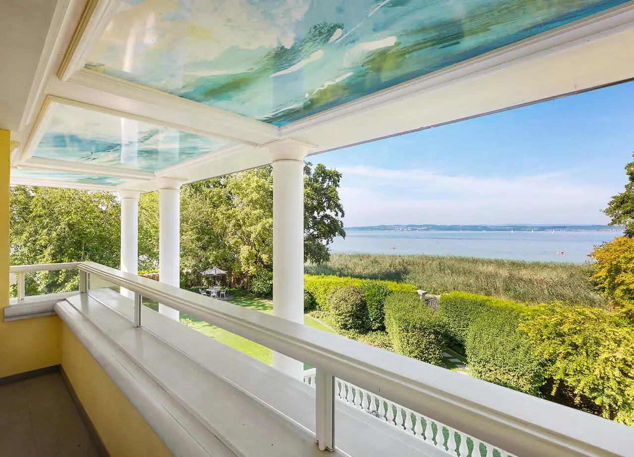 Villa "IMPERIAL" – A Residence for Generations Located on one of the most exclusive Swiss lakefronts, Villa "IMPERIAL" combines timeless architecture with direct lake access and a park-like setting. The estate spans over 5,078 sqm and features a grand driveway with fountain, mature trees, a pond, and a pavilion – offering the privacy and elegance of a true retreat. The village blends peaceful, rural charm with excellent connections: Kreuzlingen, Konstanz, St. Gallen, and Zurich are all easily accessible. The region is known for its mild climate, lakeside promenade with marina, sunlit vineyards, and rich leisure opportunities – making it ideal for families and global citizens alike. From the moment you arrive, the property impresses with its sense of grandeur. A stately entrance leads into a high-ceilinged foyer with a sweeping staircase, setting the tone for the refined interiors, featuring natural stone floors, fine woodwork, and an atmospheric lighting design.