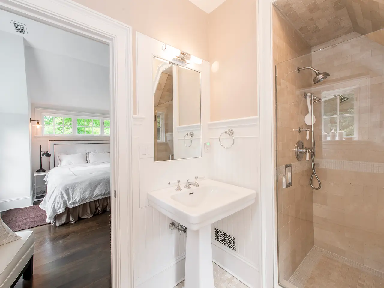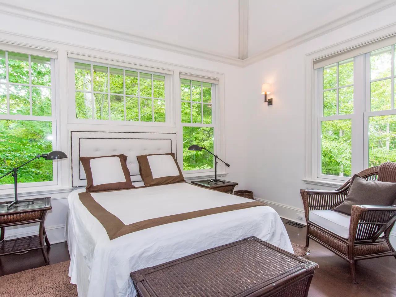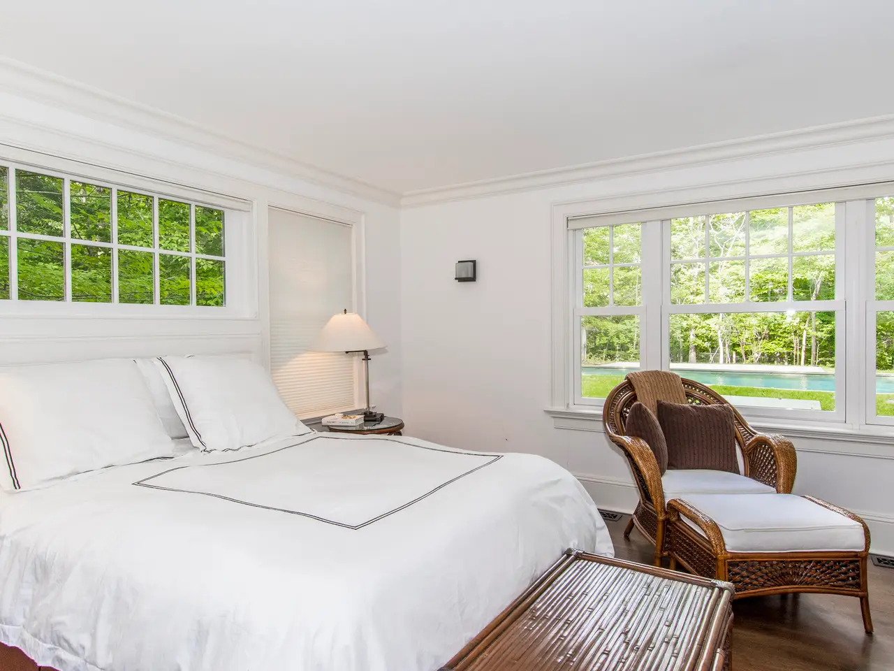 Rental Reg. # 22-1532. Great Hamptons style in Amagansett's Bell Estate. Less then two miles to ocean and beaches and one mile from the bay, close to town, this classic five-bedroom, four-and-a-half-bathroom tradition has every amenity and plenty of style. There's lots of open space for living including a lovely great room with French doors leading to a stone patio which overlooks the 60-foot heated gunite pool, spacious open eat-in kitchen with large marble island and commercial-grade stainless steel appliances, formal dining room and a sun-room perfect for an afternoon of reading and relaxing. The layout of this architect-designed home ensures peaceful privacy for all in the beautiful setting of Amagansett's native American beech trees. The main house could be available as a three bedroom/2.5 bath. Listing ID: 736228