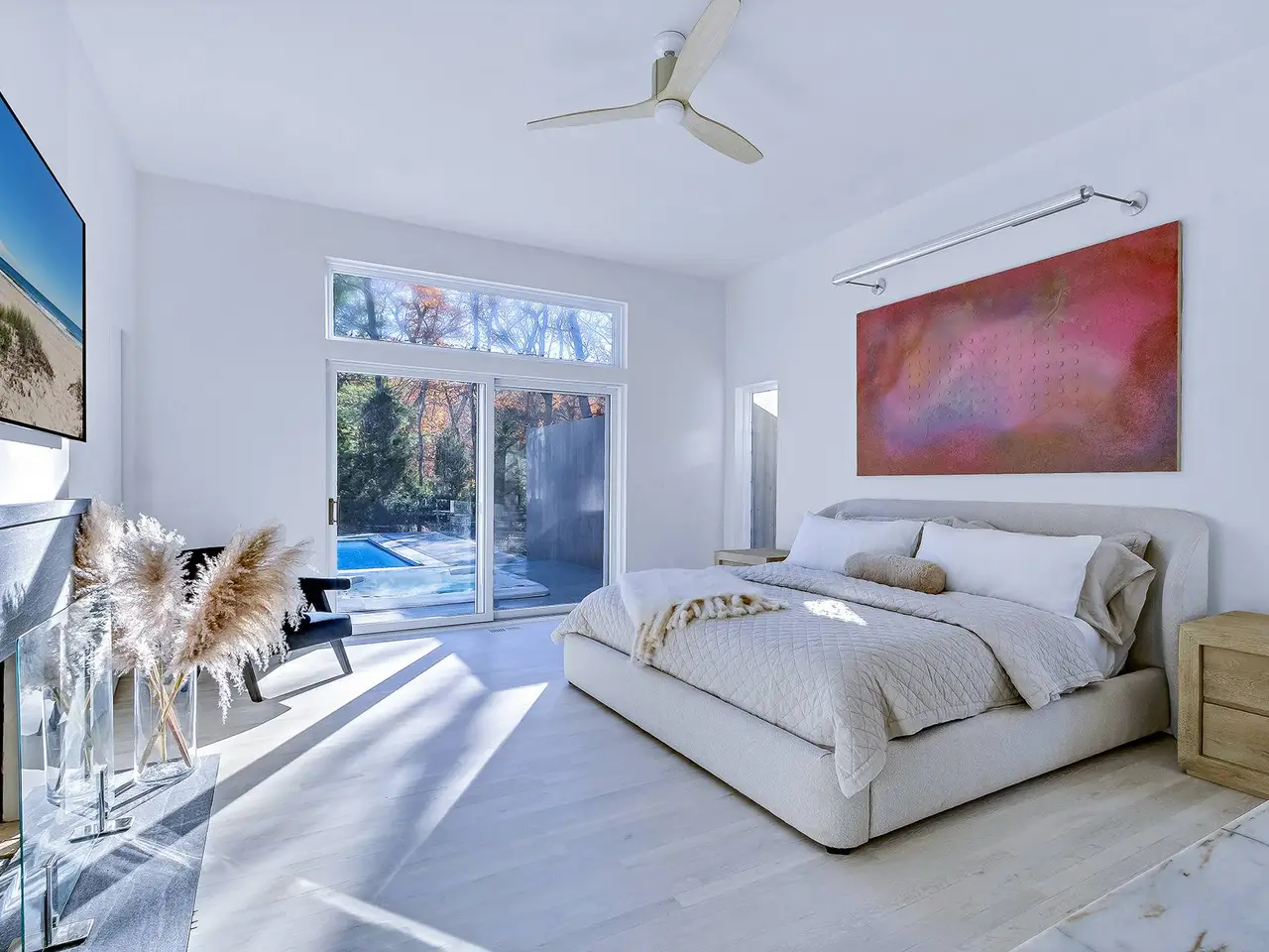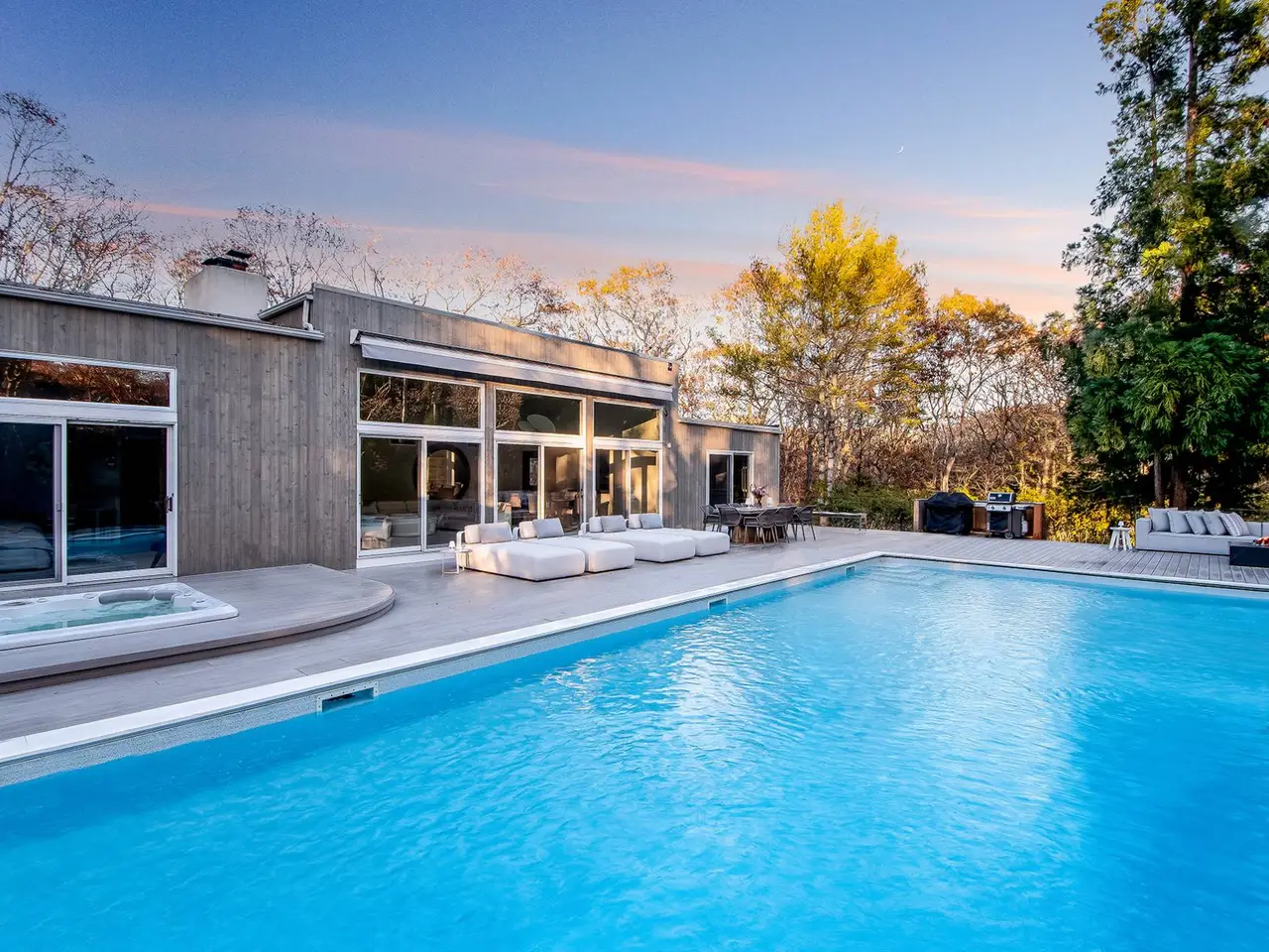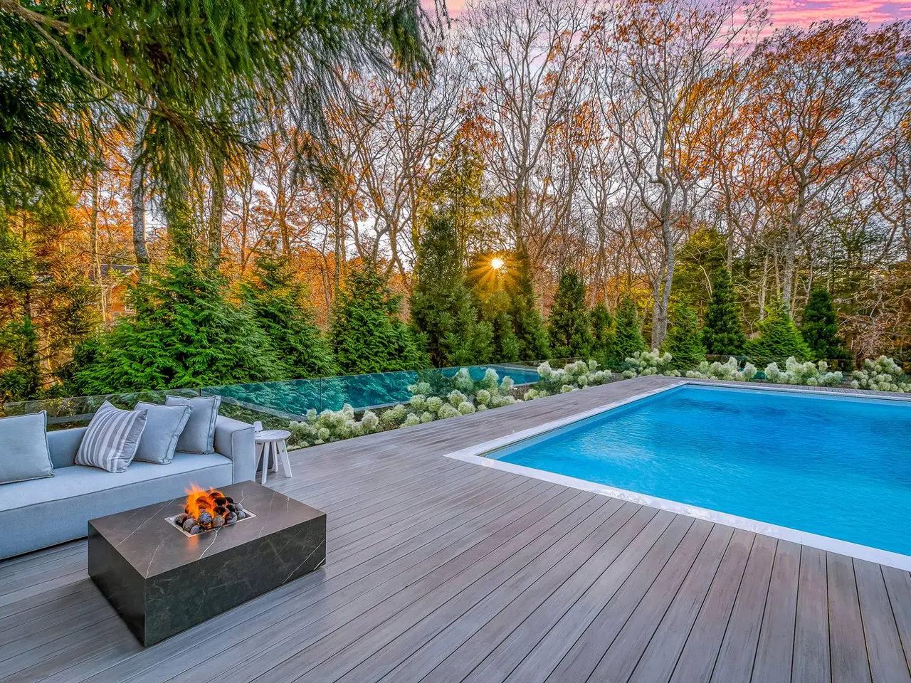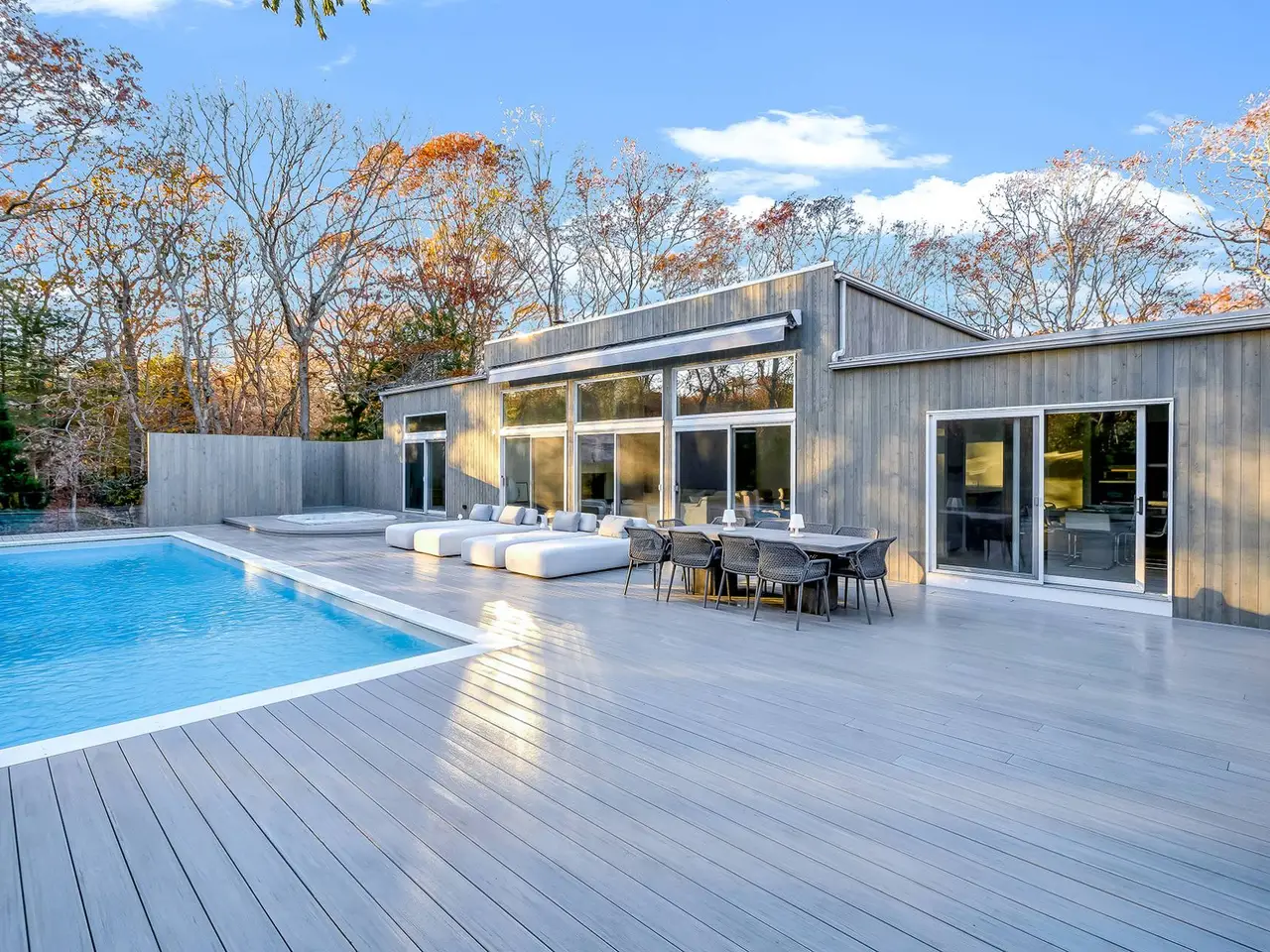 Nestled on 1.9 acres between the coveted Amagansett Ocean beaches and bay, this serene oasis combines style, comfort, and unparalleled amenities with 3700 sq ft of living space. The property exudes sophistication with its beautiful natural stone and lime-washed walls, set against a backdrop of lush landscaping and vibrant hydrangeas. Newly renovated and boasting five spacious bedrooms and four luxurious bathrooms; every detail of this home has been meticulously curated. The outdoor area is nothing short of spectacular. The expansive deck features a 20x40 heated pool, a 6-person spa, a refreshing cold plunge, and a convenient shower cabana. Entertain in style with an outdoor kitchen, generous dining table, sumptuous daybeds, a cozy sofa, and a stunning marble gas fire table. Enjoy even more amenities, including a Har-Tru tennis court, a wood-burning fire pit, a ping-pong table, and outdoor speakers. Step inside to find an open-concept layout that invites natural light through high ceilings, skylights, and glass sliders. The main level offers four bedrooms: primary en-suite king, junior en-suite king, two queen rooms. The spacious great room features a chic wood-burning fireplace, an 85' Samsung Frame TV, and stylish eat-in kitchen. The lower level has a windowed gym with a Peloton and infrared sauna, a cozy lounge with a wet bar, a full bath, and the fifth bedroom with two queen beds. There is laundry on both levels, ample workspace, and Smart TVs in every room. Invisible speakers in the great room, ambient pool lighting, a two-car garage, central air, and a security system complete this retreat. Ideally located, this perfect getaway harmonizes tranquility with effortless access to beaches, shopping, dining, and transportation.