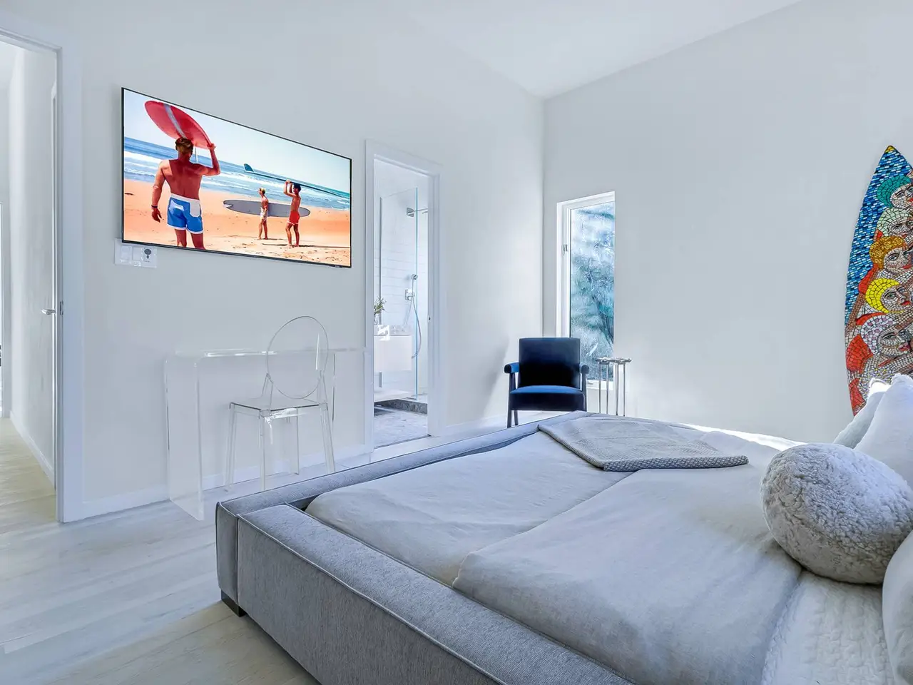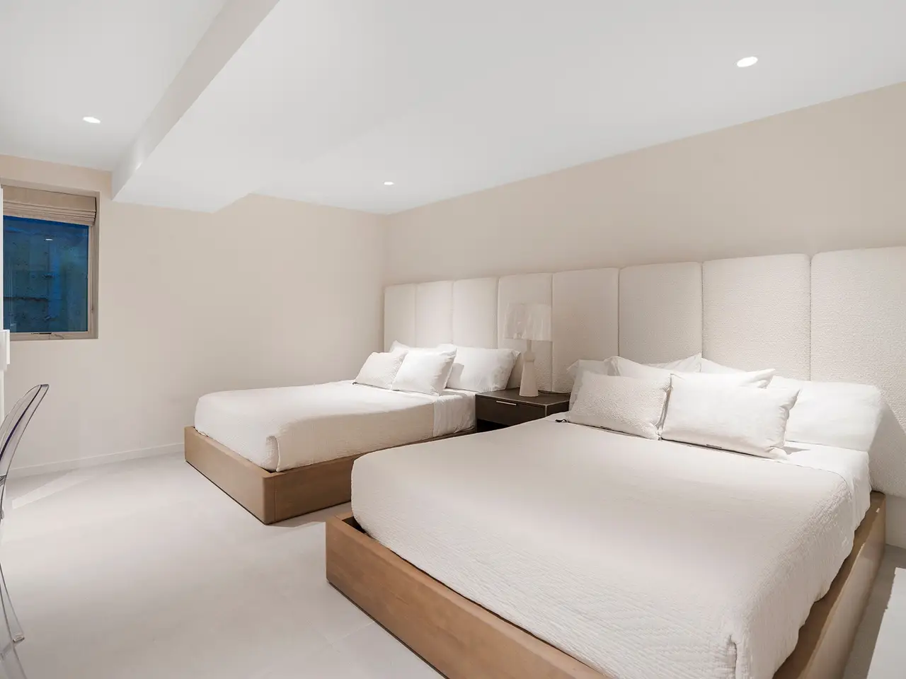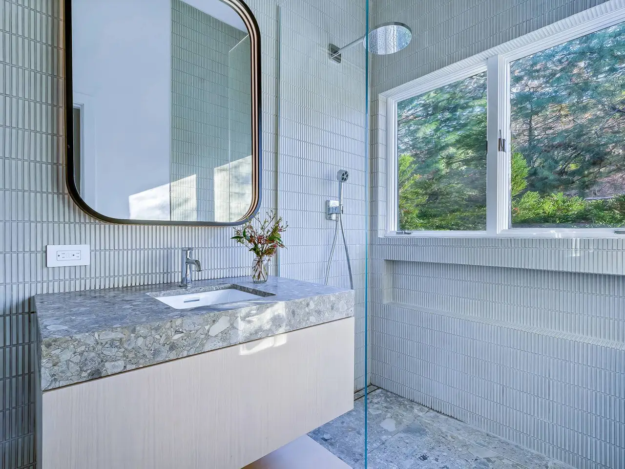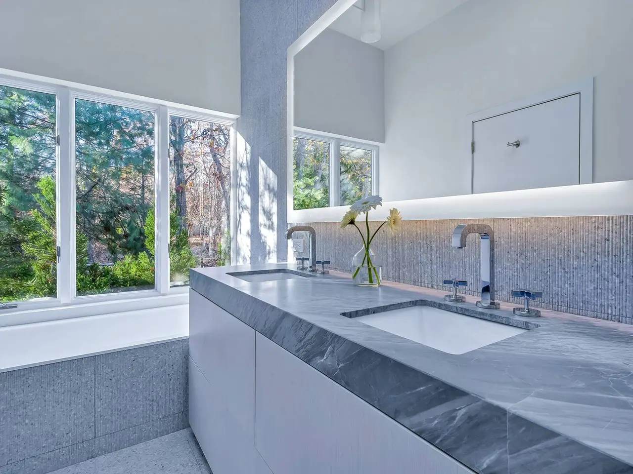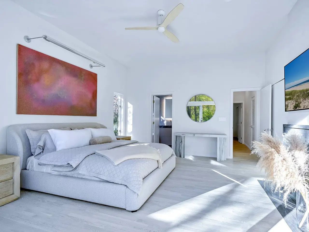 Nestled on 1.9 acres between the coveted Amagansett Ocean beaches and bay, this serene oasis combines style, comfort, and unparalleled amenities with 3700 sq ft of living space. The property exudes sophistication with its beautiful natural stone and lime-washed walls, set against a backdrop of lush landscaping and vibrant hydrangeas. Newly renovated and boasting five spacious bedrooms and four luxurious bathrooms; every detail of this home has been meticulously curated. The outdoor area is nothing short of spectacular. The expansive deck features a 20x40 heated pool, a 6-person spa, a refreshing cold plunge, and a convenient shower cabana. Entertain in style with an outdoor kitchen, generous dining table, sumptuous daybeds, a cozy sofa, and a stunning marble gas fire table. Enjoy even more amenities, including a Har-Tru tennis court, a wood-burning fire pit, a ping-pong table, and outdoor speakers. Step inside to find an open-concept layout that invites natural light through high ceilings, skylights, and glass sliders. The main level offers four bedrooms: primary en-suite king, junior en-suite king, two queen rooms. The spacious great room features a chic wood-burning fireplace, an 85' Samsung Frame TV, and stylish eat-in kitchen. The lower level has a windowed gym with a Peloton and infrared sauna, a cozy lounge with a wet bar, a full bath, and the fifth bedroom with two queen beds. There is laundry on both levels, ample workspace, and Smart TVs in every room. Invisible speakers in the great room, ambient pool lighting, a two-car garage, central air, and a security system complete this retreat. Ideally located, this perfect getaway harmonizes tranquility with effortless access to beaches, shopping, dining, and transportation.