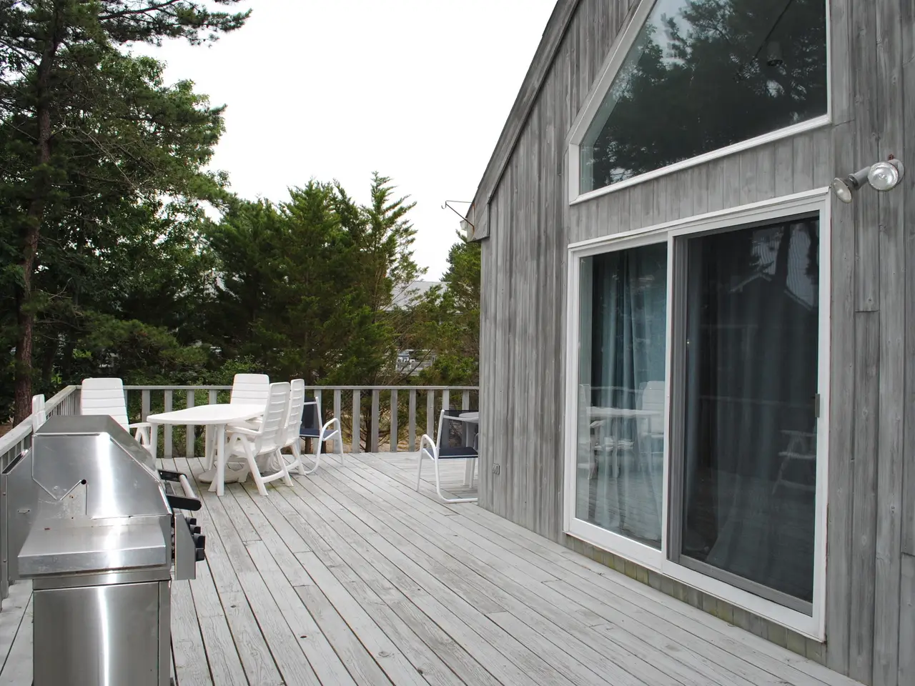 Rental Reg. # 24-127. Located one-half mile +- to either Amagansett or Napeague Ocean beach and with private beach access for community residents, this modern classic home provides 4 bedrooms and 2 full bathrooms on 0.23+- acre bordering reserve. The bright, open floorplan features a fully vaulted ceiling with a kitchen, living, and dining room. The living room is enhanced by glass sliders to surrounding decks and a masonry wood-burning fireplace. A primary en suite, with a recently renovated bath, includes vaulted ceilings with a skylight and a sitting porch; 3 additional spacious guest rooms, all with flat-screen televisions to complete the 1,950 +- SF residence. Additional amenities include central air-conditioning, a gas barbecue, a large outdoor walk-in shower, and ample guest parking. Listing ID: 736293