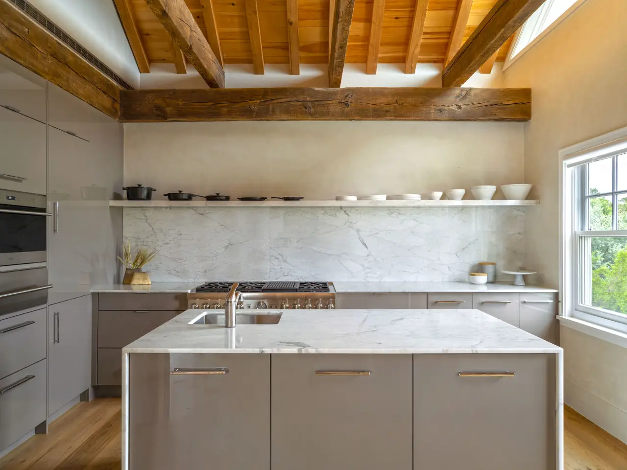 Perched on the water's edge, this recently transformed waterfront house features a timeless design and the luxury of a private beach overlooking the tranquil Gardiners Bay. Imagine leisurely lunches with your feet in the sand, swimming just steps away and watching wide open sunsets day after day. This unique offering includes the .22 acre adjacent lot providing space for a pool and guest house. The main level blends antique wooden beams with sleek Venetian plaster complemented by an abundance of natural light. Every detail, inside and out, is state of the art and has been incorporated to contribute to a feeling of quiet luxury and complete comfort. Natural landscaping from the dunes to the entrance ensures your privacy. A comprehensive list of systems and fittings, as well as a recent survey and certificate of occupancy are available. The home has deservedly garnered attention in multiple design publications. Private showing by appointment.