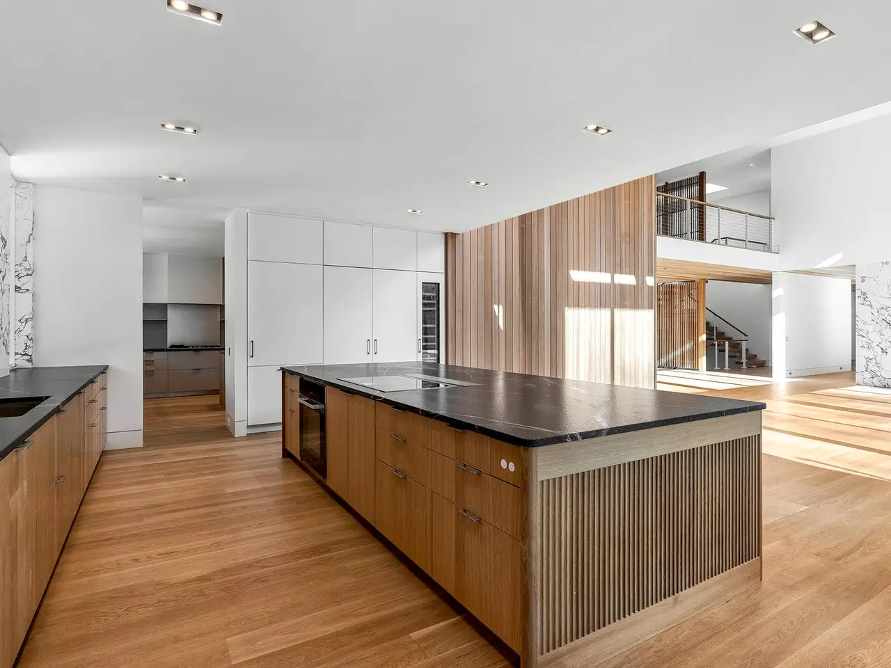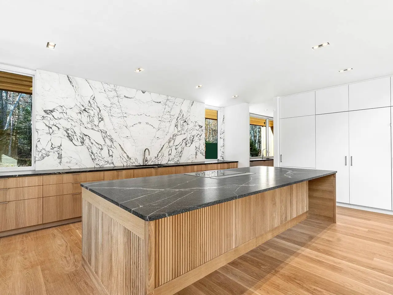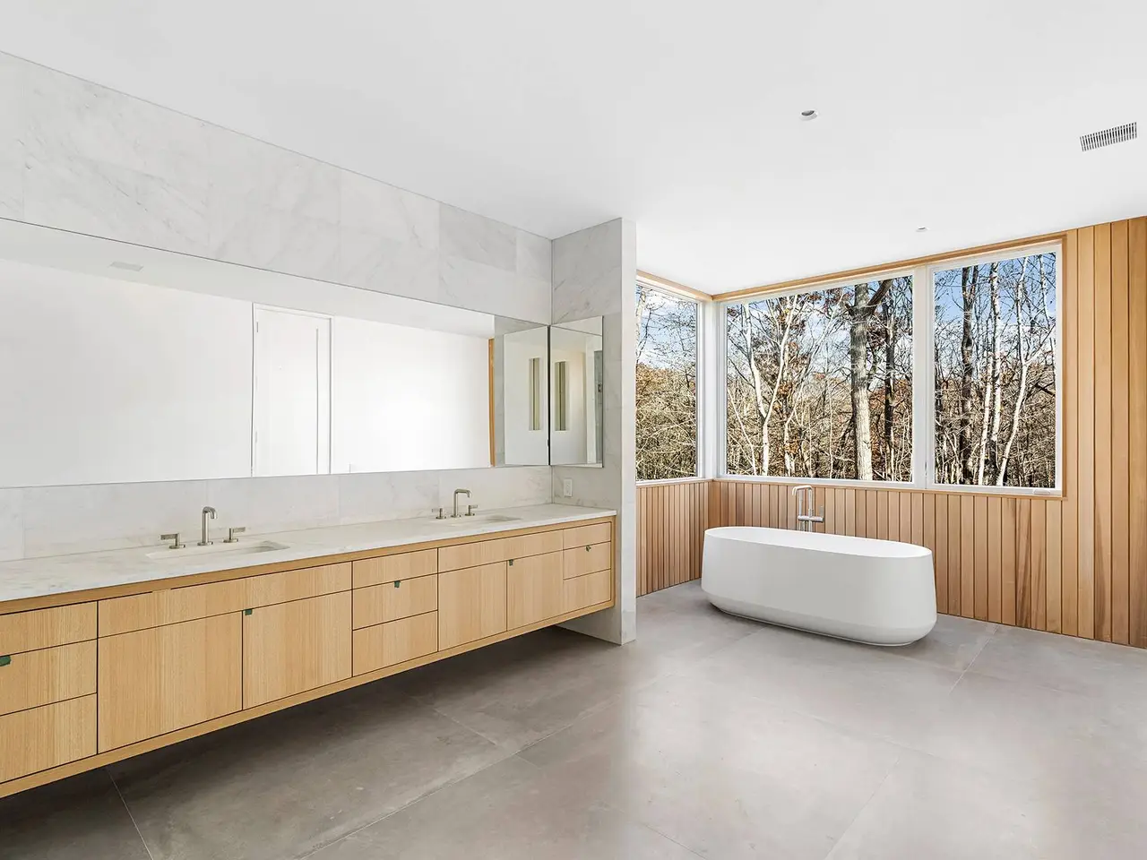 This refined modern is unparalleled. Set on 1.67 acres within the coveted Bell Estate in Amagansett and bordering over 50 acres of reserve, the setting affords exceptional privacy and a locational advantage you will love. A perfectly positioned residence just minutes to Amagansett's Main Street, the ocean, and the bay. Meticulous execution, thoughtful design, and noticeable attention to detail throughout this new construction, the results showcase natural light, embrace the surroundings, and seamlessly blur the lines between indoor/outdoor living. The minimal exterior offers clean lines and texture, beginning with its vertical grain clear cedar siding, custom-milled cedar screens and floor-to-ceiling windows and doors. A dramatic architectural overhang at the rear elevation filters the light and adds rhythm to terraces and balconies below. A stunning custom 50' gunite pool with lap lane, spa, and sun shelf anchors the backyard along with a pergola-covered lounge offering welcoming shade on a hot summer's day. Mature native landscaping enhances and surrounds the abundance of exterior living space with over 3,000 square feet of terraces including a covered outdoor kitchen and dining area, bluestone patios, Ipe balconies, and an upper sundeck. Inside, clean lines meet sumptuous and enduring materials. From the second-floor mezzanine one can fully appreciate the impressive main living area. A 20' vertical clear cedar wall defines the dining area, while a double-height window wall brings the outdoors in. A STUV wood-burning fireplace encased in statuary marble is the perfect transition from the great room to the spacious den. Features include 7' wide white oak flooring, 9' interior doors, recessed silo lighting, and a striking steel-and-oak mono-stringer staircase. The home spans approximately 10,000 square feet across three finished levels. Eight ensuite bedrooms include a first-floor primary suite, second-floor primary, and junior primary. All feature walk-in closets, floor-to-ceiling glass sliding doors, and access to private or semi-private outdoor spaces. Spa-caliber bathrooms, with full-height natural stone and marble tile, cedar accents, floating white oak vanities, brushed nickel fixtures, Robern medicine cabinets, freestanding tubs, and integrated custom mirrors with vertical lighting. Natural light continues all day in the fully finished lower level with an east and west facing sliders, plus oversized windows. Here indulge in your own private wellness suite including a mirrored fitness studio with ballet barre, cedar-walled sauna with glass panel, separate steam room, and custom stainless steel Reiki soaking tub. Additional amenities on this level include a modern wine room, wet bar, media space, and expansive recreation lounge. Back on the main level, the kitchen is a work of art and is made to entertain. The Henrybuilt kitchen offers refined aesthetics with exceptional function; an oversized fluted white oak island, statuary marble countertops and backsplash, and integrated Gaggenau appliances, including wine column, induction cooktop, wall ovens, and fridge. A discreet auxiliary kitchen offers matching finishes, Miele and Gaggenau appliances, a gas range with custom steel hood, coffee bar, and utility island. Adjacent mudroom, side entrance, and laundry room add everyday convenience. Engineered and fully equipped for longevity and efficiency, the home features a Lutron RadioRA smart system for app-controlled HVAC, lighting, AV, and pool. All bedrooms and living spaces are AV/media ready. Additional green features include spray foam insulation, whole-home water filtration, a 10kw solar array, and a HERS-rated energy performance build. Set for completion late fall 2025 within Bell Estate in Amagansett. Listing ID: 923878