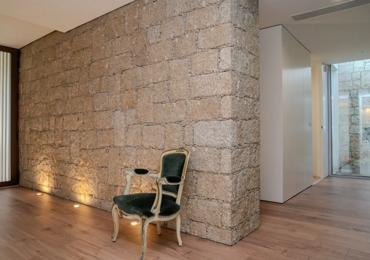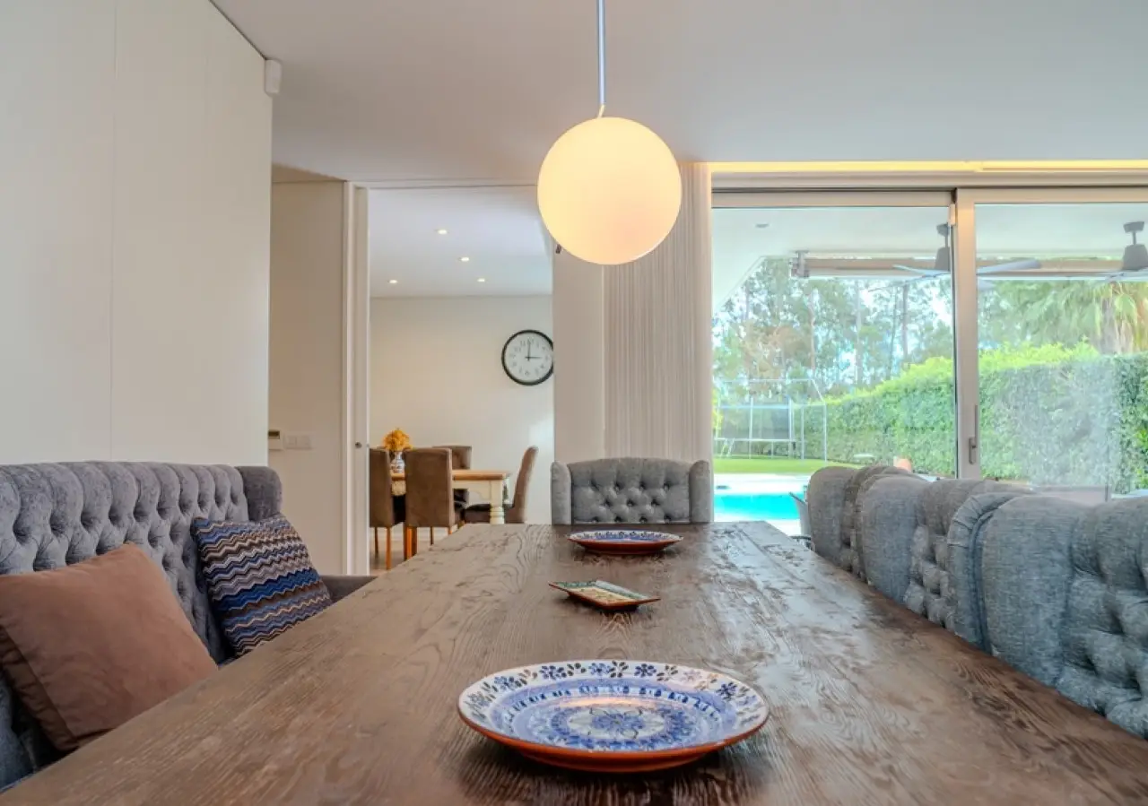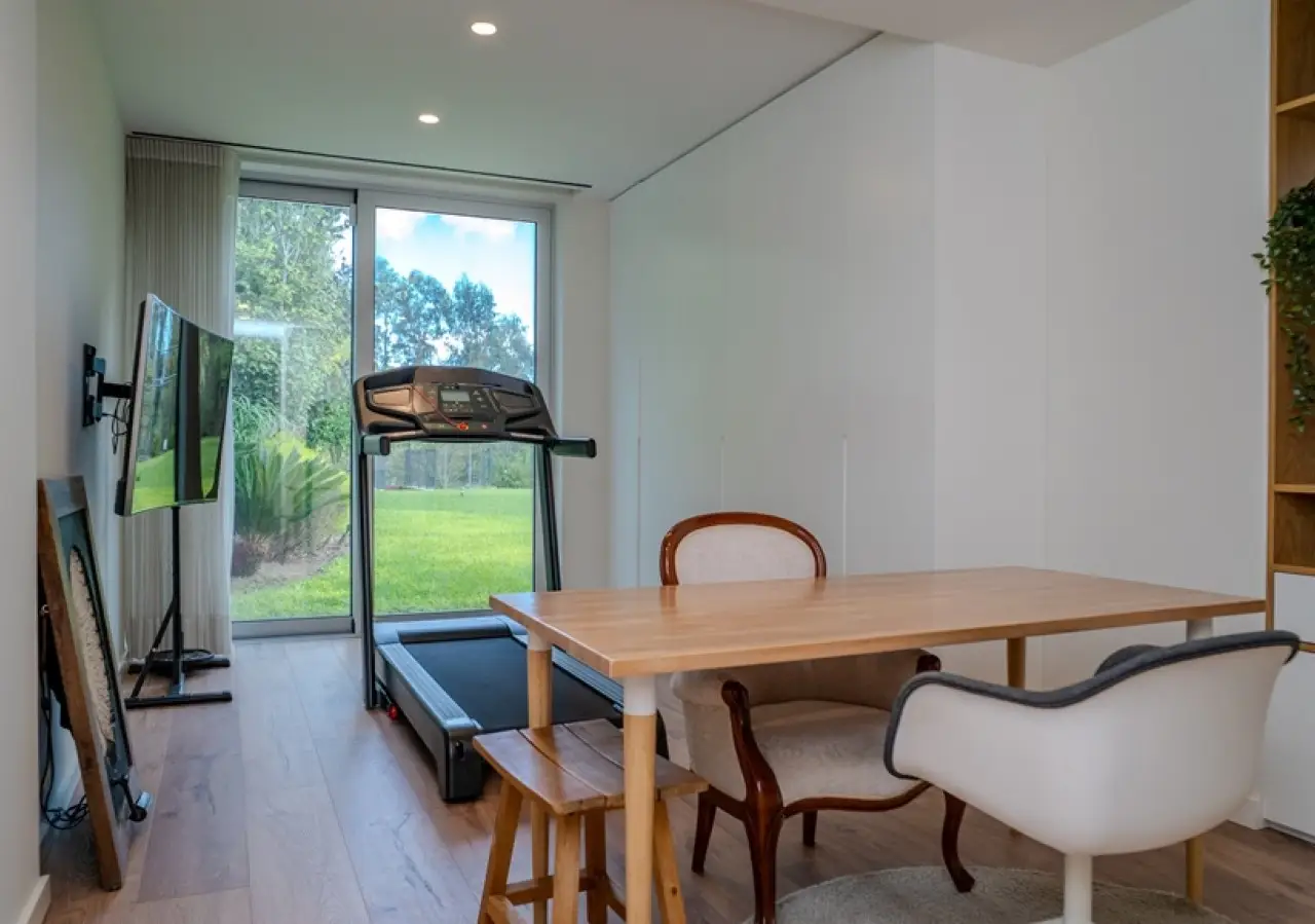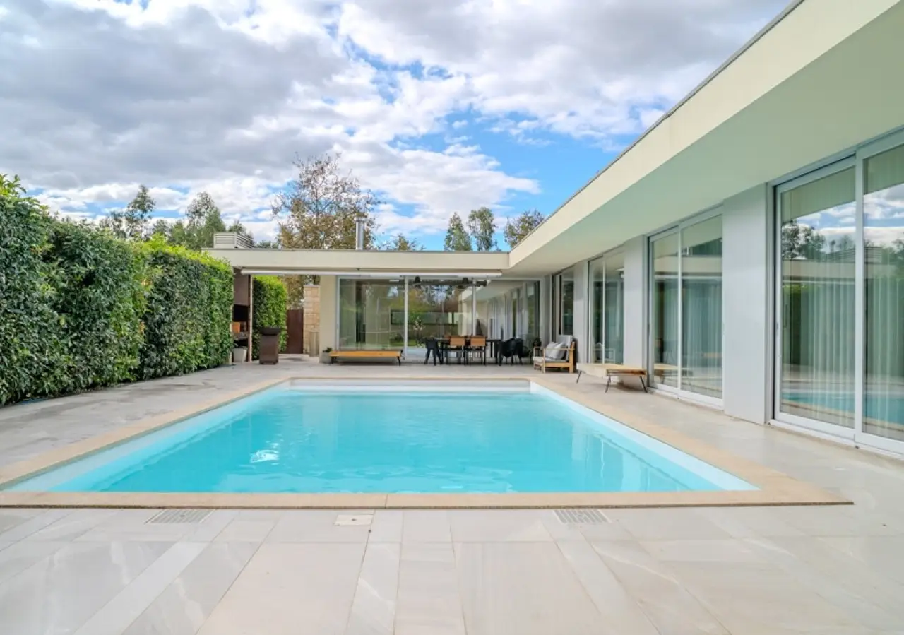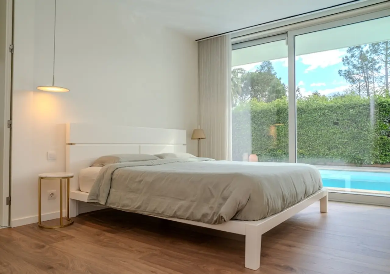 Located on the banks of the Cávado River, this contemporary-style villa is set on a plot of approximately 1000m2, complemented by two other plots bordering the river. It has a simple and intuitive layout, with the social area differentiated from the private area. All rooms have access to the outside, from where you can reach the heated swimming pool, barbecue area and garden area. It has excellent sun exposure, maximized by the glazed windows that run throughout the single-storey villa. it consists of three suites, a guest toilet, an office, a kitchen with a dining area, a lounge and a laundry room, as well as a garage for two cars. It is as good as new and has several technologies that make it easier to enjoy and use on a daily basis, offering protection, comfort and well-being. It is part of a condominium of just five houses which, due to its location, offers almost total privacy. CHARACTERISTICS: Plot Area: 3 117 m2 | 33 551 sq ft Deployment Area: 356 m2 | 3 832 sq ft Building Area: 356 m2 | 3 832 sq ft Bedrooms: 3 Bathrooms: 4 Garage: 2 Energy efficiency: B FEATURES: Air conditioning Fireplace in the living room Video surveillance system Intrusion and smoke alarms Pellet boiler in the bedroom area Automatic irrigation system Central vacuum system Solar panels Photovoltaic panels