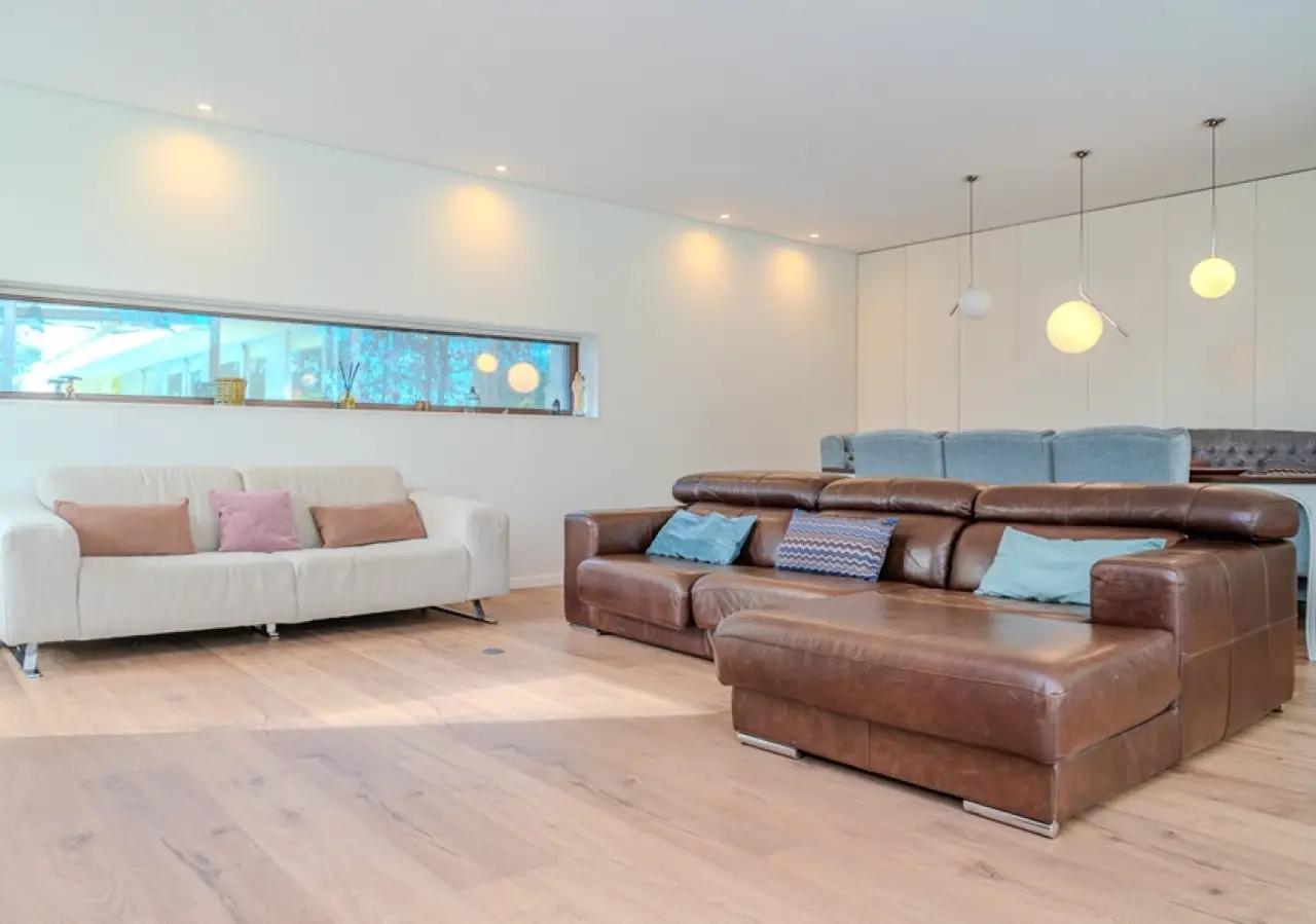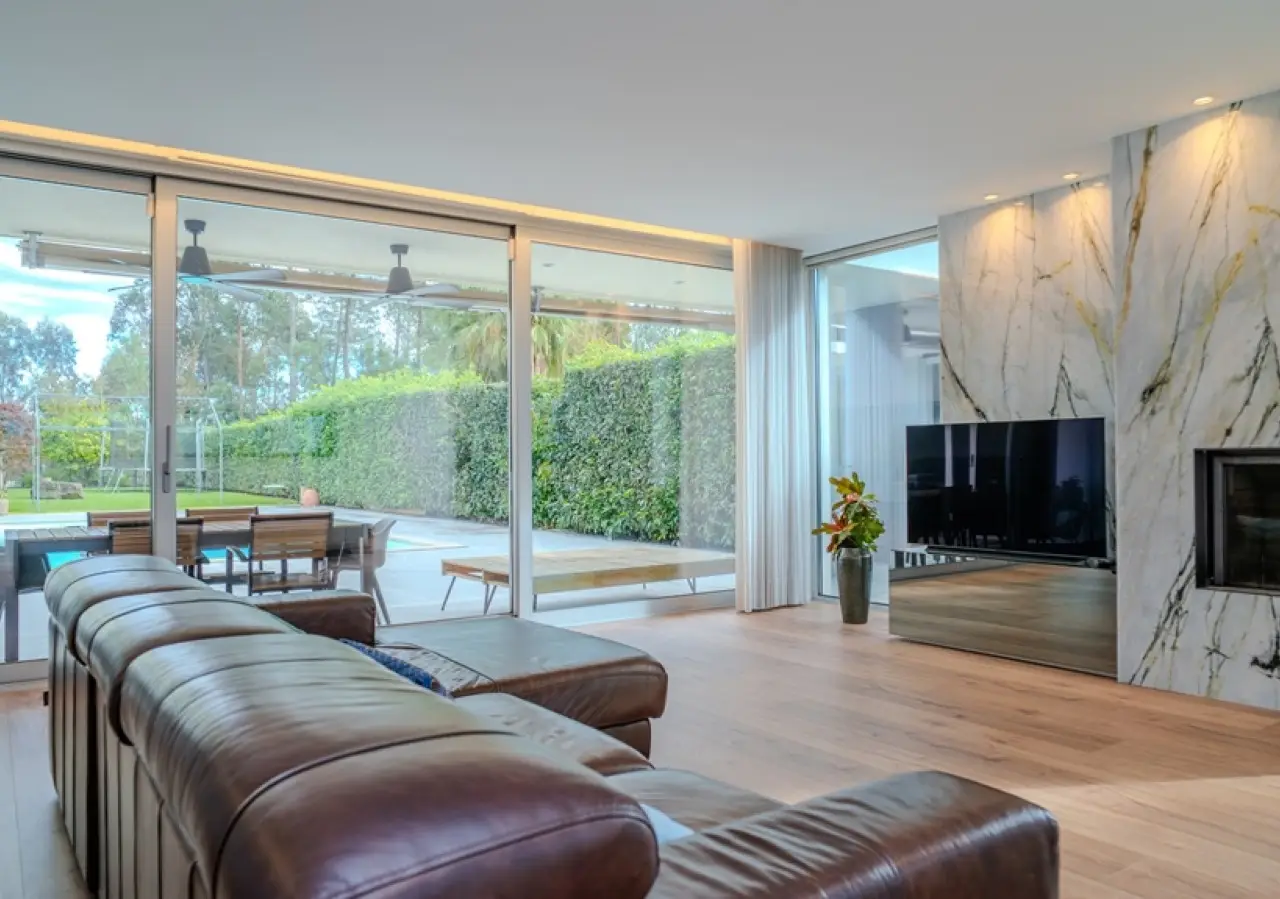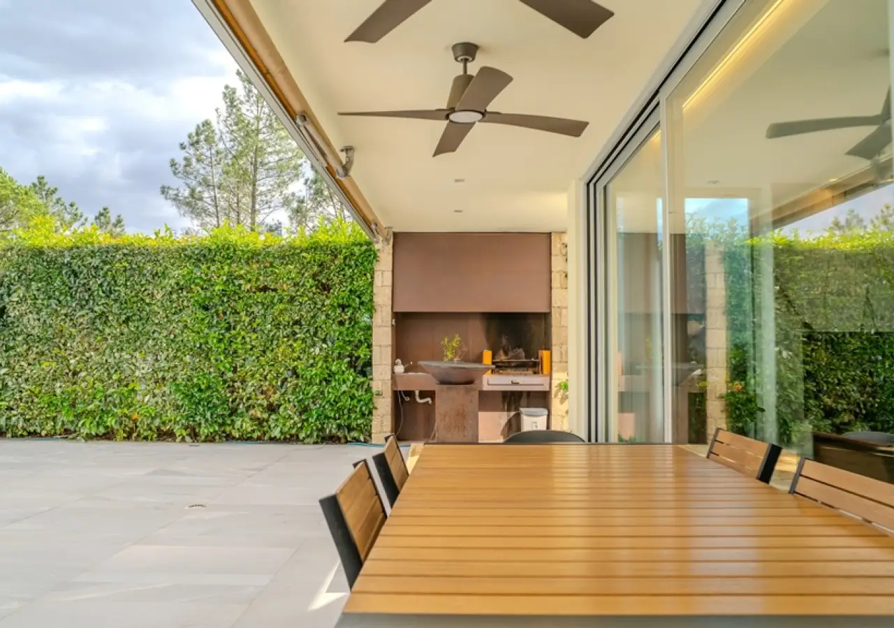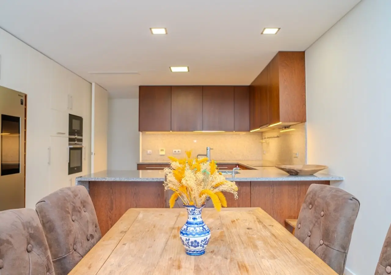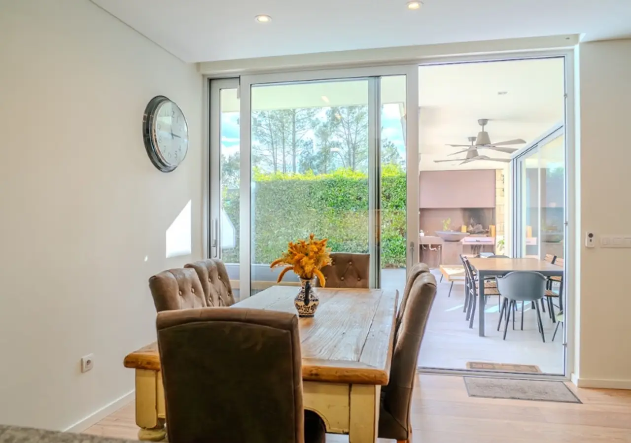 Located on the banks of the Cávado River, this contemporary-style villa is set on a plot of approximately 1000m2, complemented by two other plots bordering the river. It has a simple and intuitive layout, with the social area differentiated from the private area. All rooms have access to the outside, from where you can reach the heated swimming pool, barbecue area and garden area. It has excellent sun exposure, maximized by the glazed windows that run throughout the single-storey villa. it consists of three suites, a guest toilet, an office, a kitchen with a dining area, a lounge and a laundry room, as well as a garage for two cars. It is as good as new and has several technologies that make it easier to enjoy and use on a daily basis, offering protection, comfort and well-being. It is part of a condominium of just five houses which, due to its location, offers almost total privacy. CHARACTERISTICS: Plot Area: 3 117 m2 | 33 551 sq ft Deployment Area: 356 m2 | 3 832 sq ft Building Area: 356 m2 | 3 832 sq ft Bedrooms: 3 Bathrooms: 4 Garage: 2 Energy efficiency: B FEATURES: Air conditioning Fireplace in the living room Video surveillance system Intrusion and smoke alarms Pellet boiler in the bedroom area Automatic irrigation system Central vacuum system Solar panels Photovoltaic panels