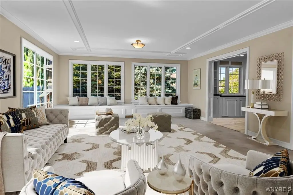 A graceful Mansion with magnificent detailing and design and spectacular spaces for hosting the holidays and special celebrations.First floor showcases a showstopping staircase and foyer, 2 perfect powder rooms, and a handsome library with a fabulous fireplace. The great room with its old-world elegance has a soaring ceiling, wonderful windows, and wet bar. A formal dining area with its coffered ceiling and beautiful built-ins make dinner parties a breeze. The sun-drenched living, family room, and kitchen have a fabulous open floor plan and an all-neutral decor.The gourmet kitchen is complete with several sitting areas, custom cabinetry, loads of cabinets and counters, walk-in pantry, and top of the line appliances. The 3-season sunroom (548 sq ft) has glorious views of the park-like lot. 2nd floor boasts all large bedrooms and closets, the primary bedroom has a private balcony that looks over the great room, sitting area, and glamour bath. Fantastic laundry room and an amazing bonus room adds endless possibilities. The beautiful backyard sets the stage for al-fresco dining and summertime fun with its sensational greenspaces, patios, in-ground pool and pool house. Great basement and mudroom. Oversized heated 4 car garage. Quiet street, neighborhood tennis court, and close to all conveniences. Some photos have been virtually staged. I'd like to Welcome you to your home!
