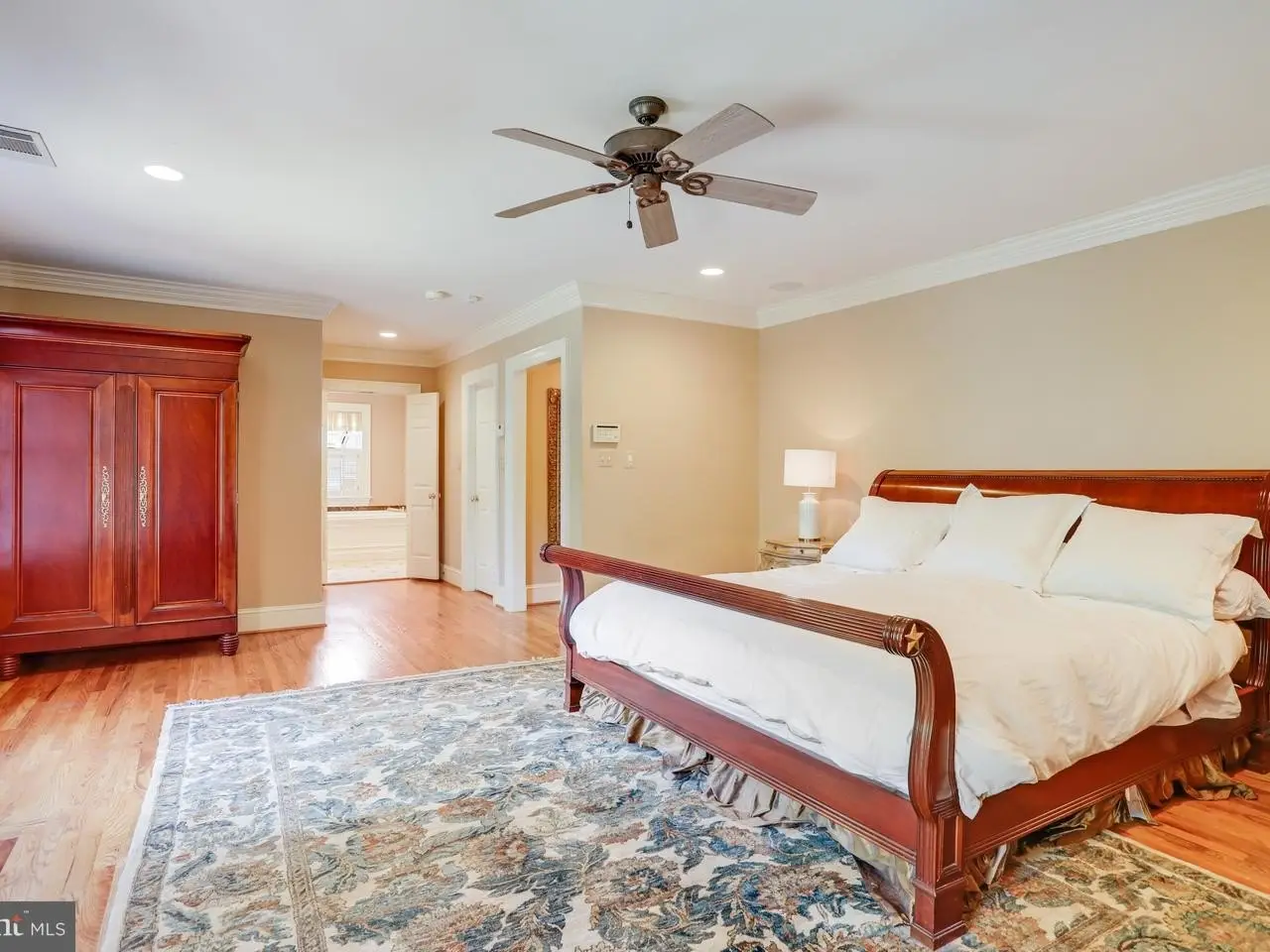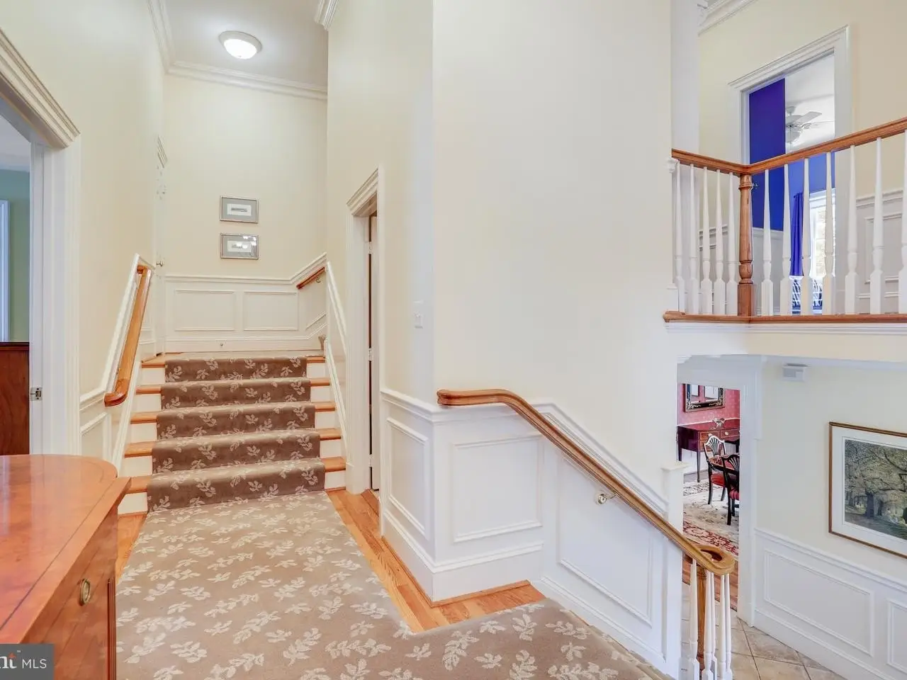 Stunning Colonial on a quiet and peaceful tree lined street in the heart of the Springfield subdivision. Springfield is a friendly neighborhood with well manicured lawns and a strong sense of community.  It sits in the sweet spot of commutes to downtown Washington DC and work points in Virginia and Maryland off nearby 495 and 270. The Ride on Bus and Metro bus are a short walk away and the metro is about 2 miles. This beautiful home was built by Meade Bell and reimagined and expanded by his son, the renowned Frank Bell. With it's classically executed exterior and charm infused interior, it offers nearly 6000 square feet of space. Upon entering the large foyer, you will notice beautiful millwork throughout. The main level features a sprawling open kitchen/family room/breakfast room with nine foot ceilings and a fireplace. French doors take you from this space to a large flat fully fenced grassy yard with flagstone patio and a covered eating portico. Also on this level is a grand entertaining sized dining room and an elegant living room with fireplace. On the upper level, there are 5 bedrooms, 3 full baths and a laundry room, accessed by wide and gracious halls. In the Primary bedroom there is a third fireplace and a spa like bath with a soaking tub, separate shower and double vanity. The lower level has three very large rooms - a home office, a game room and a recreation or media room, as well as ample storage in a separate storage room and utility room. Other amenities include a garage, a new roof, a multi zoned HVAC, and built-in speakers in the ceilings of the kitchen/family room, dining room, and primary bedroom. This property is served by the highly rated school district of Woodacres/Pyle/Whitman. Both the Woodacres Elementary school and playground, and the Little Flower School are a very short walk away. You can also walk to Whole Foods, Kenwood CC and the new Westbard square with its restaurants and shops. This is a rare find in an amazing location!