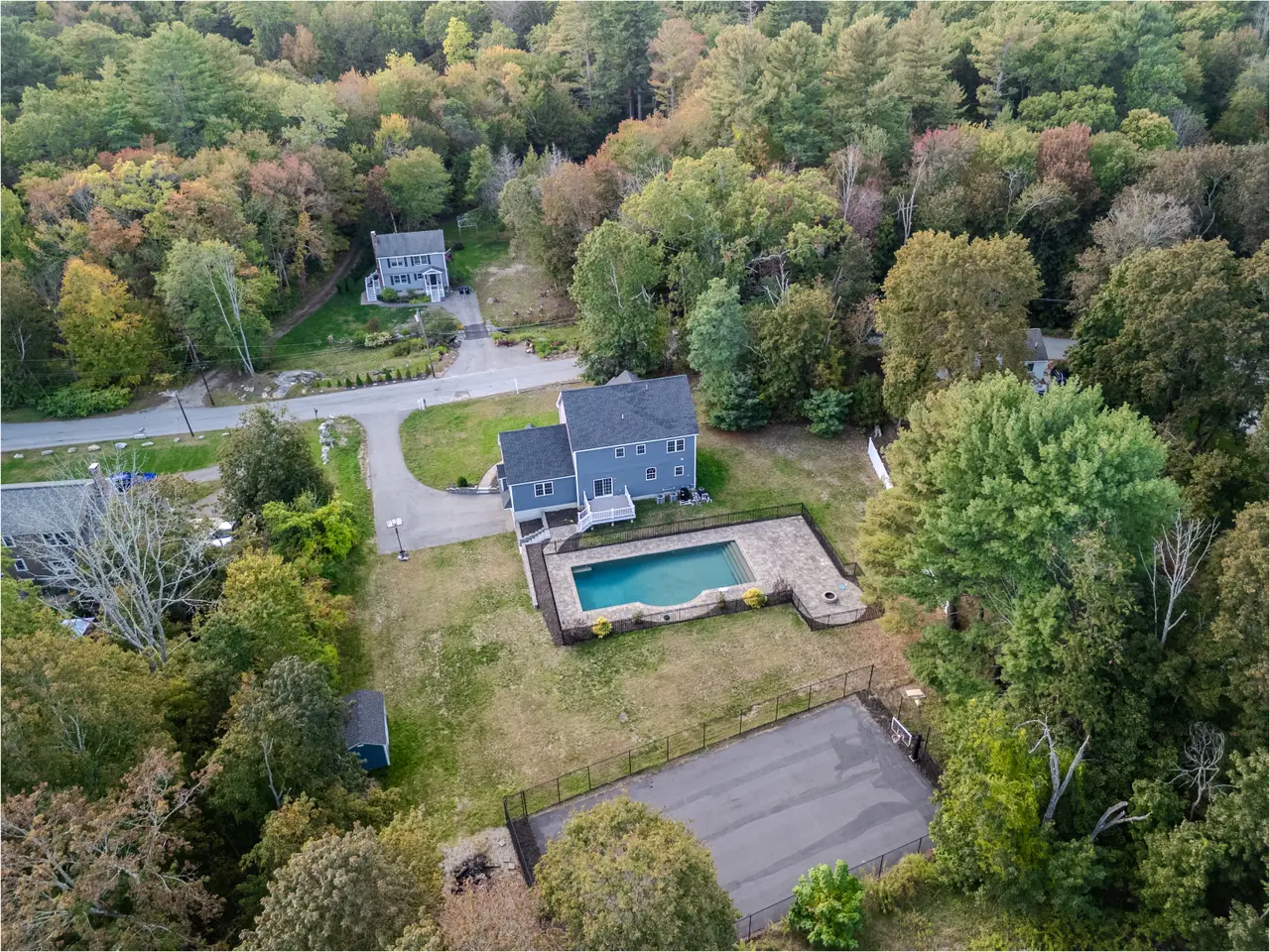 Exquisitely sited on a private 1.74-acre lot in Andover’s coveted South School District, this like-new modern colonial offers the finest in sophisticated luxury. Designed for both elegance & comfort, the open-concept main level is graced with soaring 9’ ceilings, gleaming hardwood floors, & a chef’s kitchen with upgraded finishes flows seamlessly to expansive living & dining spaces. The primary suite features a custom walk-in closet by Closets by Design, while the home’s 4 bedrooms and 3.5 baths include a finished third-floor ensuite with adjoining flexible space ideal for a home office or fitness studio. The finished lower level elevates entertaining with a movie room, game room, & versatile bonus areas. Outdoors, a resort-inspired South Shore gunite heated pool & fire pit anchor the grounds, complemented by a private sports court and ample open space. With town water, sewer, & short drive to downtown, this residence delivers a rare fusion of sophistication & timeless appeal.