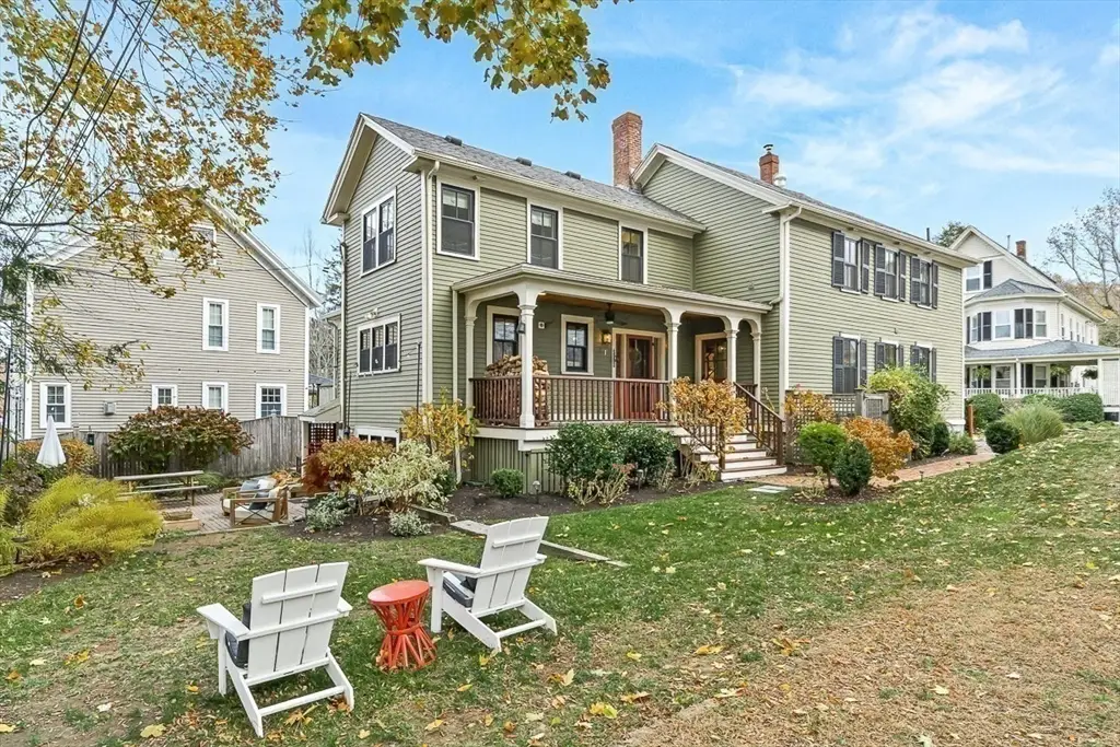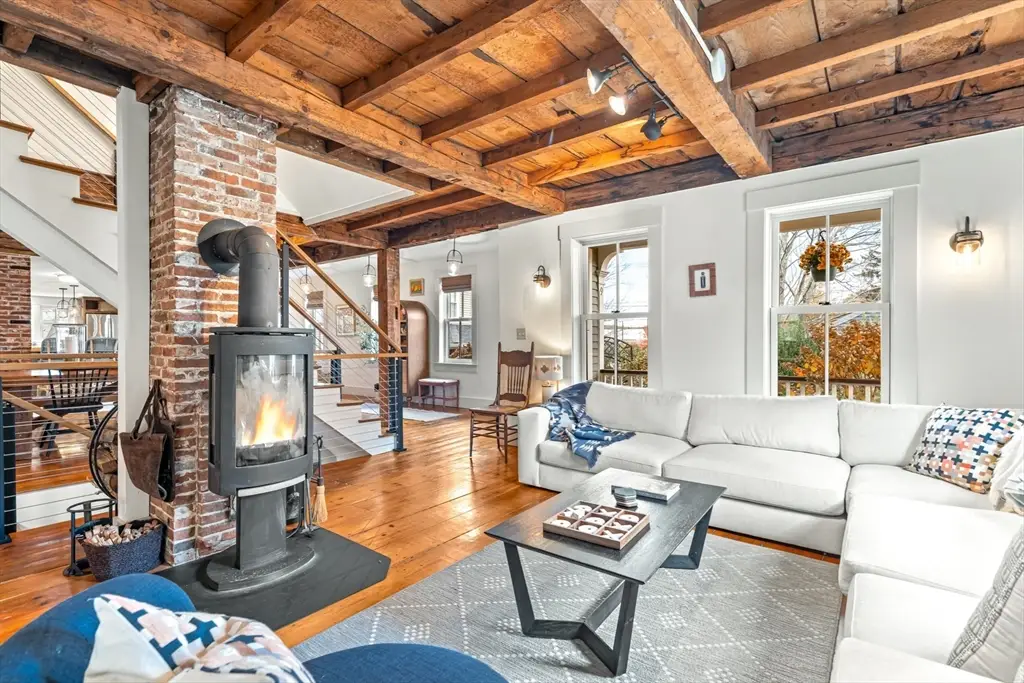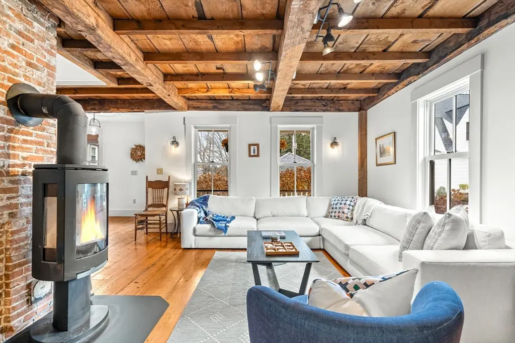 A remarkable fusion of history & modern luxury located in the heart of Downtown Andover. Enjoy the convenience of walking to local cafTs, shops, & restaurants. The open-concept design flows seamlessly, highlighted by exposed brick, rich wood beams, & impeccable craftsmanship throughout. The kitchen boasts a walk-in pantry, an impressive center island, high-end appliances, & spacious mudroom designed for everyday functionality. Gorgeous wide-pine floors flow throughout, extending from open dining area into the inviting living rm, which includes a versatile adjoining office or playroom. Second level bedrms include the ensuite, convenient laundry rm, additional full bath & ample closet space. Finished LL w full bath great for guest suite, family rm, home gym, etc. Two covered porches, a beautifully landscaped patio, and a charming garden area create an inviting outdoor retreat. Ideally situated in the highly sought-after Bancroft School District.