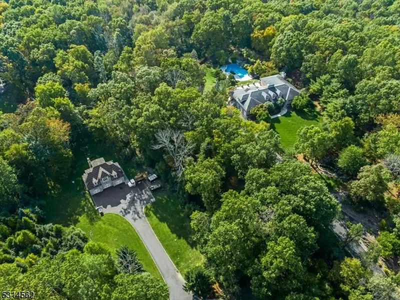 Special Country Estate bordering miles of trails on a quiet street. Builder's own home packed with quality plus an exquisite 2 BR Carriage House. Beautiful landscaped approach with its massive gates and long paved driveway with lighting. Amazing gunite heated pool with waterfalls, hot tub and waterslide! Tree house nestled in the woods with electric. 4 br, 4.2 ba main house including a spacious primary suite with a FPL, walk in closet and marble bath. Inviting FR with high ceilings, skylights, a soaring wall of stone and Fireplace. French doors lead you out to an elevated stone patio and private, nicely landscaped yard. An entertainer's dream! The open kitchen has custom cabinetry, salvaged 200 yr old floors, breakfast bar and nook. Radiant heat, custom oak doors and trim throughout. Enormous basement boasts a wine cellar, half bath and workout room. 700 amp electric svc with generator, 6+ oversized garages, 3 wells, one for irrigation. Peaceful and private one hour from Manhattan!