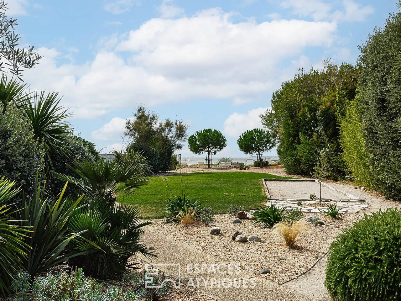 Located 15 minutes from La Rochelle, in a popular street in Angoulins for its proximity to the ocean, this extraordinary contemporary enjoys an idyllic, quiet setting, with sea access at the end of the garden.The sea view, the careful services and the quality of the materials make this property an exceptional property. The main house, facing the ocean and its large garden, has approximately 287 m2 of living space. It is also accompanied by six studios which are located at the rear of the estate for a total surface area of 136 m2.Entirely glazed to a good height, the entrance to the house provides a feeling of volume. It opens onto the large living rooms, each taking advantage of their own atmosphere to maintain a certain privacy. The living room is ideal for large tables or a relaxing moment around the wood stove. It is then extended by a comfortable living room decorated with wooden cladding and a large bay window leading to the terrace, as well as a dining room open to the outside and the kitchen.The latter offers numerous high-end worktops and equipment. It is completed by its back kitchen and laundry room with multiple storage spaces. Designed for indoor-outdoor living, all these living rooms face the green lung of the property. Entirely surrounded by greenery, the terrace perfectly highlights the swimming pool as well as the facade of the house covered with cladding. A summer kitchen and its bar suggest convivial moments around the numerous services: summer lounge, spa, sauna, gym and petanque. From this terrace, the unobstructed view of the sea and the island of Aix naturally draws the eye towards the 1700 m2 garden. At the end of it, a gate gives access to the sea. The sleeping area is made up of two distinct spaces.The first is the master suite which occupies the first floor of the house. It benefits from its dressing room, its bathroom and especially its terrace to gain height over the garden and the ocean.The second is located on the ground floor with three bedrooms, each equipped with their own bathroom, for maximum comfort and privacy. A large office can also be converted into a fifth bedroom if necessary. A games room, a music room, an air-conditioned cellar and a gym by the swimming pool complete this prestigious villa. For parking, a large garage of 57 m2 is accompanied by outdoor spaces in front of the house. The six studios allow for significant rental income or personal use. Additionally, solar panels offset the property's electricity consumption. A rare property for lovers of the seaside and large living spaces.ENERGY CLASS: C / CLIMATE CLASS: A. Estimated average amount of annual energy expenditure for standard use, established based on energy prices for the year 2021: between EUR4,780 and EUR6,520REF. EALR2202Additional information* 17 rooms* 11 bedrooms* 1 bathroom* 10 shower rooms* 1 floor in the building* Outdoor space : 2780 SQM* Property tax : 7 136 €Energy Performance CertificatePrimary energy consumptionc : 171 kWh/m2.yearHigh performance housing*A*B*171kWh/m2.year5*kg CO2/m2.yearC*D*E*F*GExtremely poor housing performance* Of which greenhouse gas emissionsa : 5 kg CO2/m2.yearLow CO2 emissions*5kg CO2/m2.yearA*B*C*D*E*F*GVery high CO2 emissionsEstimated average amount of annual energy expenditure for standard use, established from energy prices for the year 2021 : between 4780 € and 6520 €Agency feesThe fees include VAT and are payable by the vendorMediatorMediation Franchise-Consommate