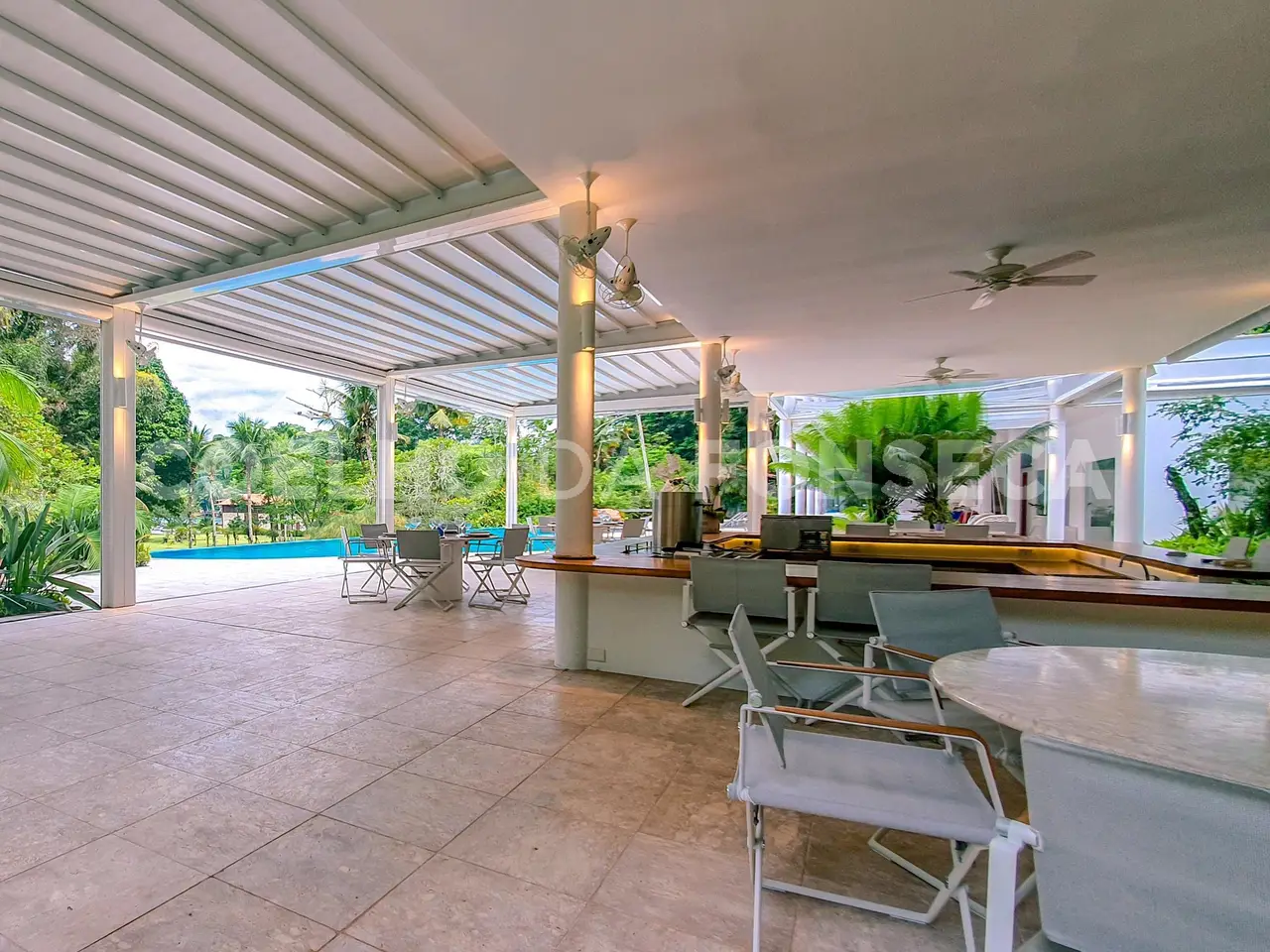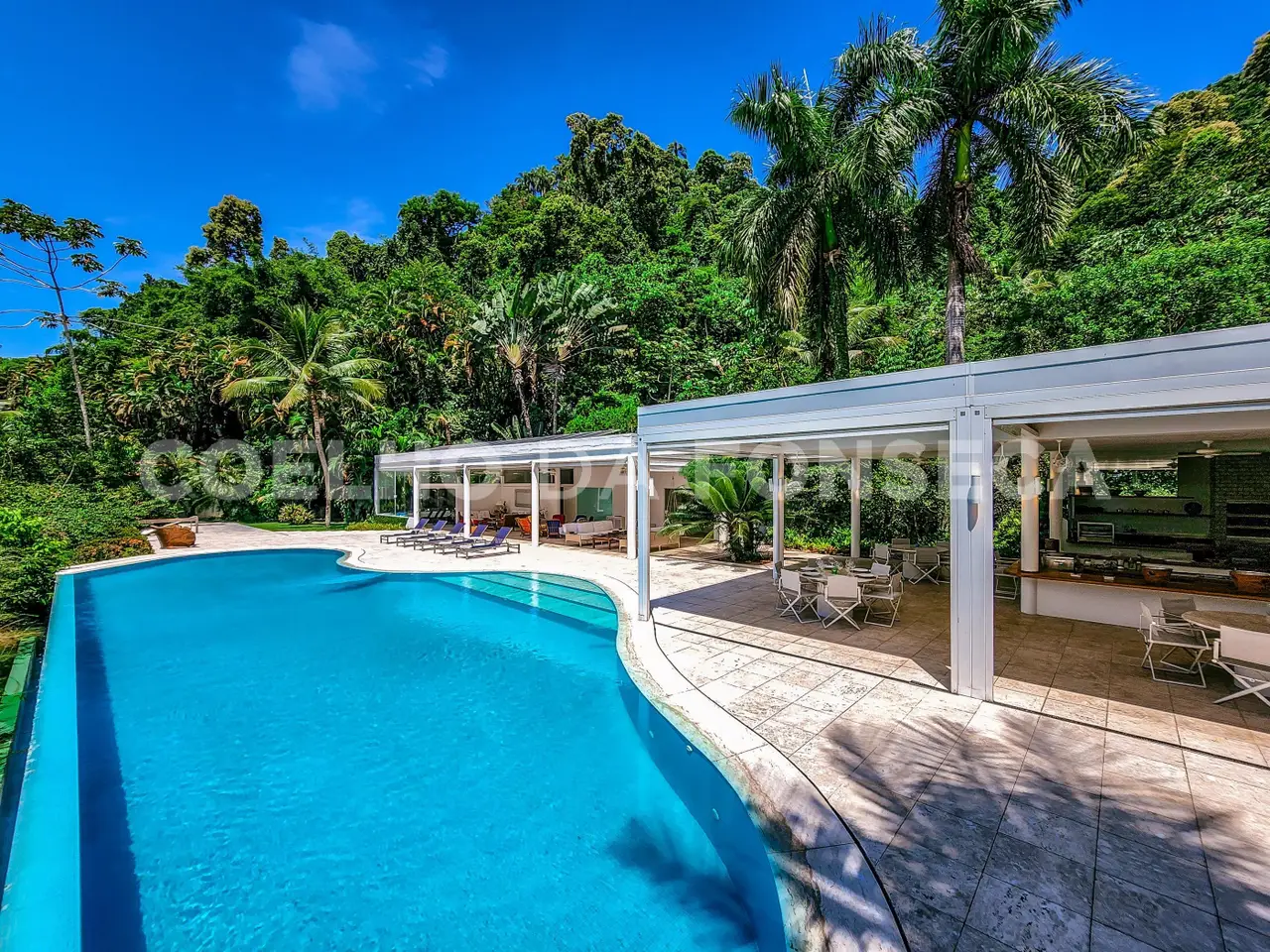 Fantastic and beautiful property, with a helipad, of the highest standard, designed by Claúdio Bernardes and with lighting by Peter Gasper, in a privileged location, facing the sea, on Praia da Fazenda, Ilha da Gipóia, in Angra dos Reis. In addition to the main house, there are several buildings intended for summer house accommodation, totaling twenty-two suites, with air conditioning, two of which have a jacuzzi. Spacious rooms with plenty of natural light, cross ventilation, upper terrace facing the garden with a wonderful view of the sea. Large windows with double-height rooms, living room with fireplace, American bar, industrial kitchen and air-conditioned wine cellar with capacity for over two thousand bottles. Exceptional leisure area, with infinity pool, gourmet area with barbecue, circular bar, jacuzzi, fitness center, sauna and lounge bar with access to the beach. It also has a garage for boats via a concrete ramp, a beautiful orchid garden and an exclusive pier. A water collection and storage system with treatment, landscaping with planned lighting, an energy system with solar panels, two diesel-powered generators and a two-story guardhouse. House with modern architecture with large spaces that value ventilation, natural light and functionality, promoting comfort and coziness that result in compositions of singular beauty. Wonderful property in a paradisiacal location! House in the Ilha da Gipoia neighborhood with 1943m² of built area, 22 bedroom(s), 22 suite(s), 26 bathroom(s), swimming pool, generator, sauna, storage, helipad, furnished, air conditioning, employee's quarters, right on the beach, balcony, property for the season, double height ceiling, single-story house.
