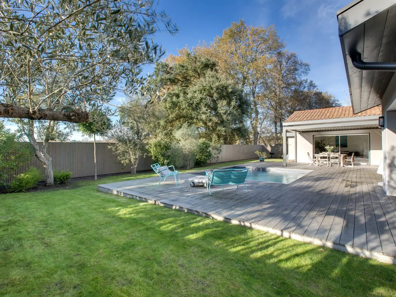 Located in Angresse, this villa designed by an architect combines a high-quality layout and meticulous finishings. Its 180 sqm of living space are spread over two levels and offer a functional design of the living spaces.The entrance sets the tone for the discovery of its custom-made furniture and its oak floor, the common thread of the visit.The living room and its exposed framework reveal a beautiful high ceiling. Delimited by a workshop glass roof, its comfortable volume is shaped by its opening to the outside and its modern wood stove.The living room is arranged around a large three-meter sliding window that disappears into the wall to offer a real inside/outside. It promotes the circulation of natural light in this living area.The French-made kitchen has high-end fittings: granite worktop and Fenix surfaces. Its friendly central island faces the dining room and its staircase, wood and metal, a unique piece by a local craftsman.On the night side, a master suite of more than 30 sqm is installed on the ground floor. Its dressing room, designed by a carpenter, is dressed with white shutter doors and offers beautiful linear storage. From the bed, the view extends onto the magnificent century-old oaks.The upper floor is dedicated to the children and offers two beautiful bedrooms with integrated storage. They share a bathroom with two separate sinks. A relaxation area benefits from optimal sunshine where the office and the library are cleverly installed.On the exterior, the landscaped garden of Mediterranean species surrounds the house and transforms this urban living space into a little corner of paradise. The exotic wood terrace of more than 100 sqm completes the swimming pool with its original shape. The bioclimatic pergola allows you to enjoy this calm and relaxing environment all day long.A few minutes walk from shops and schools, this resolutely modern villa offers modern comfort and a definite favorite for year-round living or as a second home.ENERGY CLASS: B / CLIMATE CLASS: AEstimated average amount of annual energy expenditure for standard use, based on energy prices for the year 2021, 2022, 2023: between 1070 euros and 1510 euros per year.Contact: Nathalie LAURENT on 06 67 61 35 96REF. 9031EALDAdditional information* 5 rooms* 3 bedrooms* 1 bathroom* 1 bathroom* Outdoor space : 783 SQM* Property tax : 1 887 €Energy Performance CertificatePrimary energy consumptionb : 84 kWh/m2.anHigh performance housing*A*84kWh/m2.an2*kg CO2/m2.anB*C*D*E*F*GExtremely poor housing performance* Of which greenhouse gas emissionsa : 2 kg CO2/m2.anLow CO2 emissions*2kg CO2/m2.anA*B*C*D*E*F*GVery high CO2 emissionsEstimated average annual energy costs for standard use, indexed to specific years 2021, 2022, 2023 : between 1070 € and 1510 € Subscription IncludedAgency feesThe fees include VAT and are payable by the vendorMediatorMediation Franchise-Consommateurswww.mediation-franchise.com29 Boulevard de Courcelles 75008 ParisInformation on the risks to which this property is exposed is available on the Geohazards website : www.georisques.gouv.fr