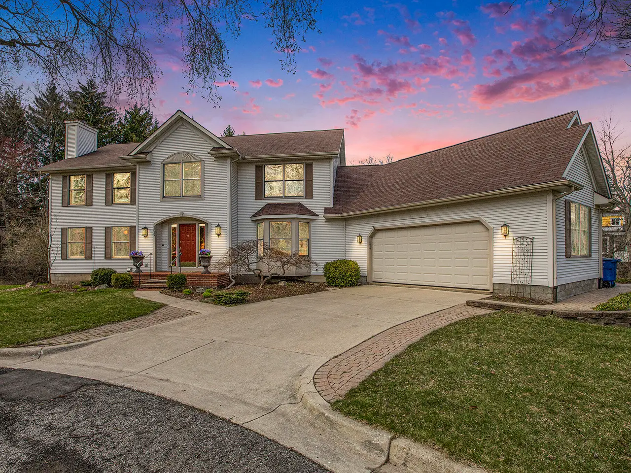 Welcome to this timeless, Landau-built colonial nestled on a quiet cul-de-sac, offering an elegant blend of classic design and modern updates. With an expansive and beautifully flowing floorplan across three finished levels, this home is perfectly tailored for both comfortable living and effortless entertaining. The main level begins with a grand foyer and warm wood floors that welcome you into the formal dining/living room with a gas fireplace. Through French doors you'll find a cozy living/music room, followed by a spacious kitchen with newer appliances, center island with prep sink, and a charming breakfast nook that opens to the deck. At the back of the home is a large family/sun room surrounded by windows overlooking the yard and woods. The dedicated study - with French doors, bay window, and built-in desks and shelving - makes working from home a joy. A mudroom and laundry room leading to the attached 2+-car garage add everyday convenience. Upstairs, the considerable primary suite boasts crown molding, a walk-in closet, and a luxurious bath with soaking tub, dual vanity, and separate shower. Two more bedrooms share a Jack & Jill full bathroom, while the remaining two bedrooms share a hallway full bathroom. Hosting is easy when you have plenty of room for everyone! The finished walkout basement is a home within itself, complete with full kitchen, bedroom, full bath with laundry, living/dining/exercise areas, and an abundance of storage. Perfect for multi-generational families, college students, or long-term guests. Enjoy outdoor living with a retractable awning over the deck, a shaded patio off the basement, a fire pit area, raised garden beds, and serene woodland views for ultimate privacy. Quick to nearby parks and schools with easy access to US-23, downtown Ann Arbor, and UM or St. Joseph hospital campuses. With nearly 5000 square feet of finished space, a versatile floorplan, and conscientious updates throughout, this home offers an exceptional opportunity for a modern twist on a classic colonial in a prime location. Don't miss this one!