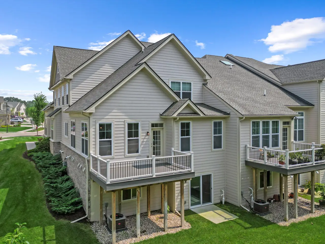 North Oaks never looked so good! This exceptional end-unit Villa with a premier wooded location is as pristine as the day it was built & is ready for immediate occupancy! With brand new wood floors throughout the first level, this desired Brandeis floor plan features soaring ceilings, bright spaces & windows galore. It has a chef's kitchen with granite, stainless & large center island, & opens to the living room with vaulted ceiling & divided-light door to deck. The Primary suite with tray ceiling has a perfectly appointed bath. There's also a first-floor office with French doors & vaulted ceiling! Upstairs are two additional bedrooms with attached baths, & a loft area. The walk-out lower level is ready to be finished for additional living space. Residents enjoy amenities including club house with fitness center & game rooms, & outdoor lap & wading pools. Its location is minutes to U of M North Campus, U of M & VA Hospitals & Domino's Farms. Home Energy Score of 7. Find report at stream.a2gov.org.