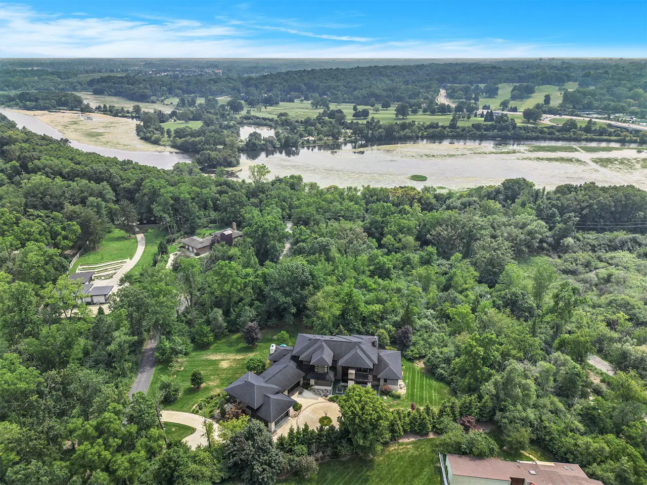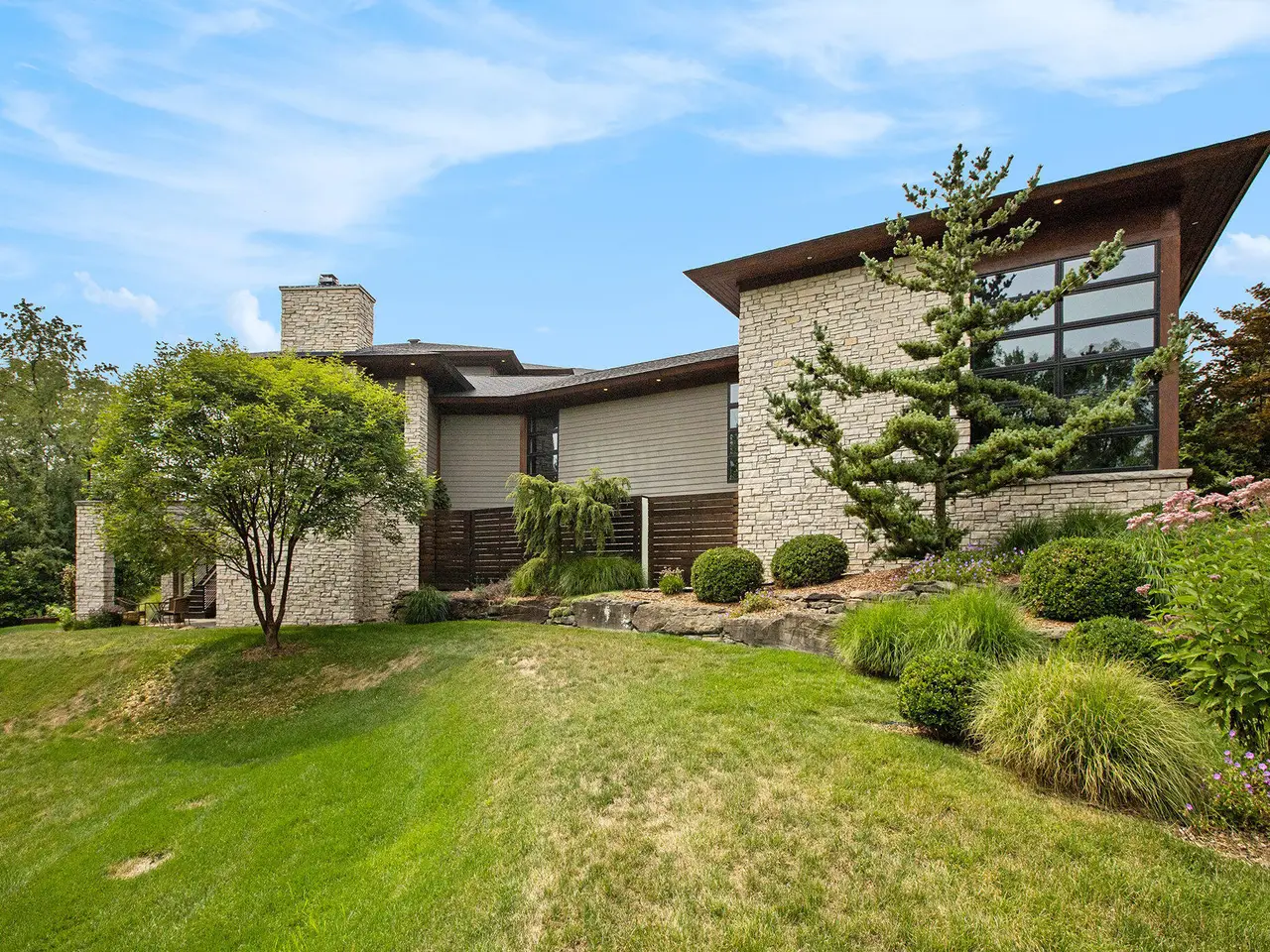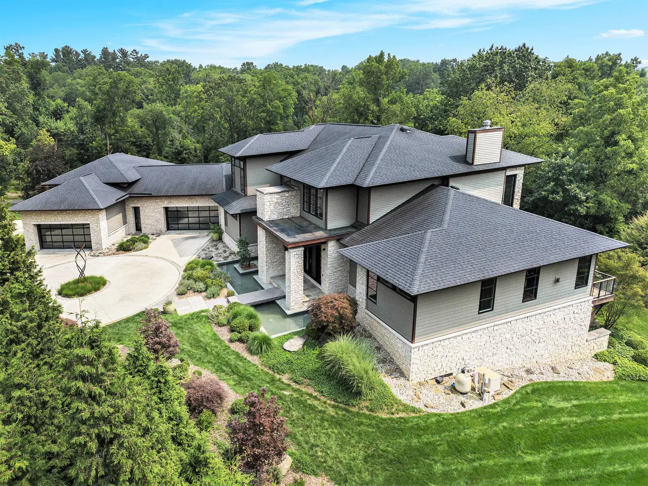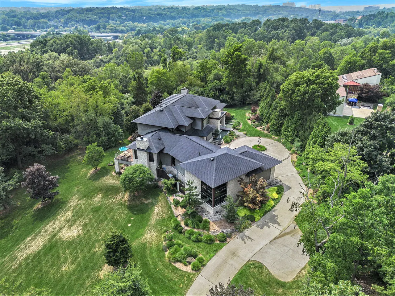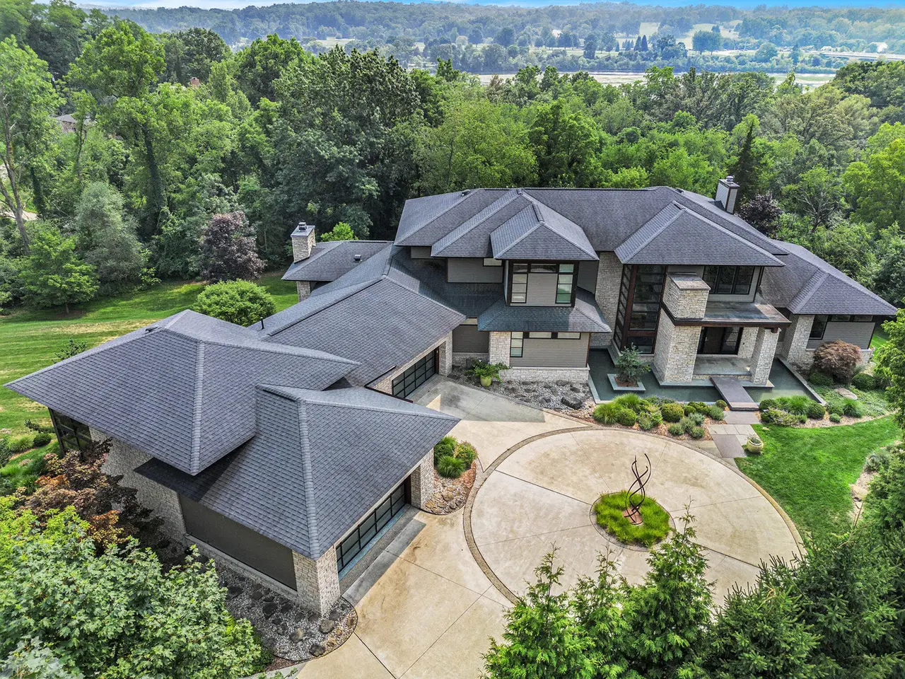 This custom-built Frank Lloyd Wright inspired Prairie Modern style home located in the heart of Ann Arbor is one of the finest homes in the area and a true masterpiece of design, materials, and craftsmanship. You will be impressed at every turn, inside and out, by this truly spectacular property. The home rests on a three-acre double lot just minutes from all UM Campus locations and all Hospitals. The setting offers complete privacy and a stunning view of the Huron River Valley. The grounds are immaculate and feature multiple outdoor loving spaces, extensive landscaping, soothing water sculpture, and entry water feature with walk-over bridge. The eight-car garage space includes fully conditioned work bay with two car lift and extensive cabinetry. No expense was spared to create one of the most incredible living experiences you have ever seen. Interior highlights include a breathtaking two story foyer with custom staircase and stone accent wall, Ipe wood flooring throughout the main level, dramatic two story living room with stone fireplace, custom display shelves, and two story windows with views to the Valley, custom kitchen with Mahogany cabinets built by Dan Young includes two islands, coffee station, professional grade Thermador appliances, and quartz counter tops with a full waterfall edge on the islands, walk-behind wet bar with wine storage, dedicated walk-in pantry with built in cabinets, 2nd refrigerator, and wet bar, comfortable open concept family room with built in entertainment center, and an incredible screened porch with fireplace, Viking grill, heat lamps, and power screens. Additional main floor features include an extensive back hall mud room, laundry room, and homework-station, main floor guest suite with attached bath, and private home office with built-in desk and cabinets, fireplace, and private balcony. The upper level includes a spectacular primary bedroom suite with custom built walnut accents, spa-like primary bath, and oversized, fully built-out primary closet, 2 additional bedroom/bath suites, and a 2nd laundry room. The finished walk-out lower level includes an oversized, walk-behind bar, home theater room with retractable divider, gaming area, sitting area, 2nd office home/playroom, exercise room, and 5th bedroom/bath suite. There is an extensive list of upgrades including custom Lutron lighting and Control 4 home automation for music, security, and theater. Incredible!