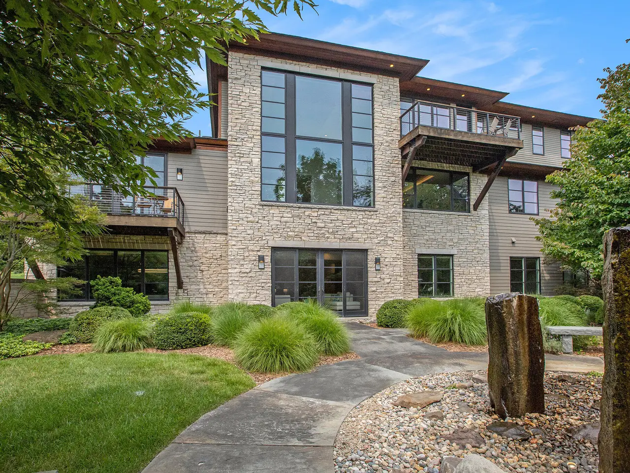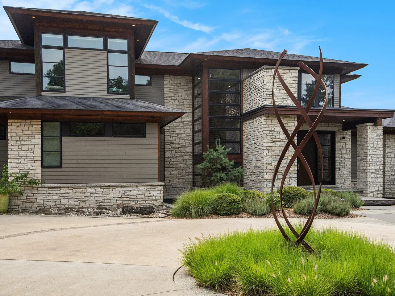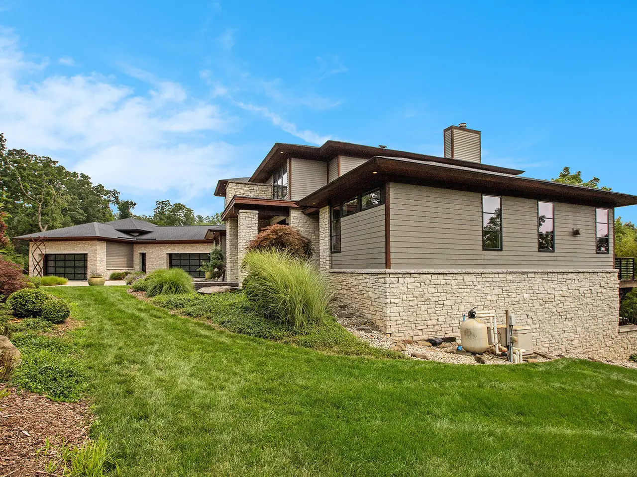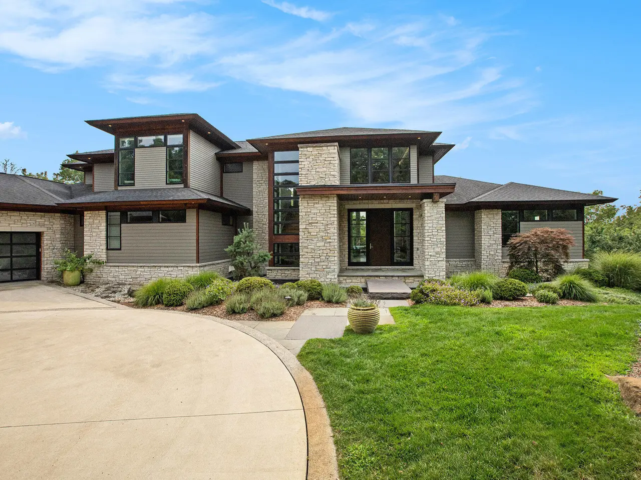 This custom-built Frank Lloyd Wright inspired Prairie Modern style home located in the heart of Ann Arbor is one of the finest homes in the area and a true masterpiece of design, materials, and craftsmanship. You will be impressed at every turn, inside and out, by this truly spectacular property. The home rests on a three-acre double lot just minutes from all UM Campus locations and all Hospitals. The setting offers complete privacy and a stunning view of the Huron River Valley. The grounds are immaculate and feature multiple outdoor loving spaces, extensive landscaping, soothing water sculpture, and entry water feature with walk-over bridge. The eight-car garage space includes fully conditioned work bay with two car lift and extensive cabinetry. No expense was spared to create one of the most incredible living experiences you have ever seen. Interior highlights include a breathtaking two story foyer with custom staircase and stone accent wall, Ipe wood flooring throughout the main level, dramatic two story living room with stone fireplace, custom display shelves, and two story windows with views to the Valley, custom kitchen with Mahogany cabinets built by Dan Young includes two islands, coffee station, professional grade Thermador appliances, and quartz counter tops with a full waterfall edge on the islands, walk-behind wet bar with wine storage, dedicated walk-in pantry with built in cabinets, 2nd refrigerator, and wet bar, comfortable open concept family room with built in entertainment center, and an incredible screened porch with fireplace, Viking grill, heat lamps, and power screens. Additional main floor features include an extensive back hall mud room, laundry room, and homework-station, main floor guest suite with attached bath, and private home office with built-in desk and cabinets, fireplace, and private balcony. The upper level includes a spectacular primary bedroom suite with custom built walnut accents, spa-like primary bath, and oversized, fully built-out primary closet, 2 additional bedroom/bath suites, and a 2nd laundry room. The finished walk-out lower level includes an oversized, walk-behind bar, home theater room with retractable divider, gaming area, sitting area, 2nd office home/playroom, exercise room, and 5th bedroom/bath suite. There is an extensive list of upgrades including custom Lutron lighting and Control 4 home automation for music, security, and theater. Incredible!