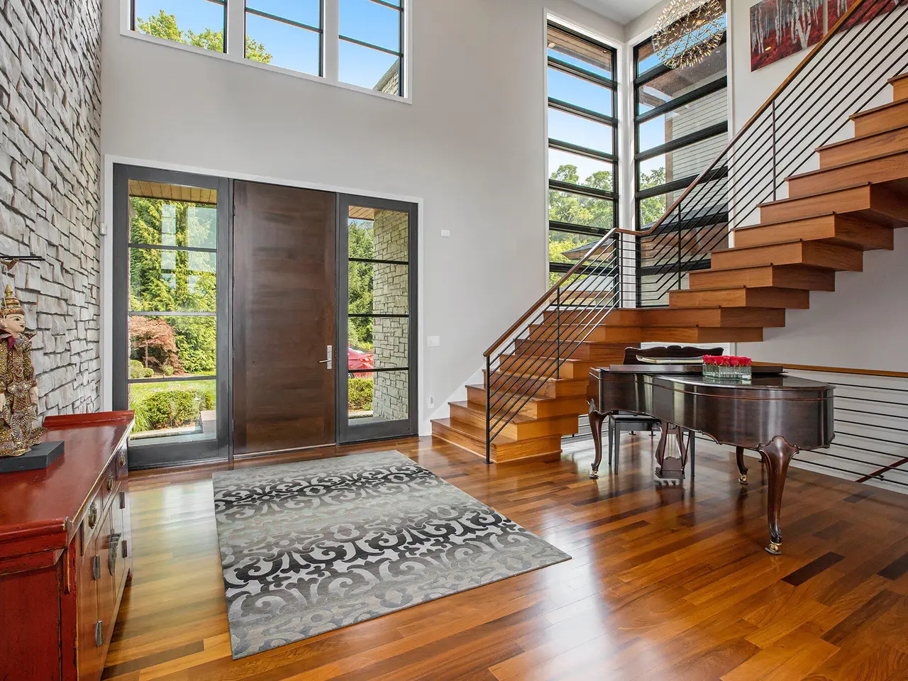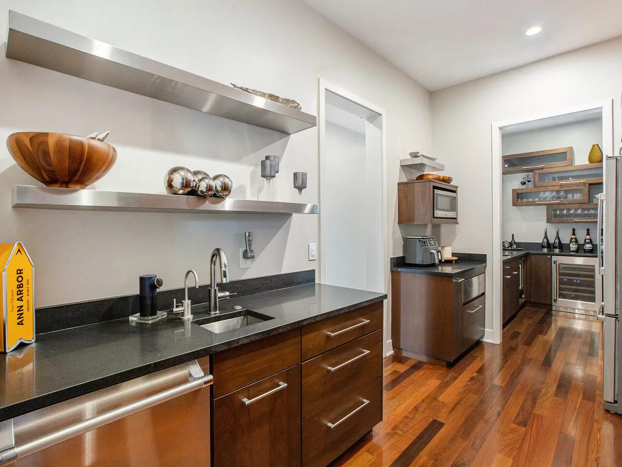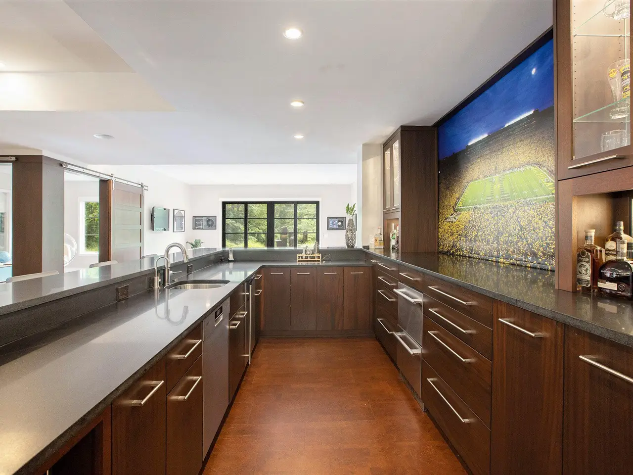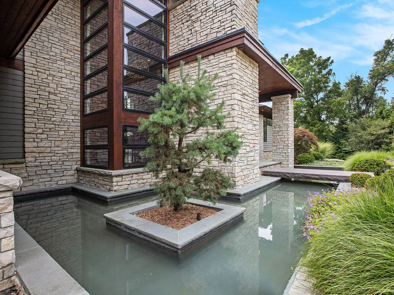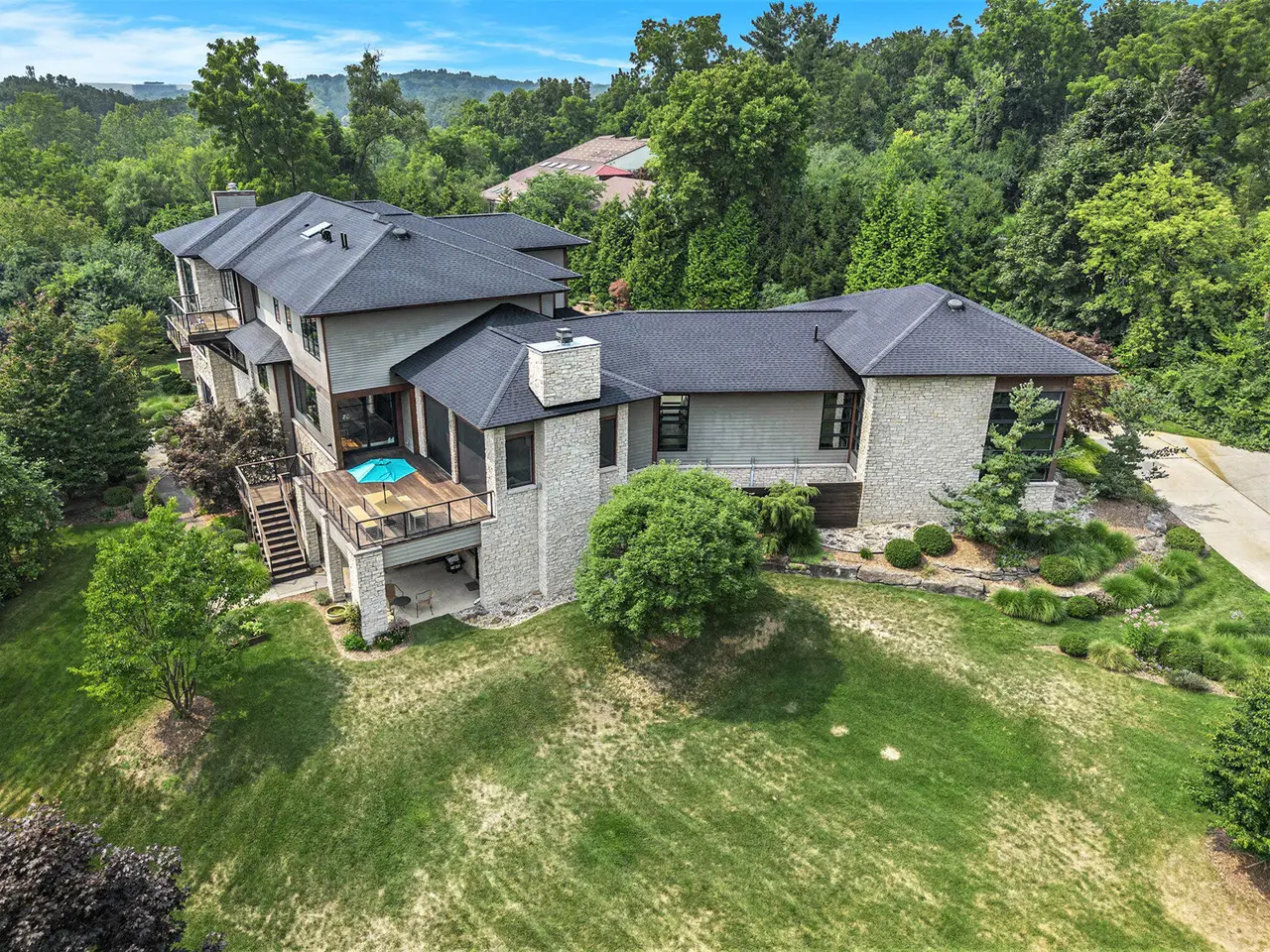 This custom-built Frank Lloyd Wright inspired Prairie Modern style home located in the heart of Ann Arbor is one of the finest homes in the area and a true masterpiece of design, materials, and craftsmanship. You will be impressed at every turn, inside and out, by this truly spectacular property. The home rests on a three-acre double lot just minutes from all UM Campus locations and all Hospitals. The setting offers complete privacy and a stunning view of the Huron River Valley. The grounds are immaculate and feature multiple outdoor loving spaces, extensive landscaping, soothing water sculpture, and entry water feature with walk-over bridge. The eight-car garage space includes fully conditioned work bay with two car lift and extensive cabinetry. No expense was spared to create one of the most incredible living experiences you have ever seen. Interior highlights include a breathtaking two story foyer with custom staircase and stone accent wall, Ipe wood flooring throughout the main level, dramatic two story living room with stone fireplace, custom display shelves, and two story windows with views to the Valley, custom kitchen with Mahogany cabinets built by Dan Young includes two islands, coffee station, professional grade Thermador appliances, and quartz counter tops with a full waterfall edge on the islands, walk-behind wet bar with wine storage, dedicated walk-in pantry with built in cabinets, 2nd refrigerator, and wet bar, comfortable open concept family room with built in entertainment center, and an incredible screened porch with fireplace, Viking grill, heat lamps, and power screens. Additional main floor features include an extensive back hall mud room, laundry room, and homework-station, main floor guest suite with attached bath, and private home office with built-in desk and cabinets, fireplace, and private balcony. The upper level includes a spectacular primary bedroom suite with custom built walnut accents, spa-like primary bath, and oversized, fully built-out primary closet, 2 additional bedroom/bath suites, and a 2nd laundry room. The finished walk-out lower level includes an oversized, walk-behind bar, home theater room with retractable divider, gaming area, sitting area, 2nd office home/playroom, exercise room, and 5th bedroom/bath suite. There is an extensive list of upgrades including custom Lutron lighting and Control 4 home automation for music, security, and theater. Incredible!