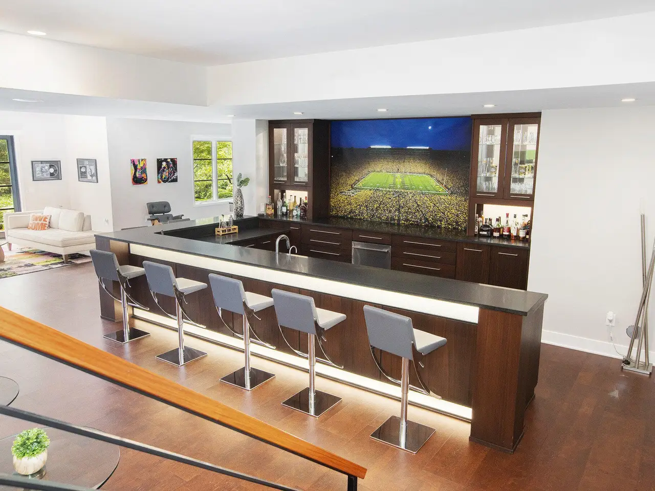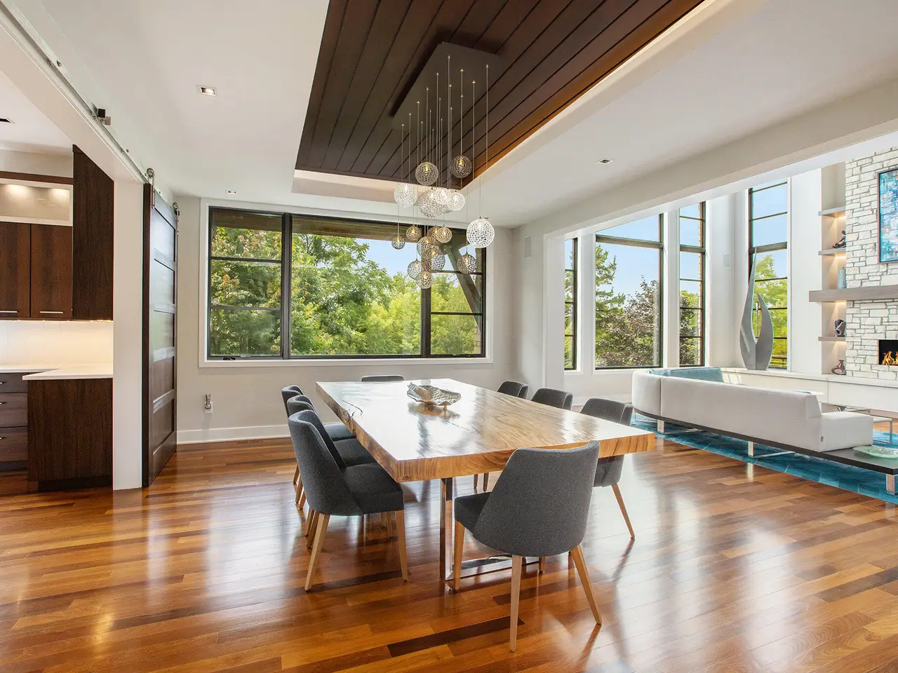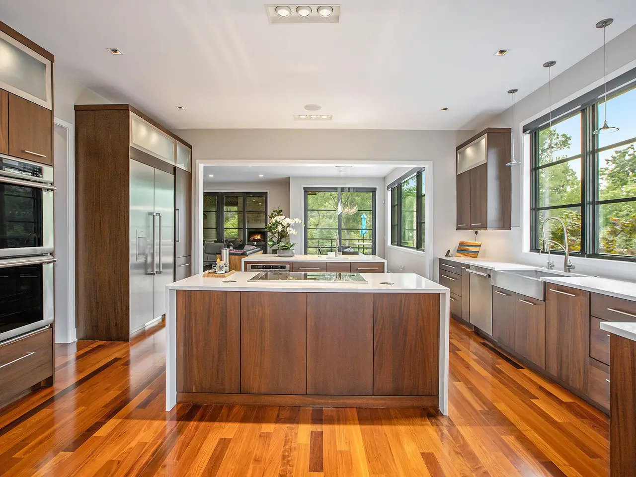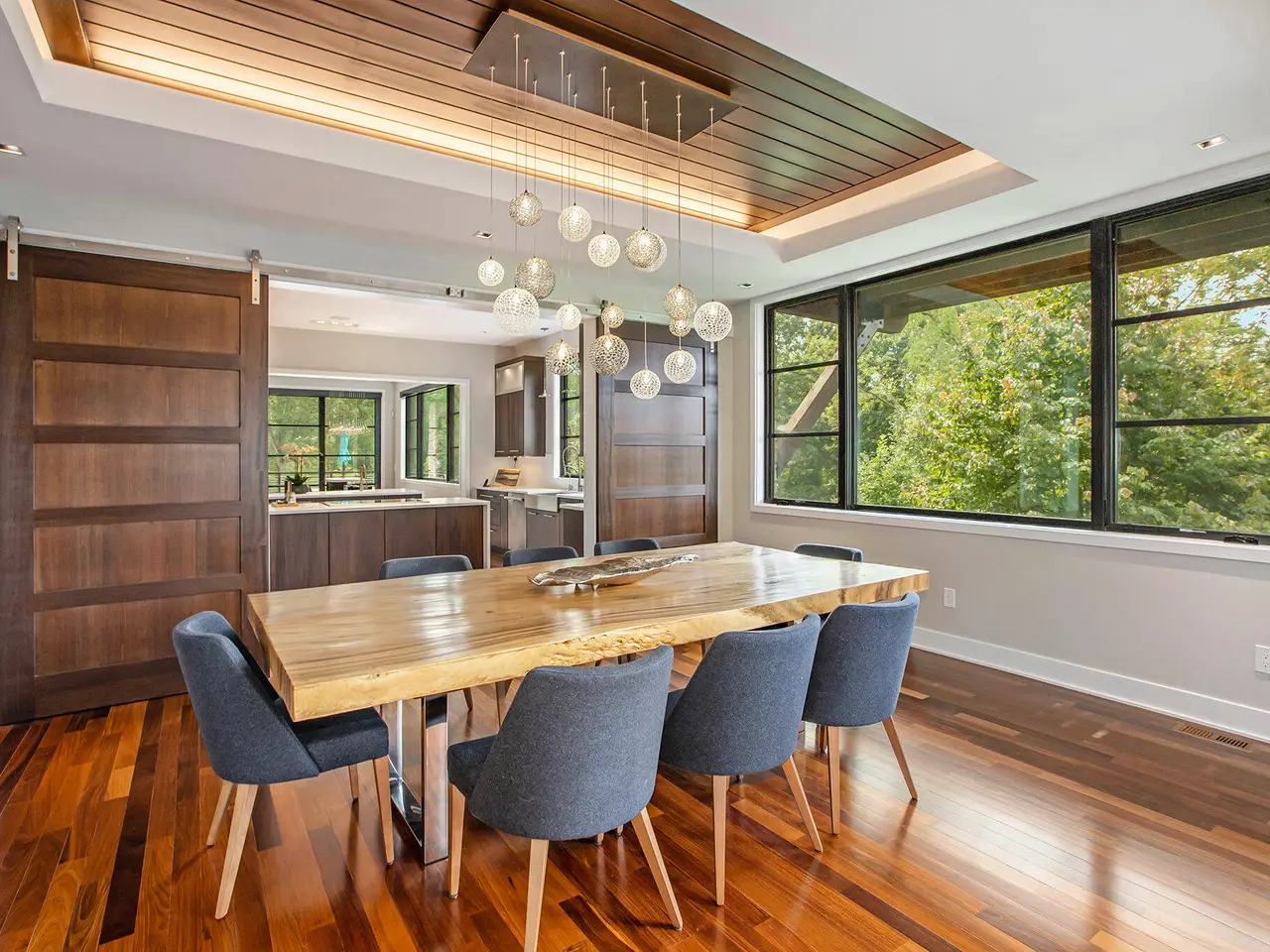 This custom-built Frank Lloyd Wright inspired Prairie Modern style home located in the heart of Ann Arbor is one of the finest homes in the area and a true masterpiece of design, materials, and craftsmanship. You will be impressed at every turn, inside and out, by this truly spectacular property. The home rests on a three-acre double lot just minutes from all UM Campus locations and all Hospitals. The setting offers complete privacy and a stunning view of the Huron River Valley. The grounds are immaculate and feature multiple outdoor loving spaces, extensive landscaping, soothing water sculpture, and entry water feature with walk-over bridge. The eight-car garage space includes fully conditioned work bay with two car lift and extensive cabinetry. No expense was spared to create one of the most incredible living experiences you have ever seen. Interior highlights include a breathtaking two story foyer with custom staircase and stone accent wall, Ipe wood flooring throughout the main level, dramatic two story living room with stone fireplace, custom display shelves, and two story windows with views to the Valley, custom kitchen with Mahogany cabinets built by Dan Young includes two islands, coffee station, professional grade Thermador appliances, and quartz counter tops with a full waterfall edge on the islands, walk-behind wet bar with wine storage, dedicated walk-in pantry with built in cabinets, 2nd refrigerator, and wet bar, comfortable open concept family room with built in entertainment center, and an incredible screened porch with fireplace, Viking grill, heat lamps, and power screens. Additional main floor features include an extensive back hall mud room, laundry room, and homework-station, main floor guest suite with attached bath, and private home office with built-in desk and cabinets, fireplace, and private balcony. The upper level includes a spectacular primary bedroom suite with custom built walnut accents, spa-like primary bath, and oversized, fully built-out primary closet, 2 additional bedroom/bath suites, and a 2nd laundry room. The finished walk-out lower level includes an oversized, walk-behind bar, home theater room with retractable divider, gaming area, sitting area, 2nd office home/playroom, exercise room, and 5th bedroom/bath suite. There is an extensive list of upgrades including custom Lutron lighting and Control 4 home automation for music, security, and theater. Incredible!