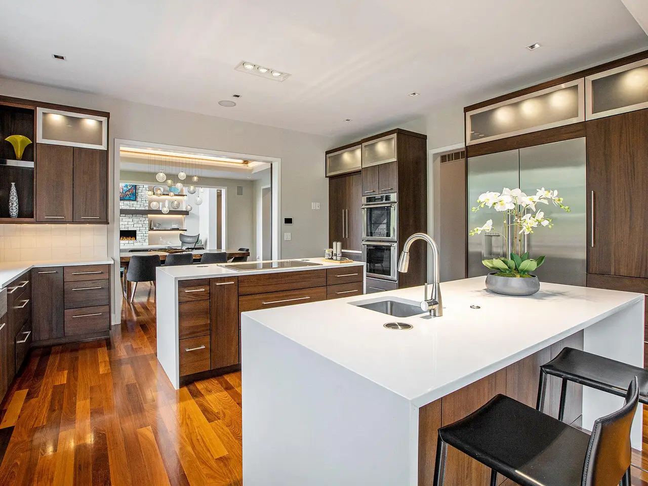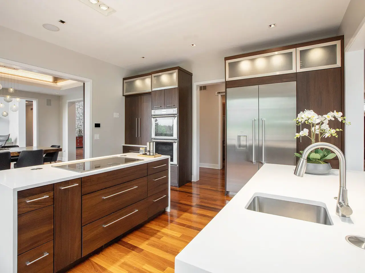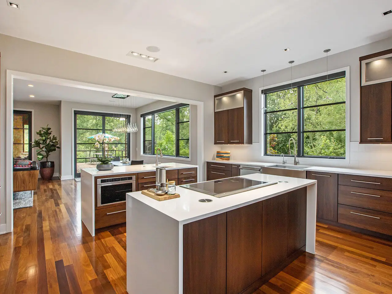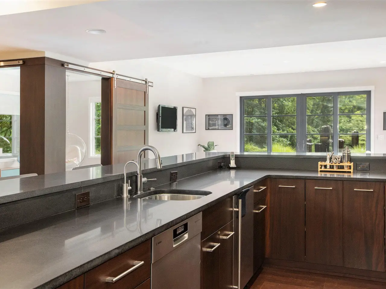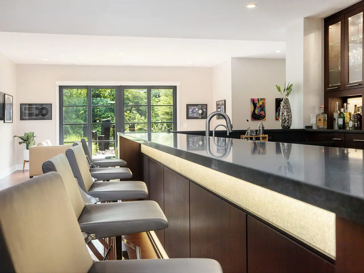 This custom-built Frank Lloyd Wright inspired Prairie Modern style home located in the heart of Ann Arbor is one of the finest homes in the area and a true masterpiece of design, materials, and craftsmanship. You will be impressed at every turn, inside and out, by this truly spectacular property. The home rests on a three-acre double lot just minutes from all UM Campus locations and all Hospitals. The setting offers complete privacy and a stunning view of the Huron River Valley. The grounds are immaculate and feature multiple outdoor loving spaces, extensive landscaping, soothing water sculpture, and entry water feature with walk-over bridge. The eight-car garage space includes fully conditioned work bay with two car lift and extensive cabinetry. No expense was spared to create one of the most incredible living experiences you have ever seen. Interior highlights include a breathtaking two story foyer with custom staircase and stone accent wall, Ipe wood flooring throughout the main level, dramatic two story living room with stone fireplace, custom display shelves, and two story windows with views to the Valley, custom kitchen with Mahogany cabinets built by Dan Young includes two islands, coffee station, professional grade Thermador appliances, and quartz counter tops with a full waterfall edge on the islands, walk-behind wet bar with wine storage, dedicated walk-in pantry with built in cabinets, 2nd refrigerator, and wet bar, comfortable open concept family room with built in entertainment center, and an incredible screened porch with fireplace, Viking grill, heat lamps, and power screens. Additional main floor features include an extensive back hall mud room, laundry room, and homework-station, main floor guest suite with attached bath, and private home office with built-in desk and cabinets, fireplace, and private balcony. The upper level includes a spectacular primary bedroom suite with custom built walnut accents, spa-like primary bath, and oversized, fully built-out primary closet, 2 additional bedroom/bath suites, and a 2nd laundry room. The finished walk-out lower level includes an oversized, walk-behind bar, home theater room with retractable divider, gaming area, sitting area, 2nd office home/playroom, exercise room, and 5th bedroom/bath suite. There is an extensive list of upgrades including custom Lutron lighting and Control 4 home automation for music, security, and theater. Incredible!