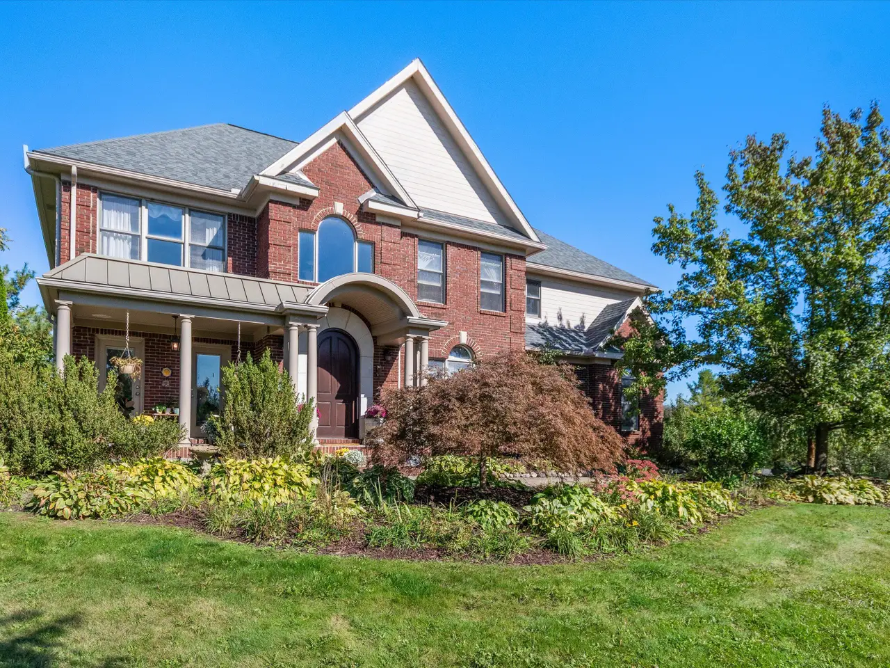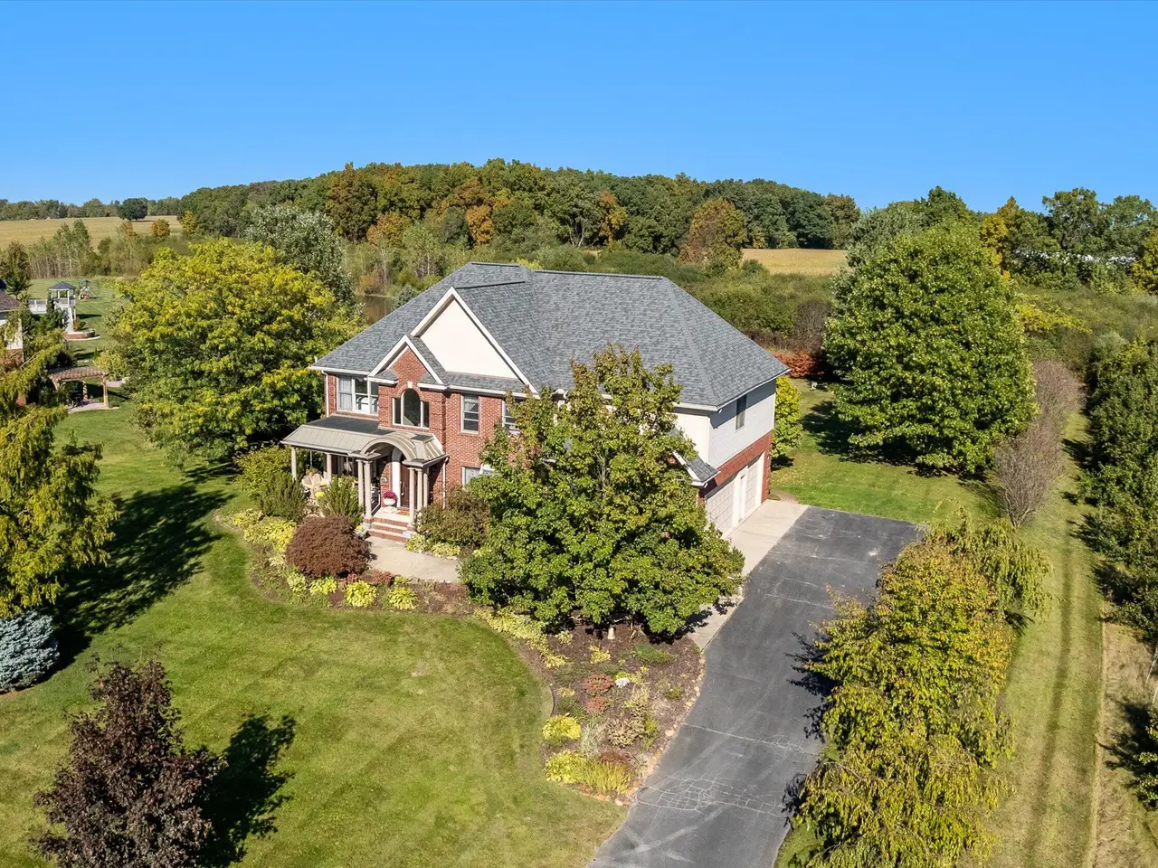 Serenity meets convenience at this beautifully maintained home on a secluded one-acre lot just minutes from downtown Ann Arbor, the University of Michigan main campus, and both medical centers. Surrounded by countryside views yet tucked into a private neighborhood of only 20 homes, this residence offers over 4,300 square feet of thoughtfully designed living space that truly lives like new. From the covered front porch, step inside to a dramatic two-story foyer, flanked by a formal dining room and a flexible space with French doors - ideal as a family room, den, or office. At the back of the home, the two-story living room boasts a gas fireplace and a wall of windows overlooking the neighborhood green space and pond. The adjacent eat-in kitchen features elegant cream cabinetry, granite counters, and a large island with breakfast bar seating. A sunny breakfast nook opens to the expansive Trex deck and patio, perfect for summer entertaining. Upstairs, retreat to the spacious primary suite with tray ceiling and a connected sitting room wrapped in windows - a serene spot for reading or morning yoga. The luxurious en suite bath offers dual vanities, spa tub, separate shower, and a huge walk-in closet. Three additional bedrooms and two more full baths, including one en suite and one Jack & Jill, plus bedroom-level laundry, ensure comfort and convenience. The finished lower level with daylight windows extends the living space with a second fireplace, full bathroom, and ample storage - ideal for game day gatherings or private guest quarters. Outdoors, enjoy a backyard sanctuary with a Trex deck, firepit patio, and private pond surrounded by lush perennial landscaping. It's the perfect place to watch the seasons change or simply relax in peace. With countless recent updates - including roof (2023), renovated bathrooms (2022), remodeled kitchen (2010), newer flooring (2015-2023), and fresh paint (2025) - this home combines timeless design and turnkey condition with modern comfort and an unmatched location. A private haven with effortless access to Ann Arbor and beyond - don't miss this one!