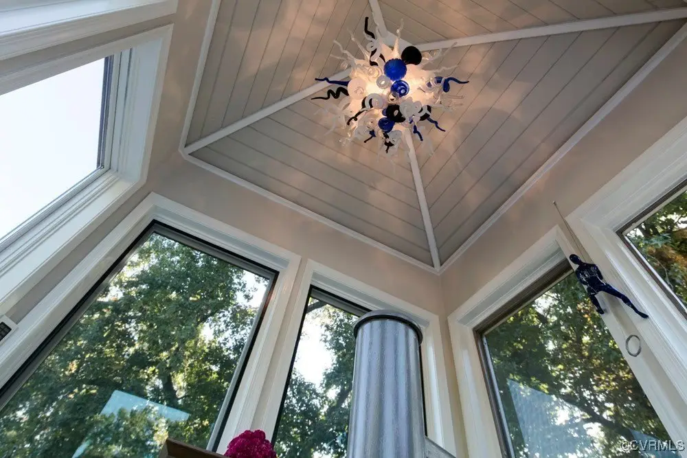 Perched high above Riverside Drive, the Tower House is a striking glass and steel home designed by Richmond architect David Johannas, with interiors reimagined by custom builder Mark Franko. This four-story modern residence offers sweeping views, magazine-worthy design, and a rare connection to nature in the heart of the city. Floor-to-ceiling windows flood the home with natural light, illuminating three bedrooms, two full and two half baths, and elegant living spaces with gas fireplaces. The main-level primary suite is a true retreat with a spa-inspired bath, soaking tub, and built-in TV. A chef's dream kitchen features Wolf and Sub-Zero appliances, quartzite counters, and gorgeous views over a serene rear patio. The lower-level hosts two bedrooms, granite bar with seating, beverage center and wine locker, and a walk-out family room with private access to the hillside gardens. Several outdoor entertaining areas include a dramatic wrap-around deck from the living and dining room, and a graceful stairway of Pennsylvania Bluestone that leads you down to the Buttermilk Trails. The tower's upper floors offer a commanding view of the Carillon, and seasonal views of the James River and downtown skyline. A rear carport and off street parking, complete with multiple attached and detached areas for outdoor storage. A celebrated property, featured in several publications and a stop on the 2024 Historic Garden Tour. This is a rare opportunity to own one of Richmond's architectural treasures. Owner Agent.