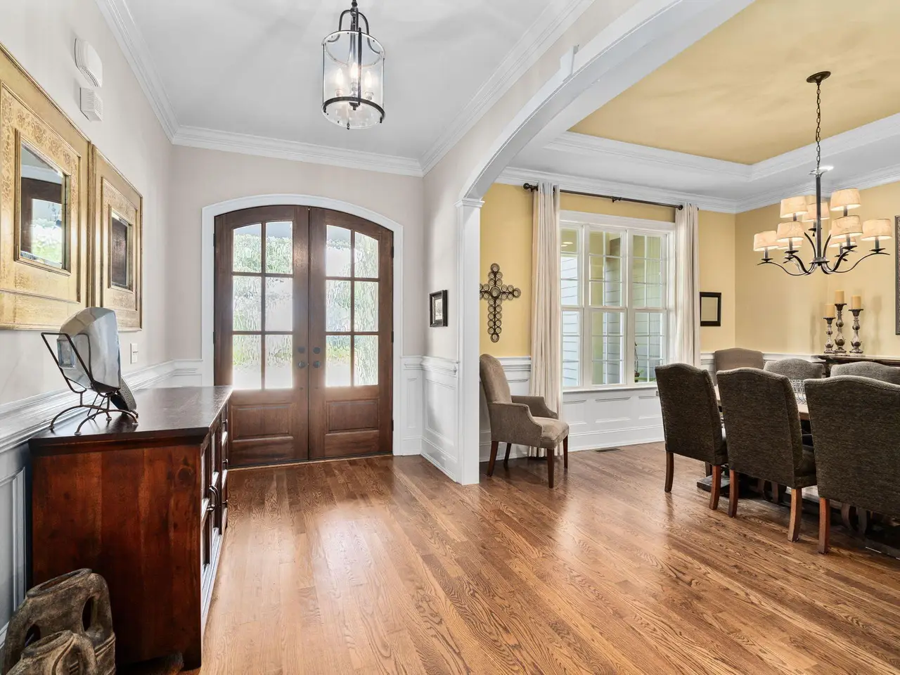 Knock out your wish list with this trophy property. Multi-generational living with TWO primary bedrooms & TWO laundry rooms. Great curb appeal - a gorgeous exterior that is truly swoon worthy. The interior is drenched in vogue finishes. This custom property lives large & encompasses 5 spacious bedrooms, 5 baths, 3 fireplaces, Chef's kitchen, family room, gorgeous hearth room, formal dining room, drop zone, & a bonus room - plenty of room for entertaining, sleep, study, storage and stellar versatility. You are greeted with a double door entry & a grand foyer, gleaming hardwoods, superior mill work & finishes, arched doorways & lofty ceilings that lend an open and airy feel throughout. Coveted primary on main level (one of two): Oversized with a tray ceiling, walk in closet, hardwoods & private views of the lush backyard. The heart of this home will be the Chef's kitchen that is well appointed with a gas cooktop, two sinks, beautiful pendants, an oversized island, under cabinet lighting, a Costco worthy walk-in pantry - this area becomes your gathering place. Hearth room is flanked with a stacked stone gas fireplace, built-ins, hardwoods and a soaring ceiling. 2nd primary BR has two walk-in closets, a luxe spa with a standalone soaking tub, walk-in shower w/custom tile and dual vanities. Add 3 more bedrooms. a bonus room & another wash/dry zone. This home is wrapped in windows that gives such a sense of tranquility. Coffee in the morning, tea in the afternoon or cocktails in the evening - you will never want to leave your screened in porch and/or stacked stone outdoor fireplace. Backyard entertaining area is super-sized with lush greenery, diverse plantings, stone patio & charming accents that elevate the space into a captivating and relaxing retreat. Massive walk-in floored storage areas. Double bay extended garage with room for a workshop or gym. Third floor can be finished. Enviable lifestyle with a community pool / play area and a location that is close to everything you may need or want. Welcome Home!