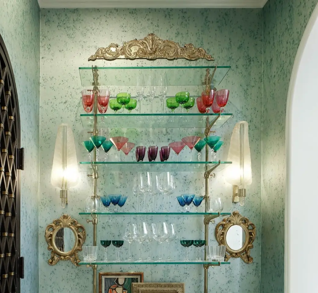 Formal dining room with lacquered walls