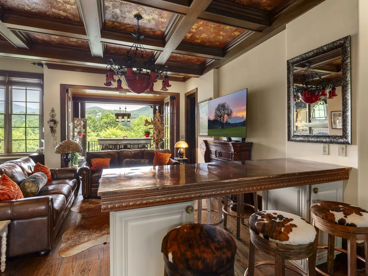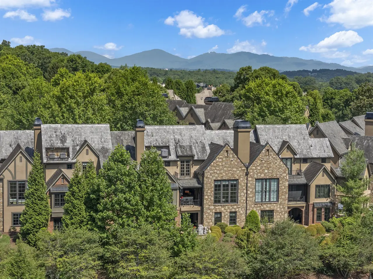 This exceptional townhouse offers an unmatched combination of style, comfort, and convenience. Ideally positioned within The Cliffs at Walnut Cove, it provides effortless access to dining, recreation, and community amenities. The residence showcases timeless finishes blended with contemporary design elements, creating a refined and inviting atmosphere. The spacious primary suite features a private balcony, while the lower level is thoughtfully designed for entertaining with a fireplace, wet bar, and walk-out terrace. Expansive southwesterly views extend across the Jack Nicklaus Signature Golf Course toward Pisgah National Forest, offering a stunning natural backdrop. Additional highlights include an in-home elevator and panoramic mountain vistas, making this townhome an exceptional retreat.