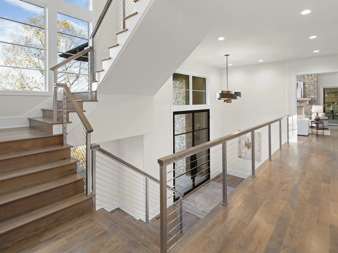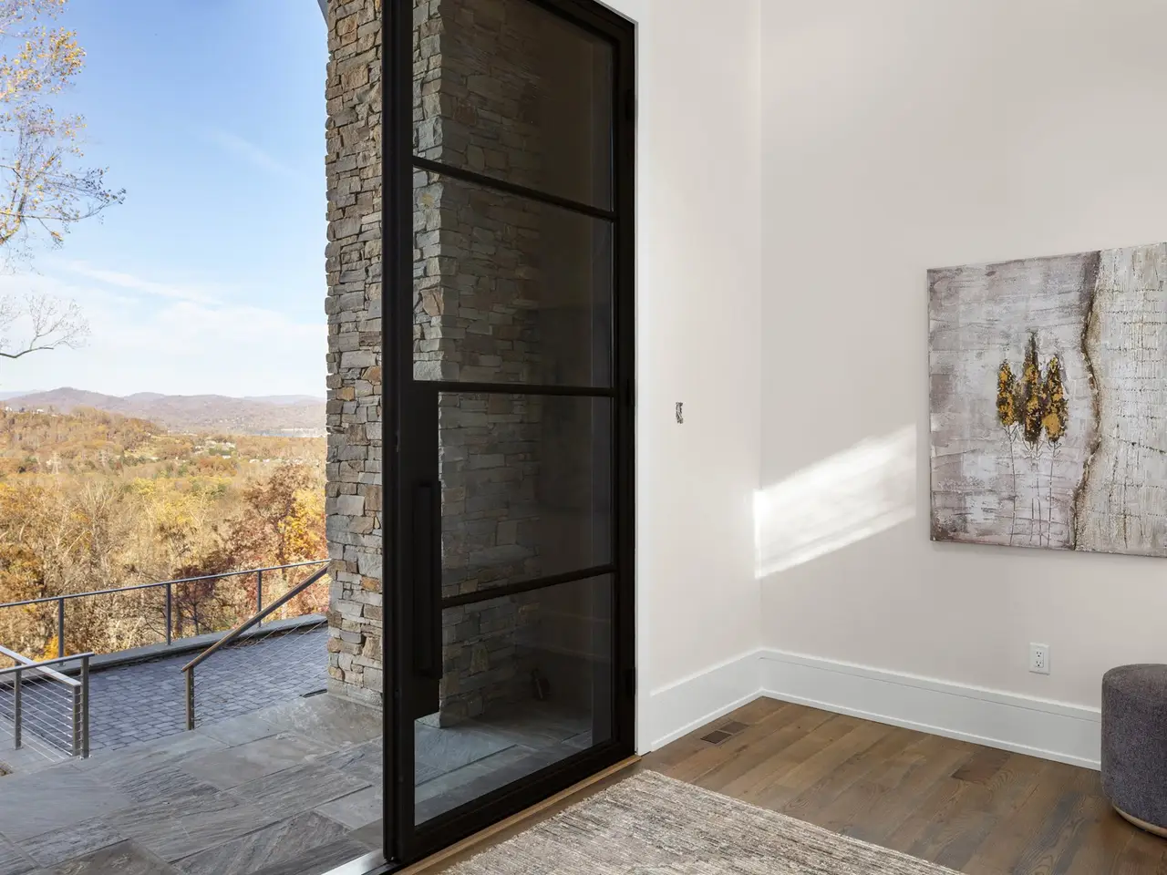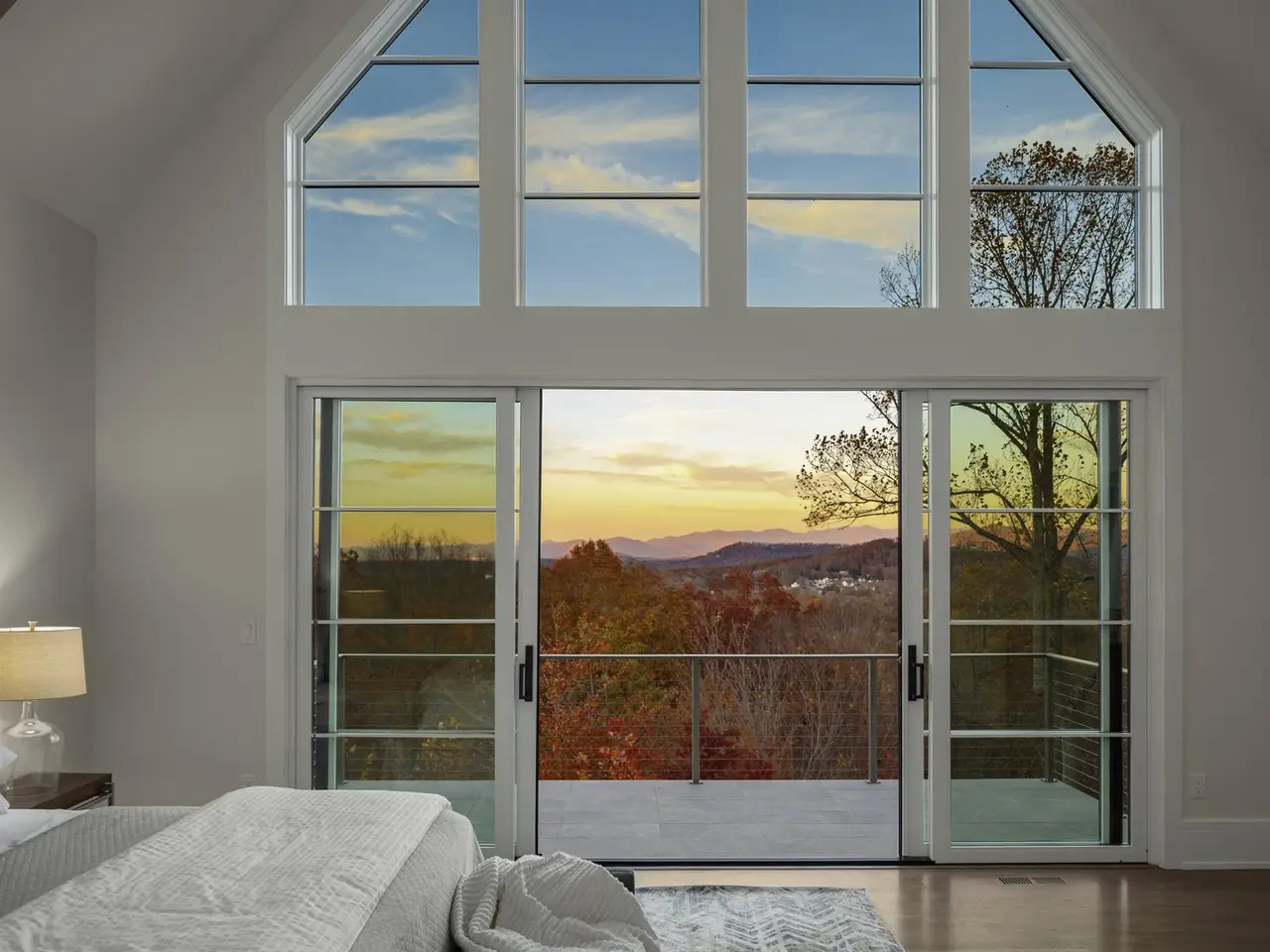 Perched on one of the highest ridges in Walnut Cove, this brand-new 2025 modern mountain masterpiece delivers the rarest commodity in Western North Carolina: unobstructed, 180-degree panoramic views that stretch from the glowing skyline of downtown Asheville all the way to the ancient spine of the Blue Ridge. On a clear day you can pick out the spire of the Jackson Building and the neon glow of the Battery Park Hotel at twilight. In fall, the entire valley ignites in crimson and gold, framing the city like a living postcard. In winter, the lights of Asheville shimmer below while snow dusts the distant peaks. This is not a view; it's a front-row seat to the seasons.Step inside and the drama continues. Soaring gable windows flood the open great room with natural light, framing the stone fireplace that rises like a sculptural monument. White-oak beams float overhead, and wide-plank European oak floors flow seamlessly to the expansive glass doors, merging the interior with the large covered veranda. A second outdoor fireplace and built in grill make this space usable for morning coffee with the sunrise over Pisgah or evening cocktails as the city lights flicker on below.The heart of the home is a chef's kitchen that belongs in a design magazine. Custom cabinetry climbs to the ceiling, complemented by a massive island with seating and additional storage. A full appliance suite, and a massive walk-in pantry make entertaining effortless.The primary suite is a private retreat on the main level, opening directly to a private terrace and those endless views. Two walk-in closets, and a spa bath with freestanding soaking tub and private laundry create a sanctuary you'll never want to leave.Upstairs, a generous guest suite and bonus room/office each claim their own wing, sharing a lofted space overlooking the great room. Descend the floating staircase (or take the elevator) to the lower level, where entertainment reaches new heights. A bonus room with wet bar can be a theater, game room, or gym. Two guest suites with en-suite baths, lots of storage, and a massive 3-car garage with additional storage and workshop area.Outside, native stone walls cascade down the hillside, blending the architecture into the mountain itself. The paver motor court and copper-accented entry echo the timeless craftsman details that make Walnut Cove homes so coveted.Located just minutes from downtown Asheville yet worlds away from the ordinary, 222 Secluded Hills Lane is more than a home - it's the ultimate expression of mountain modern living. Jack Nicklaus golf, wellness center, tavern, and 24-hour gated security all come with your Cliffs membership.Some homes have views. This one owns the horizon as the cable-rail decks never obstruct the view. Come see why the photos don't do it justice. The view has to be experienced in person.