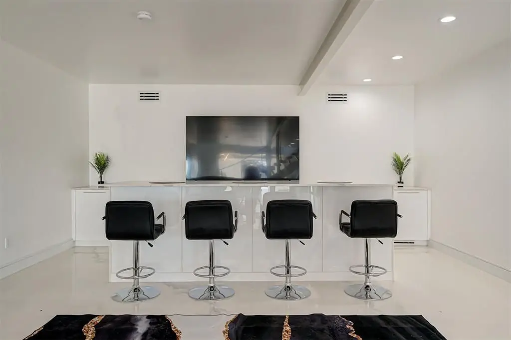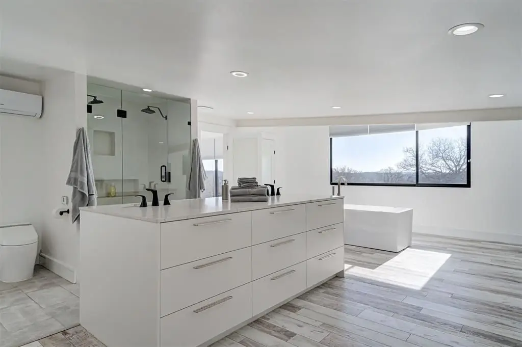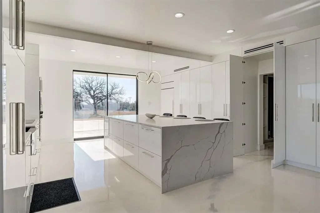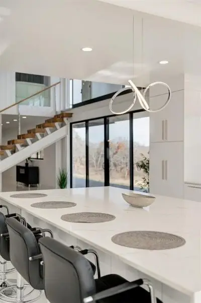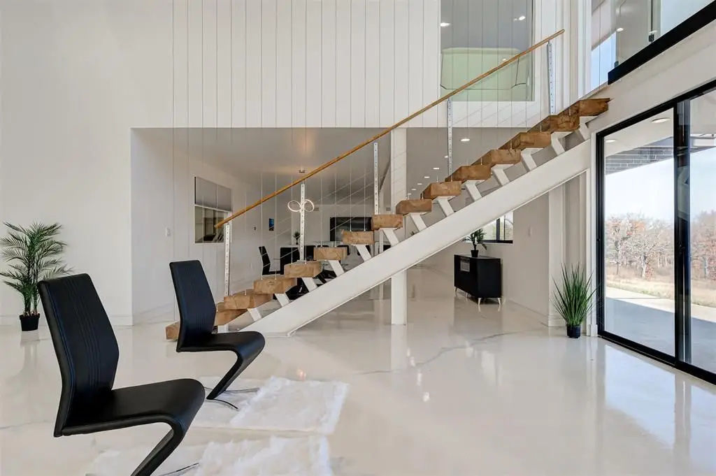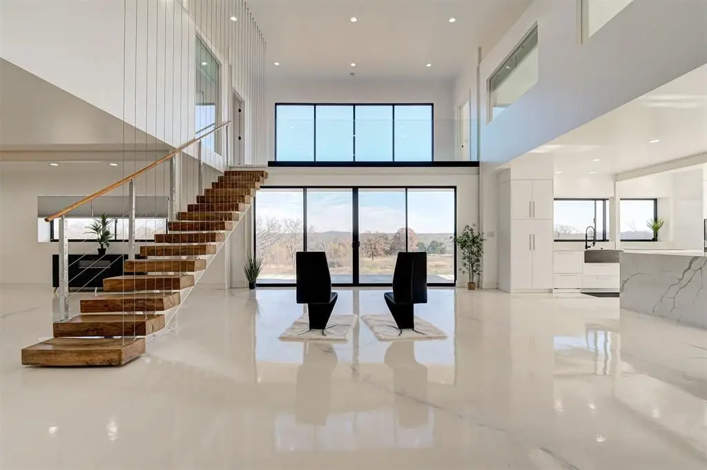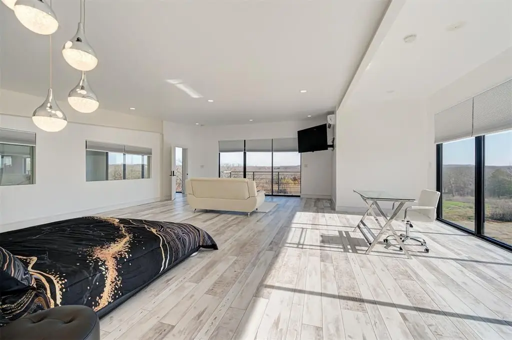 Immerse yourself in this extraordinary contemporary estate, gracefully set on 5 acres. The open-concept design features a grand living area, highlighted by soaring 20-foot windows that flood the space with natural light, creating a sense of airy expansiveness. The dining area seamlessly transitions into an elegant bar, equipped with a jumbo screen and abundant storage beneath sleek quartz countertops. The chef's kitchen is nothing short of spectacular, boasting top-tier appliances, including dualSub-Zero refrigerators, a vast quartz-topped island, and a generous walk-in pantry for ultimate convenience. A striking floating maple staircase leads to two palatial master suites, each an oasis of luxury, featuring indulgent master baths & enormous walk-in closets with custom islands and in-suite laundry. A secondary staircase directs you to a private guest suite, complete with its own luxurious bath, a state-of-the-art movie theater, and additional sleeping accommodations for ultimate comfort & privacy. Every suite is appointed with large-screen televisions & high-speed internet, ensuring both relaxation and connectivity. Expansive balconies off each suite offer breathtaking views of the serene countryside, bringing the beauty of the outdoors in. The home is outfitted with luxurious finishes, including full bidet toilets throughout, & all furnishings are included. Outside, enjoy the convenience of open and covered parking, complemented by a basketball court forrecreational pursuits. Minutes away, Lake Murray invites you to explore its serene waters, offering a water park, swimming and kayaking beaches. Exceptional dining & entertainment await at the nearby Bovada Casino, while the world-renowned Winstar World Casino & Resort is a mere 35 minutes away, adding an extra layer of excitement to this remarkable home. Seller Offering to add large beach pond on the property while under contract with a qualified buyer. Welcome Home to 546 Mockingbird Lane in Ardmore, Oklahoma.