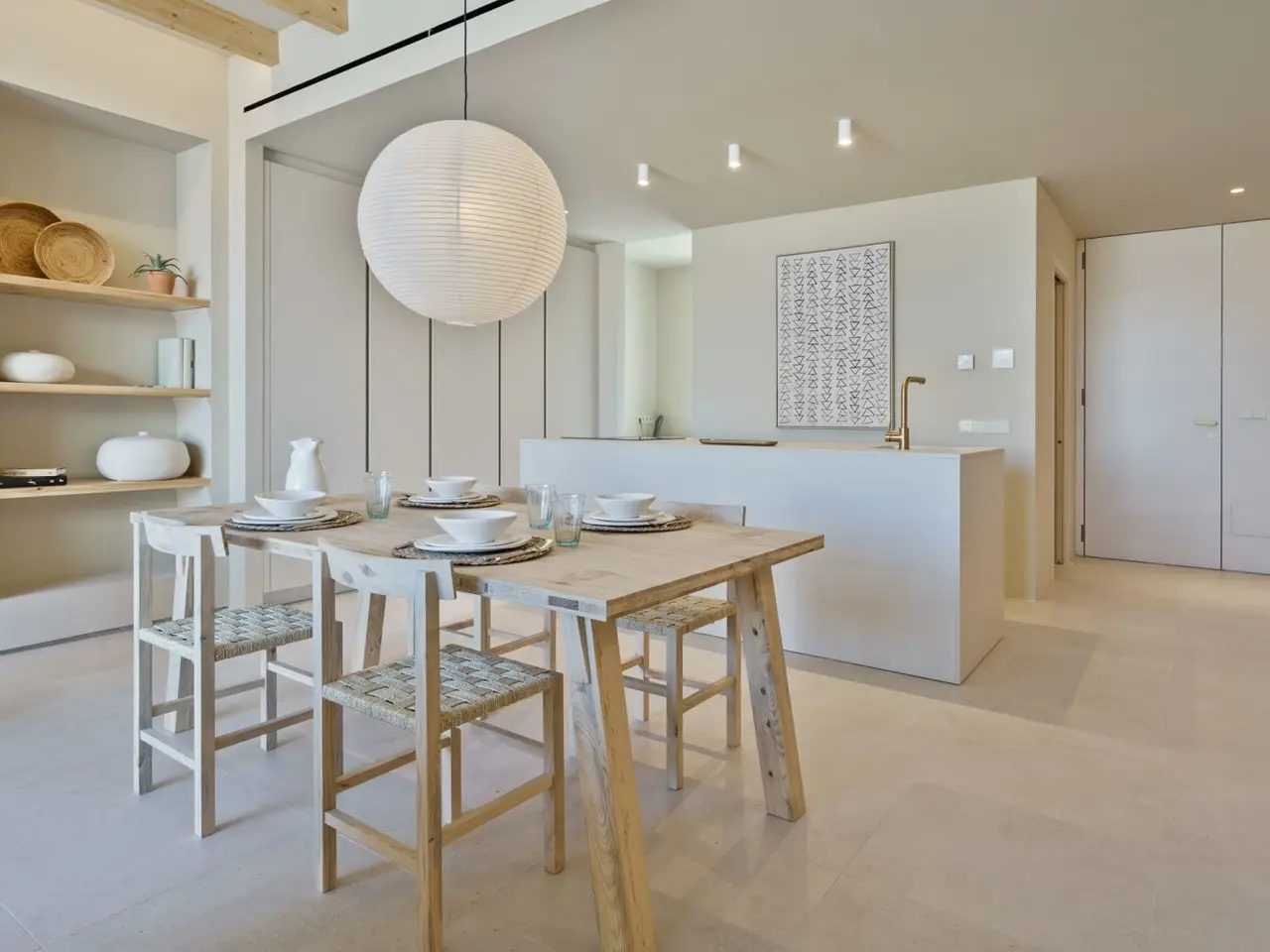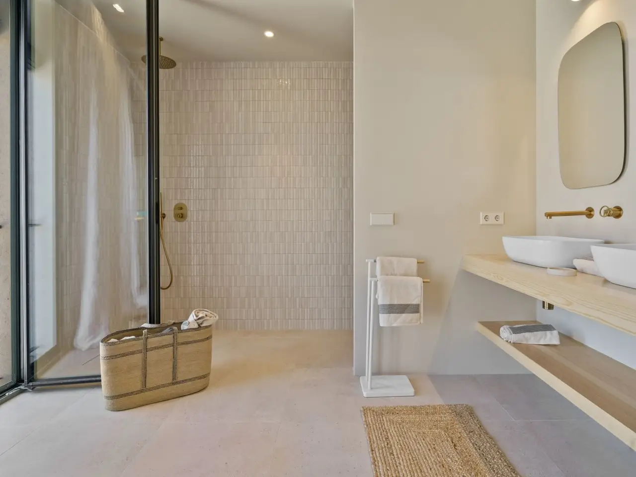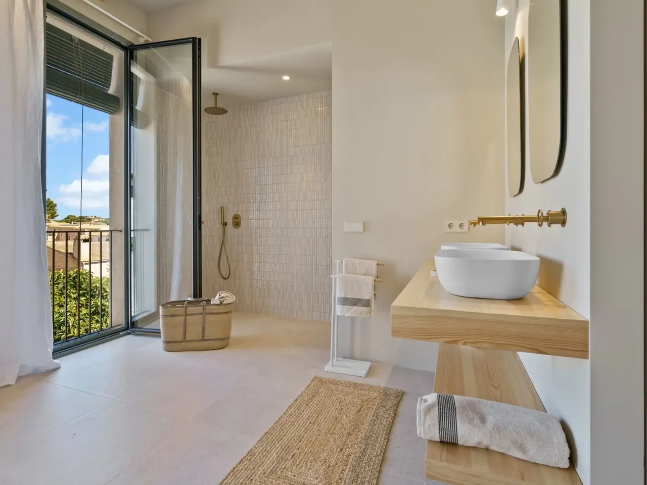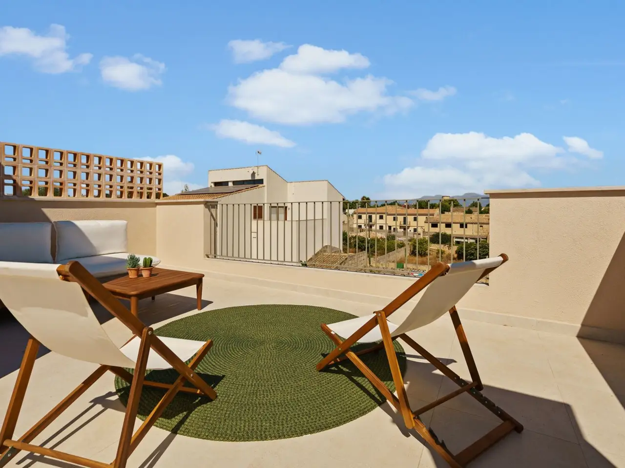 Experience Mediterranean living in a quiet side street in the charming village of Ariany. The village house was completed in 2025 and impresses with its modern design and high-quality fixtures and fittings. Contemporary comfort and relaxed elegance are combined on two floors with a generous living space of approx. 152 m². Upon entering, you are greeted by an inviting entrance hall, from which you enter the spacious open-plan living and dining area. The fully equipped, open kitchen and a guest WC complete the first floor. A cozy terrace and the private swimming pool offer ideal conditions for relaxing days with family and friends. The upper floor accommodates three stylishly furnished bedrooms, including a master bedroom with an elegant en suite bathroom. A further bathroom completes the upper floor. A special highlight is the spacious roof terrace with a wonderful view of the Tramuntana mountains and idyllic Artá on the other side. The entire house is fitted with high-quality natural stone flooring and has central air conditioning (hot/cold), underfloor heating and a fireplace, which ensure a cozy living climate all year round.