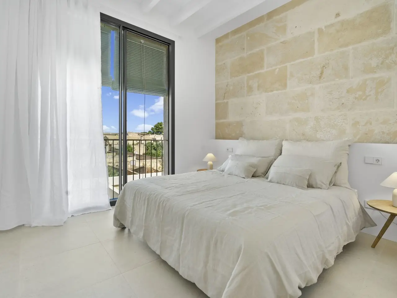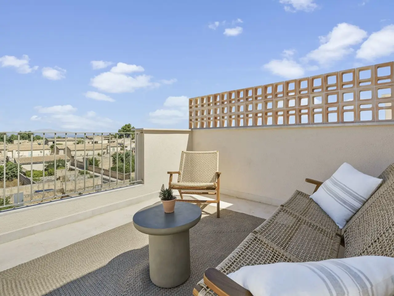 These 2 planned terraced houses, each with a living area of approx. 152 m² and a plot area of approx. 130 m², are being built in a quiet side street in the beautiful village of Ariany. Completion is planned for early 2025. Each unit will have 3 floors. When you enter the house you are greeted by an entrance hall, from which you enter the open living/dining area with a fully equipped kitchen and a guest toilet. Outside, a terrace and a pool invite you to spend time with friends and family. The upper floor offers three tastefully furnished bedrooms and two bathrooms, one of which is en suite. On the second floor there is a roof terrace with views of the Tramuntana Mountains and Artá on the other side. Central air conditioning (hot/cold), underfloor heating and a fireplace ensure a pleasant indoor climate all year round. Enjoy all the amenities of the Mediterranean lifestyle in this easy-care village house. Position Ariany is located in the middle of Mallorca, on the road from Petra to Santa Margalida, in the northeast of the Plà plain on the Puig de Sa Cobetera, one of the highest hills in the region. The approximately 850 residents appreciate its quiet location, isolation and the natural living experience. Spacious rural houses, rustic mansions and Mediterranean fincas dominate the townscape, away from the crowds and hustle and bustle. According to archaeological findings, this area was already inhabited in prehistoric times (Talayotic culture). Ariany was first called by its current name under the conqueror of Mallorca, Jaume I. The municipality only became independent of Petra in 1982. One of the main attractions is the simple but elegant Nuestra Señora d'Atocha church from the 19th century. Another highlight is the historic cross of Ariany, which gives an insight into the history of the region, and the annual festival in honor of San Juan, where people dance and celebrate in colorful traditional costumes. Ariany is a paradise for nature lovers and hikers, who can explore the surrounding countryside on the numerous hiking trails. The distance to Palma is about 50 km and the airport is 5 km more. Overall, Ariany offers an ideal mix of tranquility, tradition and authentic Mallorcan life, making it an attractive place for property buyers who want to escape the hustle and bustle of the city and enjoy the beauty of nature. Furnishing - Underfloor heating - Fireplace - Air conditioning - Pool