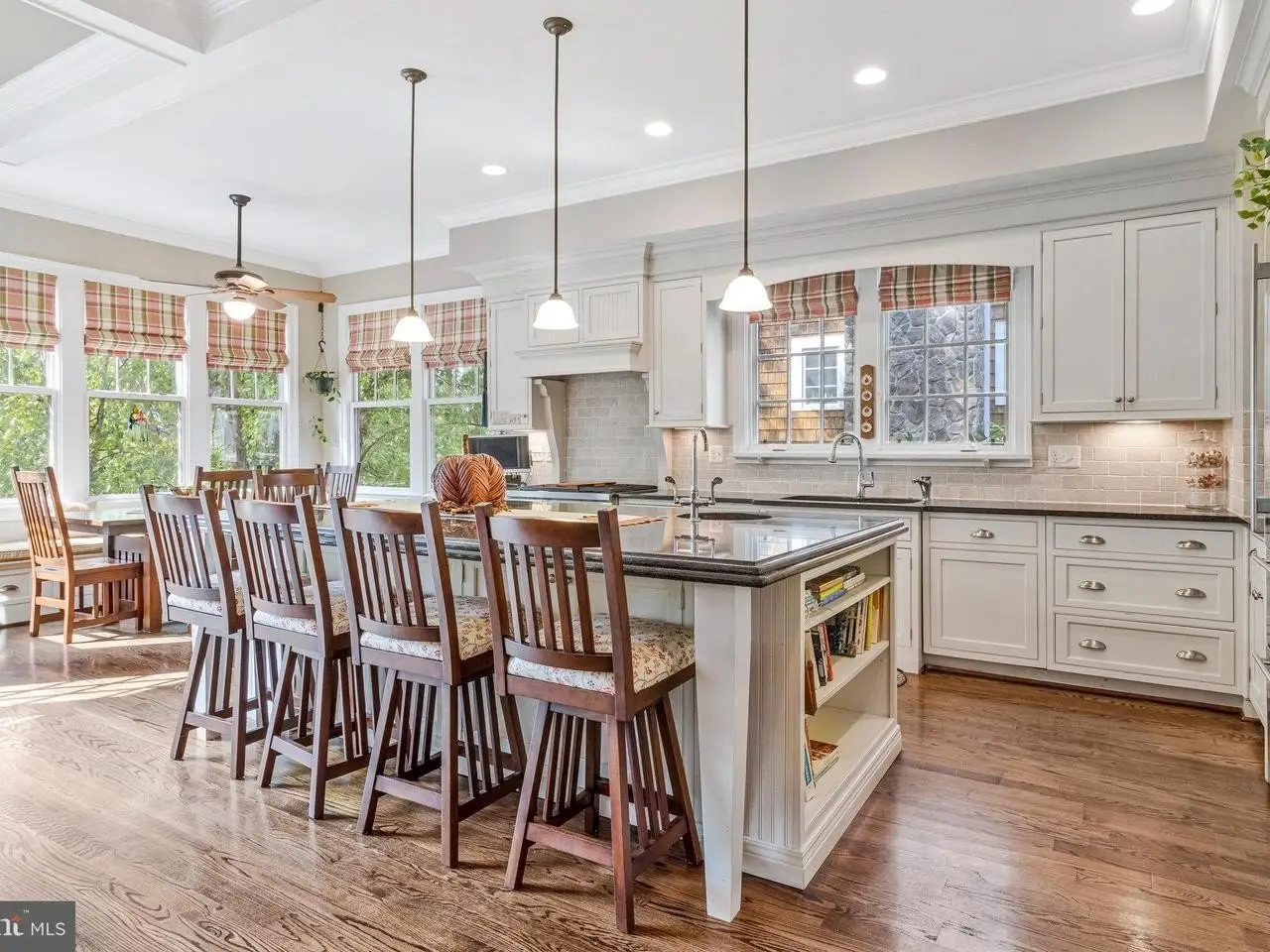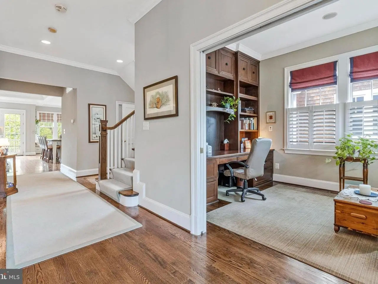 Custom & Spectacular. Built in 2005 and beautifully maintained, this center-hall Craftsman-style bungalow offers exceptional quality, comfort, and smart design across three finished levels. Featuring two-zone HVAC, a dumbwaiter, a whole-house central vacuum system, a Naven instant hot water heater, an environmental pure water filter system, and surround sound, this home blends timeless architecture with modern convenience. Main level The heart of the home is the open concept island gourmet kitchen with crown molding, opening to the family room, anchored by a Wolf 4-burner range with griddle, Sub-Zero refrigerator/freezer with icemaker, Sharp under-counter microwave, incognito-panel dishwasher, and a stainless undermount sink with retractable faucet. Dark granite counters with AG edging, self-closing cabinetry, pendant and recessed lighting, and a charming eat-in area with built-in bench seating and storage create a warm and functional space. The family room showcases a coffered ceiling, built-in cabinetry, retractable TV, surround sound, recessed lighting, and dark hardwood floors. French doors open to a 5' x 21' deck overlooking the backyard and driveway. A formal dining room flows seamlessly into the family room, while a cozy sitting room off the foyer offers plantation shutters and a decorative hearth. A main-level office features custom built-ins, surround sound, and plantation shutters. A full bath with a pedestal Kohler sink, Toto toilet, custom tile shower with seat, and wainscoting completes this level. Upper Level A large central hallway with crown molding and a custom carpet runner leads to three spacious bedrooms, including a luxurious owner's suite with a separate sitting room, double closets, built-in bookshelves, and a large walk-in closet with custom storage. The spa-like primary bath boasts marble tile, a glass shower with dual handheld faucets, a double vanity with marble counters, and a private water closet. Two additional bedrooms-each with hardwood floors, ceiling fans, and ample closets-share a marble-topped hall bath. A convenient laundry area with a Blomberg washer and dryer, cabinetry, and attic access completes the upstairs. Lower Level The fully finished basement includes an expansive family room with built-ins, bar, and surround sound, featuring a light granite countertop, Scotsman icemaker, wine fridge, Fisher & Paykel dishwasher, and stainless undermount sink. A bonus bedroom with casement windows, a full bath with marble finishes, a cedar closet, and a dedicated craft room add flexibility. Additional highlights include an 8-foot ceiling height, tiled walkways, and a two-car garage with GarageTek shelving, cabinets, rubber mat flooring, and LiftMaster opener. The utility room houses a Navien instant hot water heater, York furnace, AprilAire dehumidifier, and Environmental Water System filtration. Key Features · Three finished levels with 4+ bedrooms and 4 full baths · Gourmet kitchen with Wolf, Sub-Zero & Sharp appliances · Surround sound, custom built-ins, and plantation shutters throughout · Two laundry centers (upper level & basement) · Two-zone HVAC, whole-house vacuum system, and dumbwaiter · Walk-out lower level with full bar, wine fridge, and bonus bedroom · Two-car garage with custom storage and electric opener · Private deck overlooking backyard and driveway Close to everything and convenience at it's best! Blocks from Metro, moments from National Airport, Dining, shopping and all conveniences. A must see!