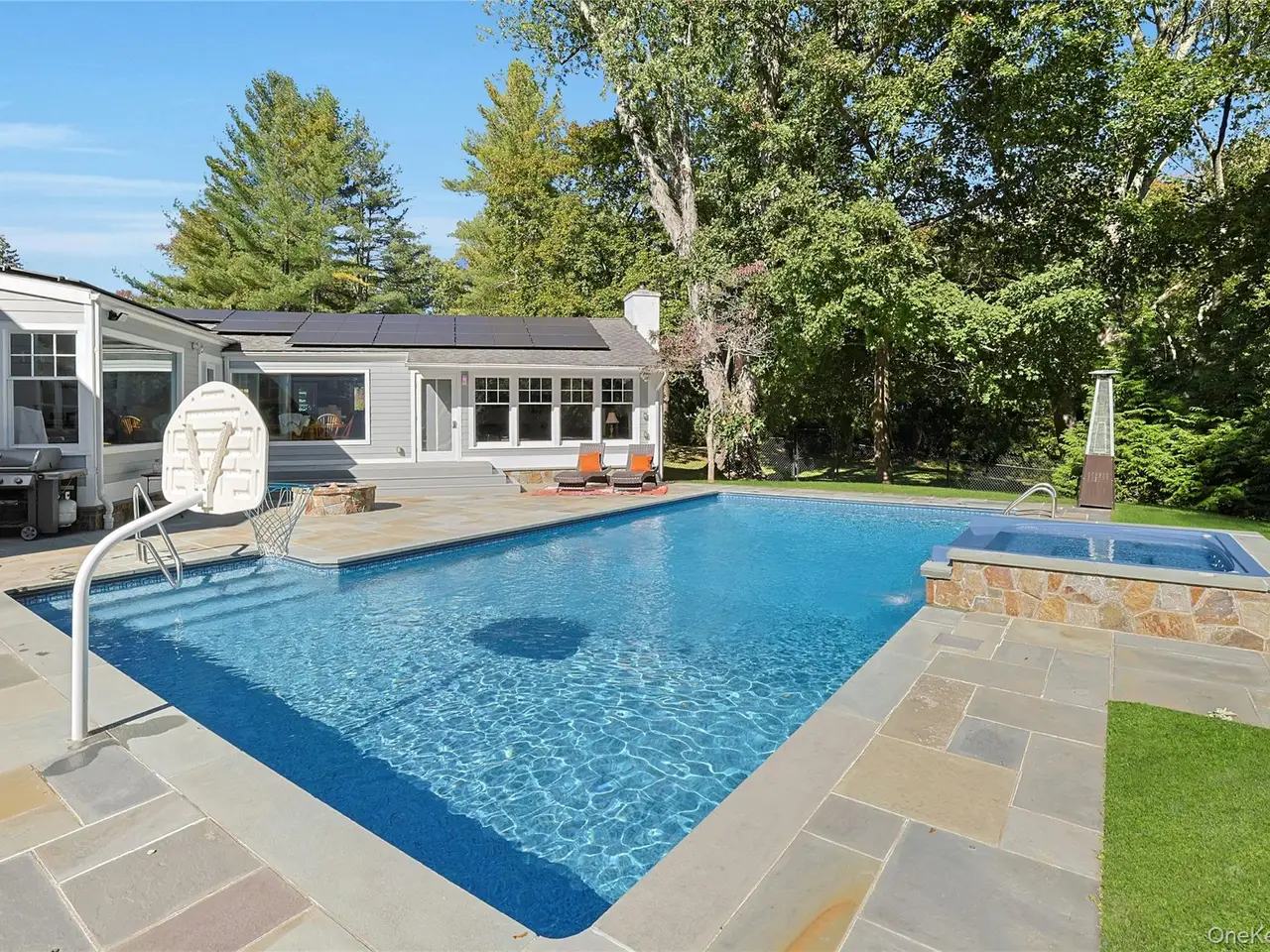 Refined living in the heart of Armonk. Set along a private tree-lined drive in Yale Farm, one of ArmonkÆs most desirable neighborhoods. This distinguished 4-bedroom 3.1-bathroom colonial blends timeless architecture with modern luxury. Elegant design and comfortable sophistication define every space. The main level features a flowing open layout ideal for both entertaining and relaxed everyday living. The updated chefÆs kitchen with a large center island opens to a striking family room with dramatic wood-beamed cathedral ceiling and stone fireplace. A glass door extends the living space to an expansive deck overlooking a beautiful landscaped backyard with an inground pool, spa and firepit û your own private resort for summer gatherings. A formal dining room leads to the living room with a fireplace and sun-filled heated four-season room. An office, powder room and gym with a full bath complete the first floor. Upstairs is the primary suite with two walk-in closets and a spa caliber bathroom featuring a multi-jet shower, soaking tub and vanities. A private deck provides the perfect spot for morning coffee or evening unwinding. Three additional bedrooms and a stylish hall bath complete the second level. Located minutes from ArmonkÆs vibrant village center, train, airport, major highways and award-winning schools.