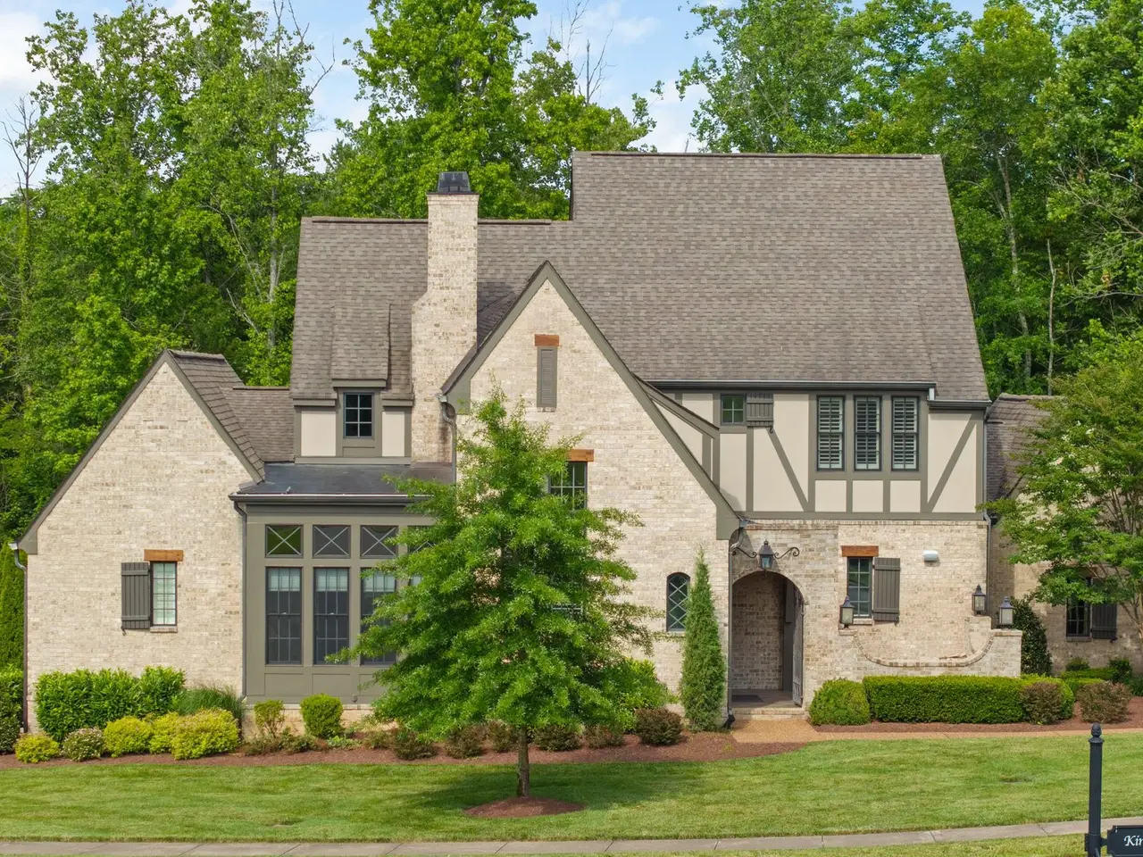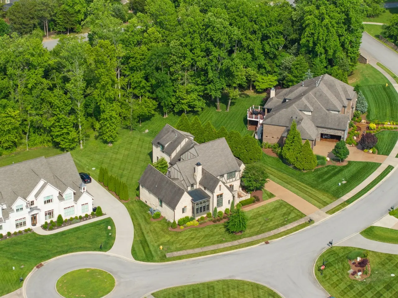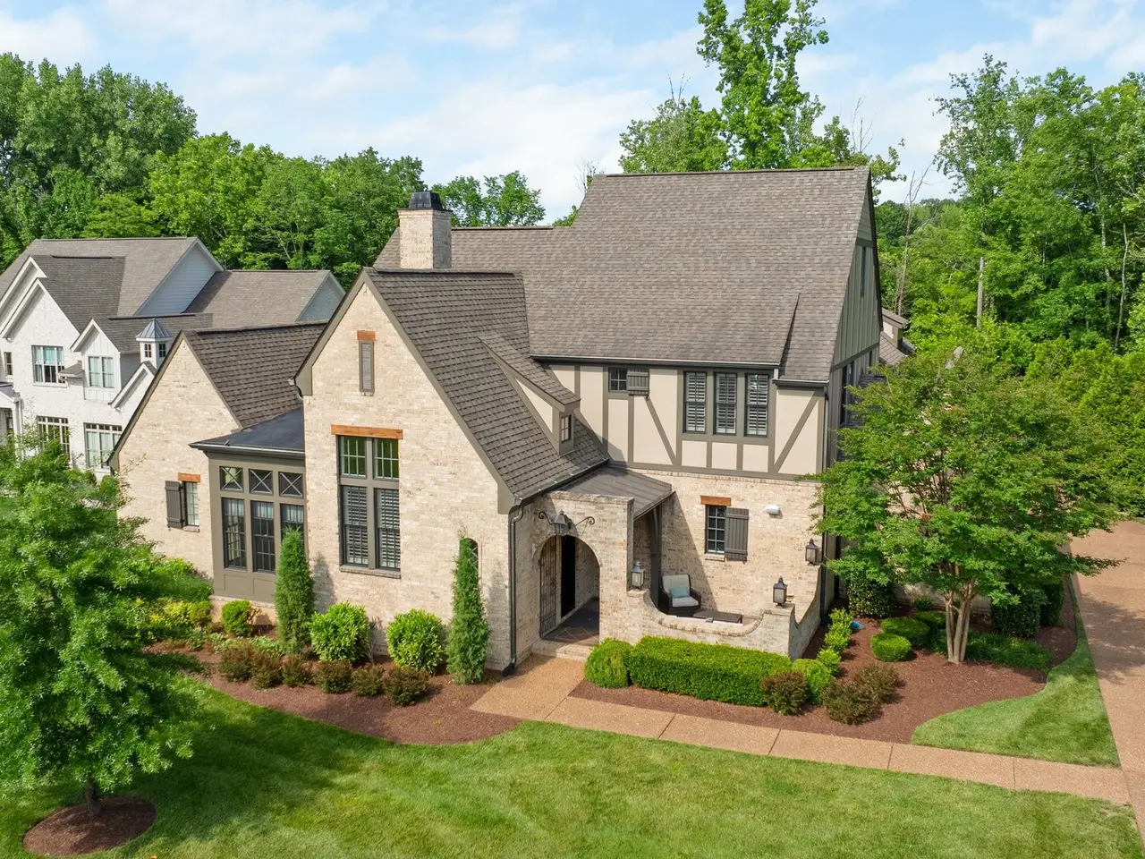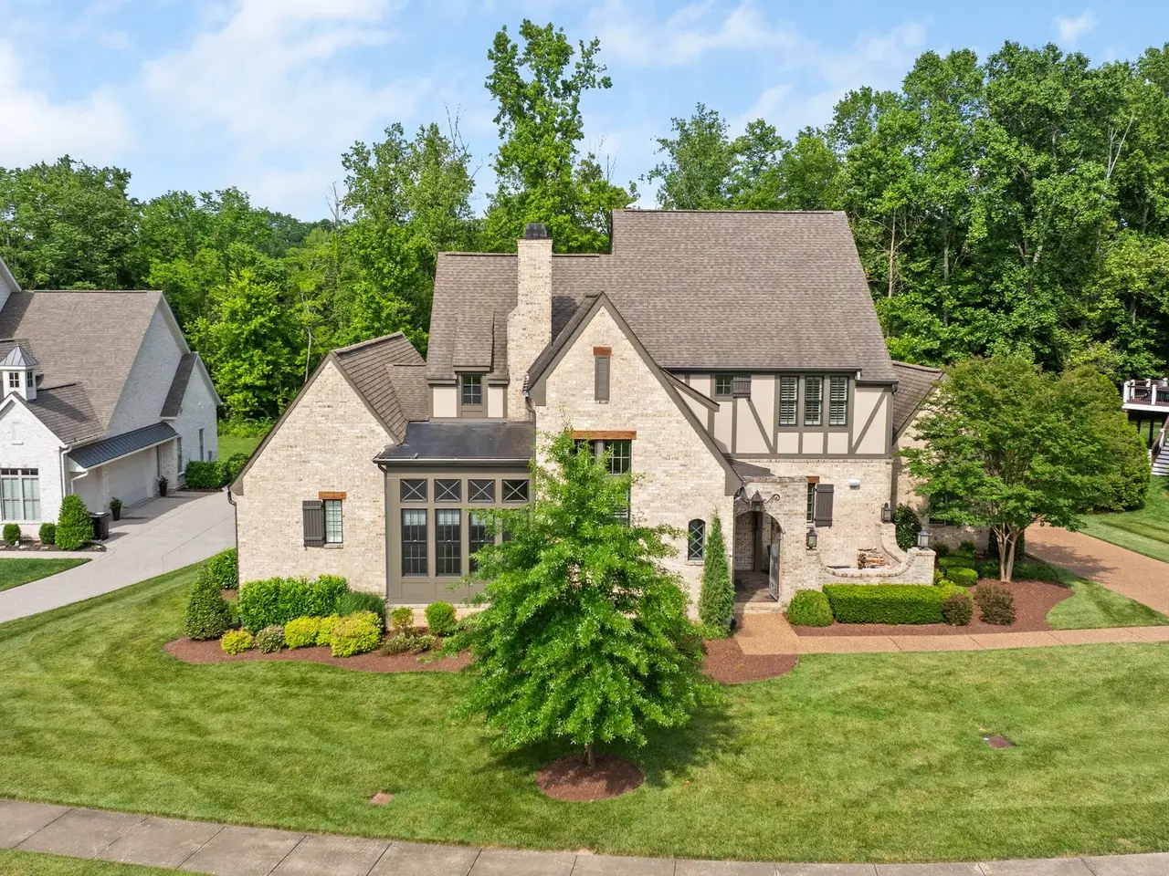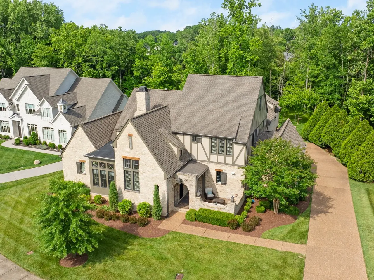 Tucked away on a peaceful cul-de-sac and backing to serene green space, this stunning home offers both privacy and luxury on a spacious lot perfect for everyday living and entertaining. Enjoy outdoor living at its finest with a screened-in porch, cozy outdoor fire pit, balcony overlooking the backyard, and a charming front courtyard--all complemented by a 3-car garage. Step inside to a thoughtfully designed layout with arched doorways and rich hardwoods throughout the main level. The open-concept living, kitchen, and dining areas flow seamlessly together and are anchored by an oversized center island, wood-beamed ceilings, and top-of-the-line appliances. A beverage center in the dining room makes entertaining effortless. The main-level primary suite is a true retreat with vaulted ceilings, a spa-inspired bath featuring a soaking tub, floor-to-ceiling tiled shower, double vanities, and a spacious walk-in closet. A dedicated main-level office adds functionality and flexibility. Upstairs, you'll find three generous bedrooms, each paired with access to one of three bonus/flex rooms--ideal for media, playroom, gym, or guest space. One bonus room is conveniently located with the secondary bedrooms, another is privately situated on the second level, and the third crowns the third floor, offering a full wet bar with a dishwasher, microwave, mini fridge, and electric cooktop--perfect for entertaining or a private guest suite. This home offers a rare combination of space, style, and thoughtful design in a location that feels like a private retreat yet is close to everything you need. Don't miss your chance to make it yours!