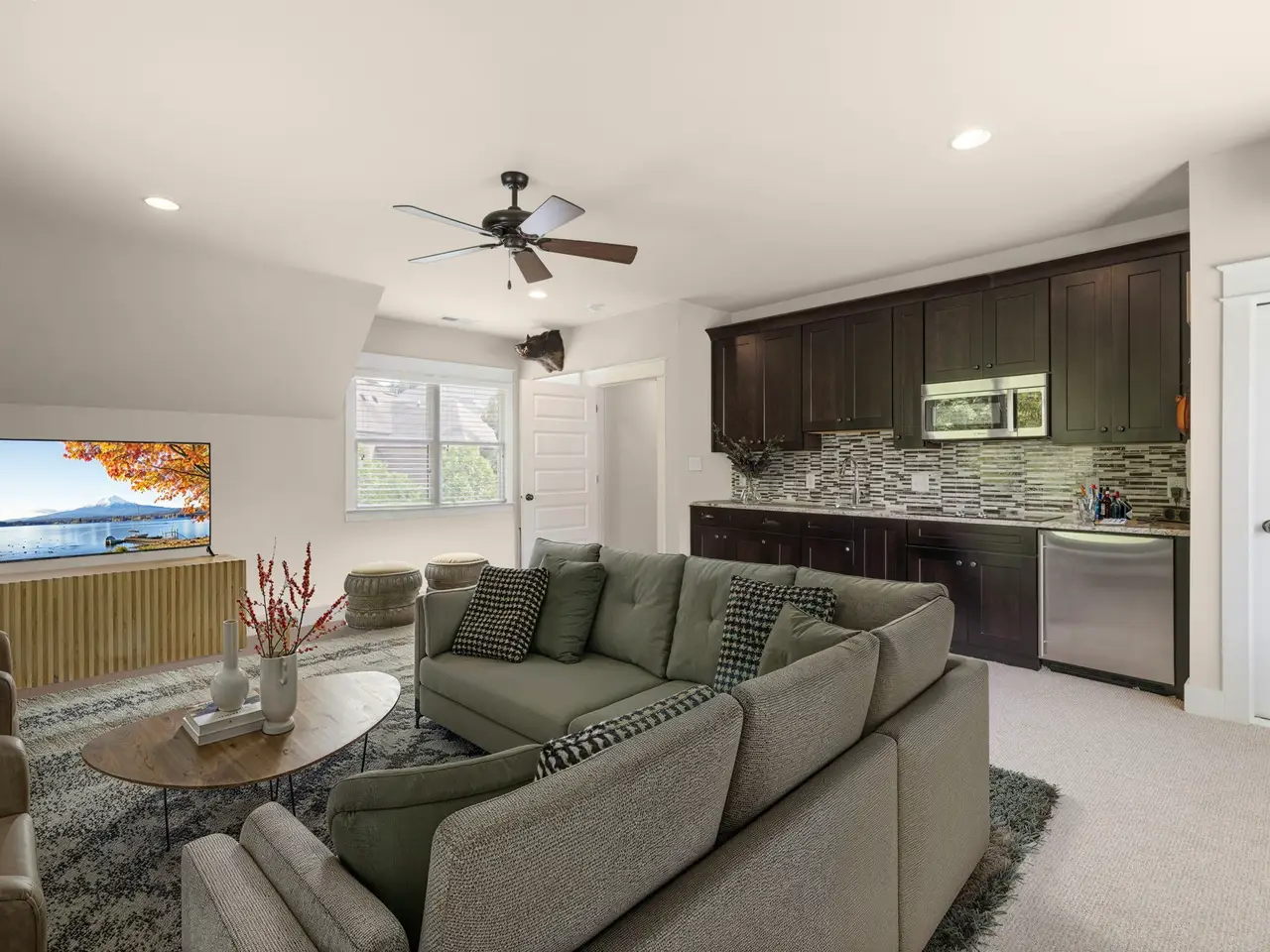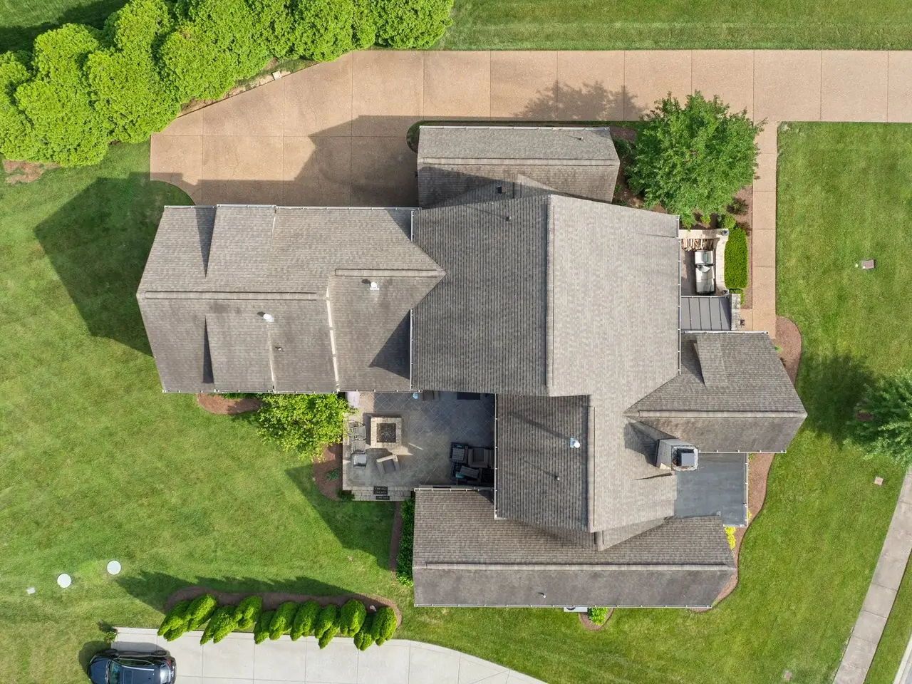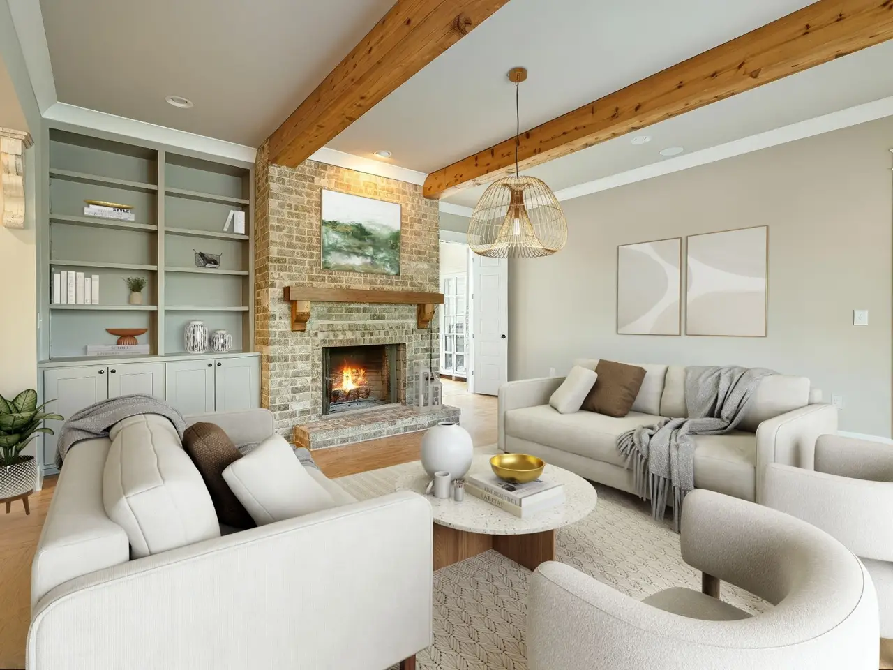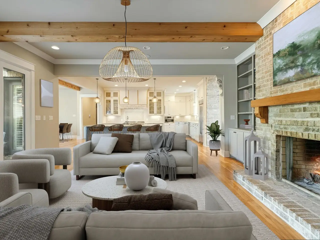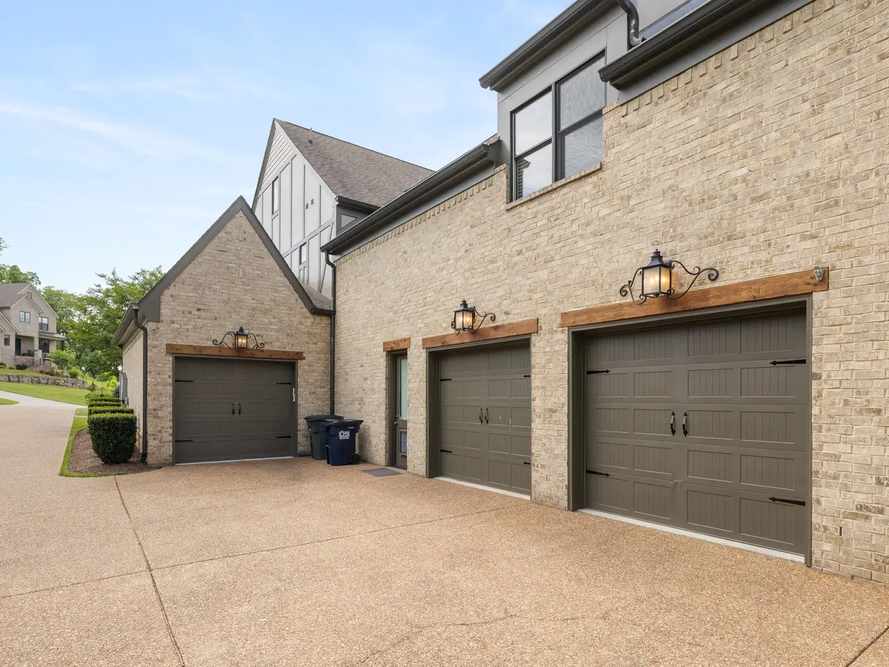 Tucked away on a peaceful cul-de-sac and backing to serene green space, this stunning home offers both privacy and luxury on a spacious lot perfect for everyday living and entertaining. Enjoy outdoor living at its finest with a screened-in porch, cozy outdoor fire pit, balcony overlooking the backyard, and a charming front courtyard--all complemented by a 3-car garage. Step inside to a thoughtfully designed layout with arched doorways and rich hardwoods throughout the main level. The open-concept living, kitchen, and dining areas flow seamlessly together and are anchored by an oversized center island, wood-beamed ceilings, and top-of-the-line appliances. A beverage center in the dining room makes entertaining effortless. The main-level primary suite is a true retreat with vaulted ceilings, a spa-inspired bath featuring a soaking tub, floor-to-ceiling tiled shower, double vanities, and a spacious walk-in closet. A dedicated main-level office adds functionality and flexibility. Upstairs, you'll find three generous bedrooms, each paired with access to one of three bonus/flex rooms--ideal for media, playroom, gym, or guest space. One bonus room is conveniently located with the secondary bedrooms, another is privately situated on the second level, and the third crowns the third floor, offering a full wet bar with a dishwasher, microwave, mini fridge, and electric cooktop--perfect for entertaining or a private guest suite. This home offers a rare combination of space, style, and thoughtful design in a location that feels like a private retreat yet is close to everything you need. Don't miss your chance to make it yours!