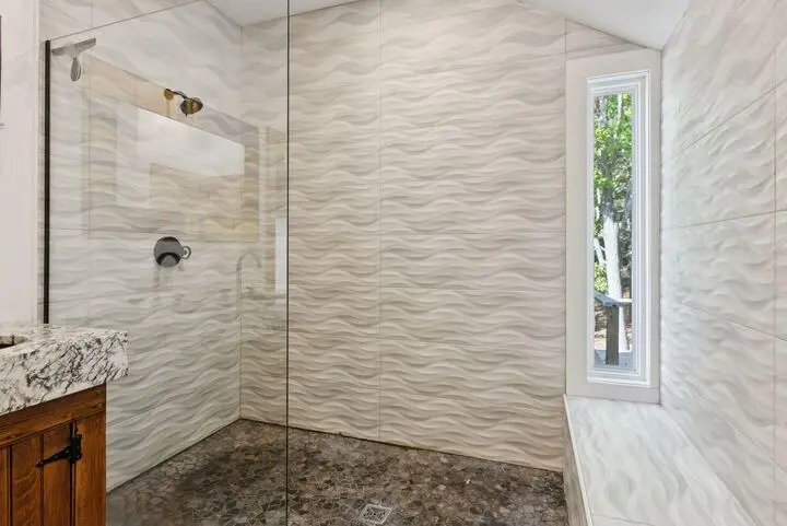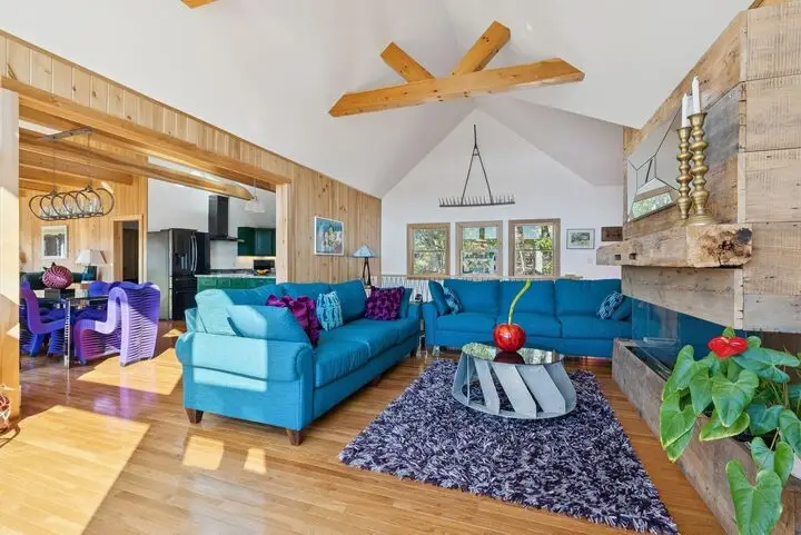 There's a certain feeling that comes with quality, and you'll sense it the moment you arrive at 49 Cottage Road. This stunning riverfront retreat captures the essence of modern coastal living. Every space has been thoughtfully designed for comfort and beauty, creating a home that feels as much like a work of art as it does a place to unwind. Step inside to a light filled living area where stained glass reflections dance across the walls. The reclaimed wood gas fireplace anchors the space while expansive windows frame sweeping views of the lawn and river beyond. The open kitchen and dining area lead to a wraparound deck. A guest bath with distinctive tile connects to the upper level guest bedroom and cozy sitting area. The serene primary suite offers deck access and a spa-like bath with a bidet, towel warmer, and oversized shower. The lower level blends comfort and entertainment with a custom built bar featuring a sink, ice maker, and mini fridge. A stone surrounded gas fireplace with a reclaimed wood mantle adds warmth, and sliding doors open to the patio. This level also includes a guest bedroom with outdoor access, a full bath, laundry room, workshop, and versatile office or bonus room. Set on over four acres with 800 feet of water frontage, this property rests at the very end of a private road surrounded by peace, quiet, and serenity. Manicured grounds framed by rock walls include a private ramp and float, with 2-3 feet at low tide. Rebuilt in 2021, this home captures the best of coastal Maine living with sunrises over the water, passing seals and ships, and the calm beauty of riverfront life, all just minutes from Bath and Brunswick, and 45 minutes to Portland.