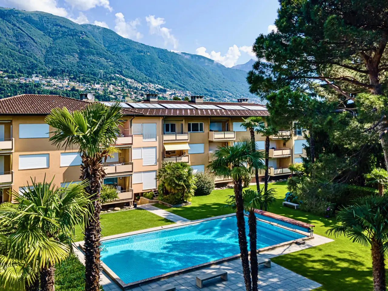 • Modern finishes & strategic location • Near the golf club of Ascona • Private park with large outdoor pool • Possible use secondary residence