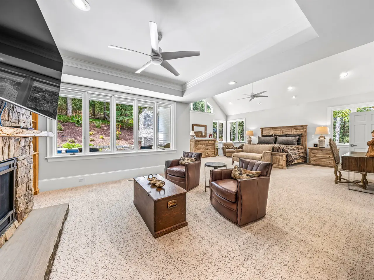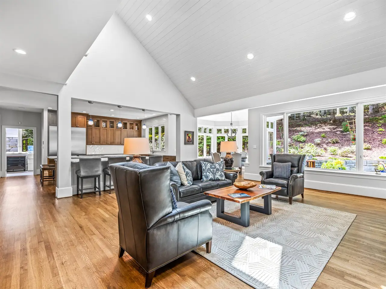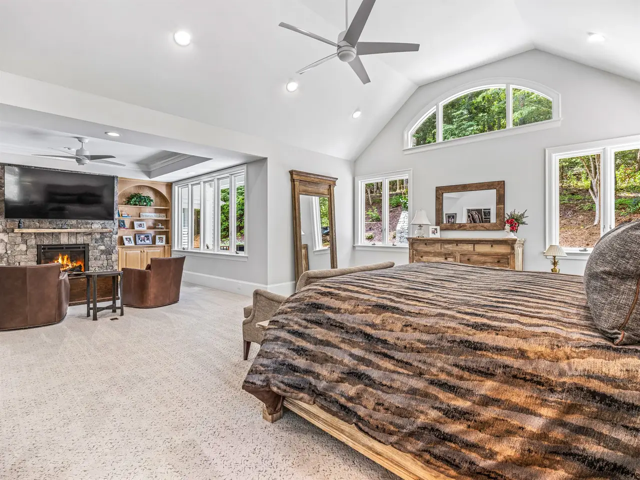 Unique opportunity to own a completely renovated custom home of the highest quality. Built of granite and wood with slate terraces on a 1.59 acre lot with a mountain view, you can easily bike to Carolina Day or take your golf cart to the membership Biltmore Forest Country Club. Attention to detail and tasteful neutral finishes will set the scene for your new lifestyle. Very spacious open vaulted rooms will entertain with aplomb. A lock off but connected upper-level apartment features its own full kitchen and breakfast area, a studio bedroom/sitting room, a full bath and a laundry closet and exterior entrance. Walk to trails and a bass pond. Centrally located deep within the community this home offers peace, privacy and convenience. Truly one of a kind.