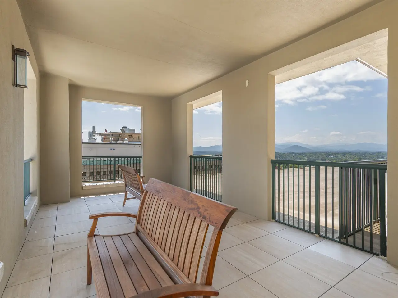 Enjoy living in the heart of Downtown Asheville in this light-filled, well-designed condo with views of the mountains and historic buildings. This spacious corner condo has its entrance off a multi-story atrium, elegantly furnished and inviting. The rooms are generously sized and open onto three balconies and a covered patio. The decor is neutral and will complement any style of furniture. In addition to ample storage within the unit, there is a separate large, lockable storage room that is heated and cooled. Owners have access to the rooftop with outdoor and indoor entertaining areas, an exercise room, and stunning views in all directions. The condo includes two secure parking spaces. This ideal location allows you to walk to numerous fine restaurants, eclectic shops, and entertainment venues. Experience urban living at its finest and discover why Asheville consistently ranks on so many lists of the best places to live.