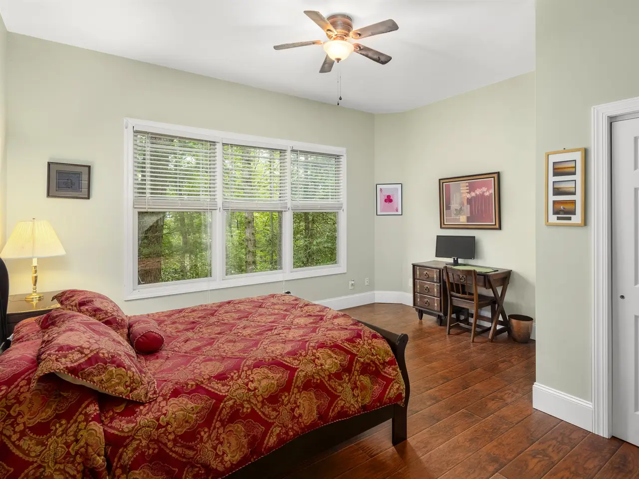 Situated in the heart of Biltmore Park, this five-bedroom home combines luxury, privacy, and convenience. The expansive primary suite on the main level offers a spa-like retreat with a jacuzzi tub, dual shower heads, and dual walk-in closets. Upstairs, three spacious bedrooms, including a shared bathroom suite and a private en-suite, are complemented by a versatile third-level bonus room. The breezeway connects the oversized three-car garage to the home, providing sheltered access. Entertain on the spacious deck or enjoy quiet moments on the mid-tier sunning and stargazing deck. A gourmet kitchen with a 6-burner gas range, ample storage and seating lends to effortless gatherings. Light filled great room features a floorto-ceiling stone fireplace. The lower level offers a granite bar, wine room, and game room with access to the lower deck for seamless indoor-outdoor living. Enhanced by a new roof (2025) and lush landscaping with fruit bushes.