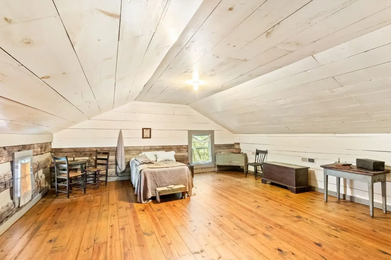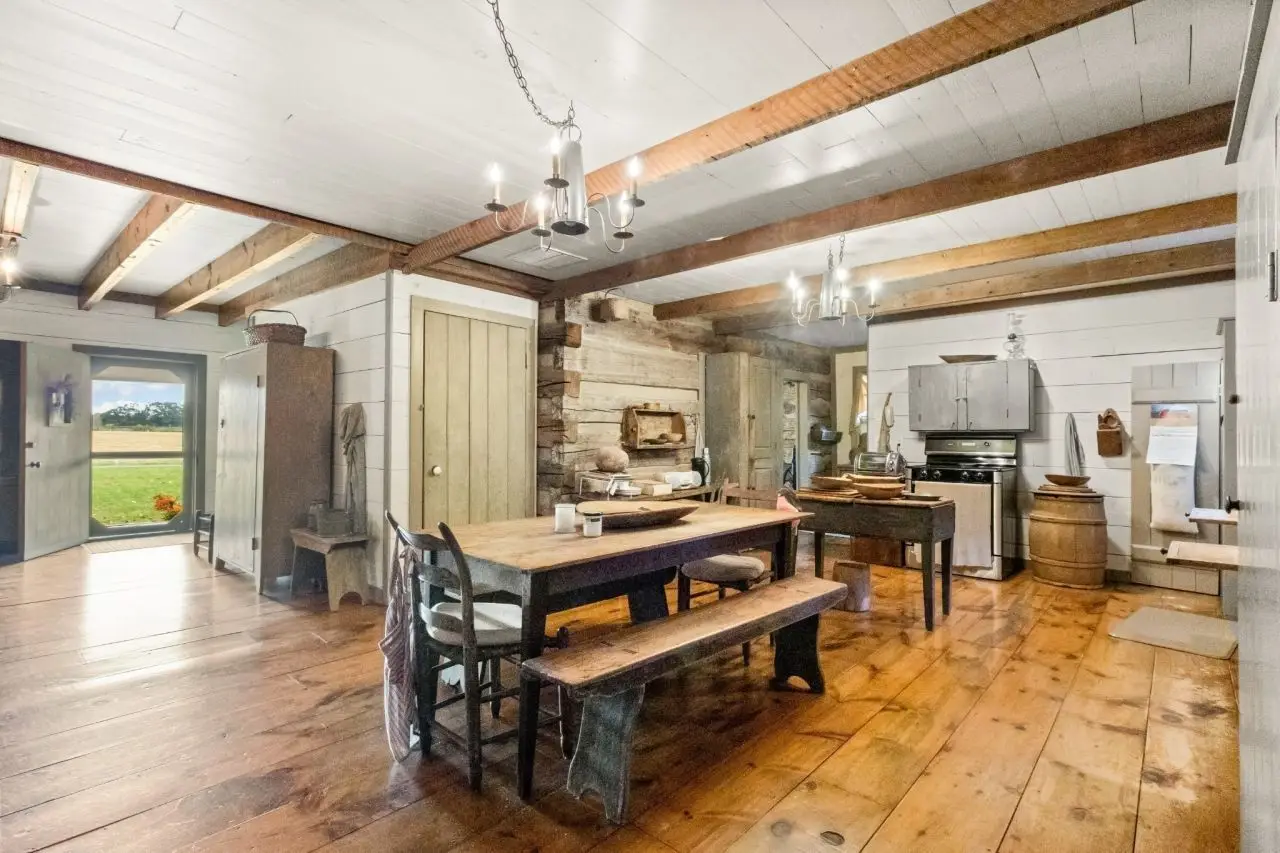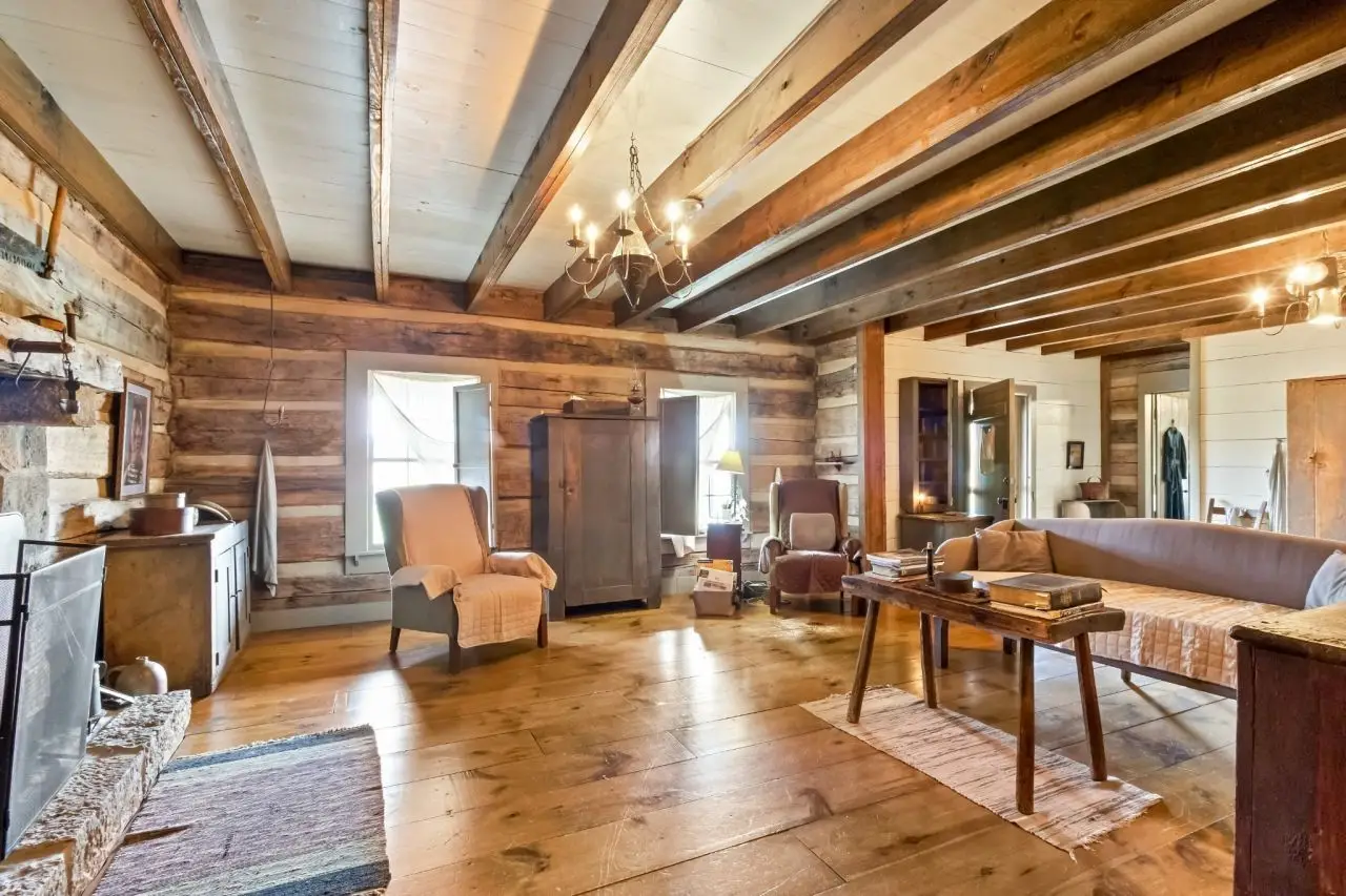 A step back in time in rural Tennessee on 14.5 acres!! Approximately 7 miles from Clarksville and 23 driving miles to Nashville! This log home was constructed originally around the 1800's in Cumberland Furnace, TN. The owner disassembled it and built it back with pine floors like the original and trims like the period of time it was in. It has been featured in magazines such as Simple Life, and Farm Bureau Women's tour of homes in 1994. There are living quarters in one building with 576 sq ft of living space. Another building is a workshop and there are two other structures and a carport. There are some wooded areas, but the land is mostly pasture land. This would make a great horse or cattle farm, a wedding venue, or bed and breakfast! The home is furnished with the same period cabinetry, flooring, and fixtures. There are additional poplar and oak logs to be able to add an another cabin that will convey with the property! Also, an additional 1.7 acre lot will only be offered with the house and land, price to be negotiated with home..