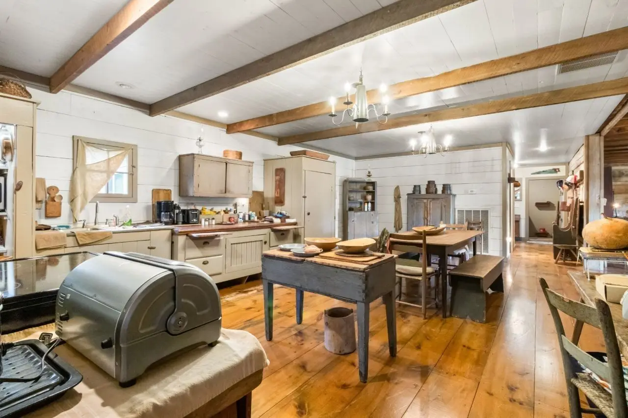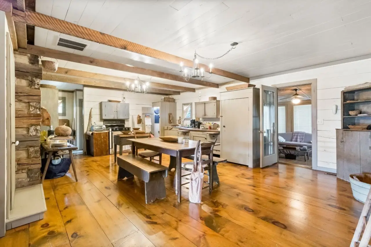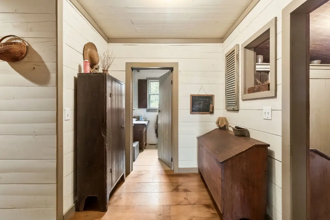 A step back in time in rural Tennessee on 14.5 acres!! Approximately 7 miles from Clarksville and 23 driving miles to Nashville! This log home was constructed originally around the 1800's in Cumberland Furnace, TN. The owner disassembled it and built it back with pine floors like the original and trims like the period of time it was in. It has been featured in magazines such as Simple Life, and Farm Bureau Women's tour of homes in 1994. There are living quarters in one building with 576 sq ft of living space. Another building is a workshop and there are two other structures and a carport. There are some wooded areas, but the land is mostly pasture land. This would make a great horse or cattle farm, a wedding venue, or bed and breakfast! The home is furnished with the same period cabinetry, flooring, and fixtures. There are additional poplar and oak logs to be able to add an another cabin that will convey with the property! Also, an additional 1.7 acre lot will only be offered with the house and land, price to be negotiated with home..