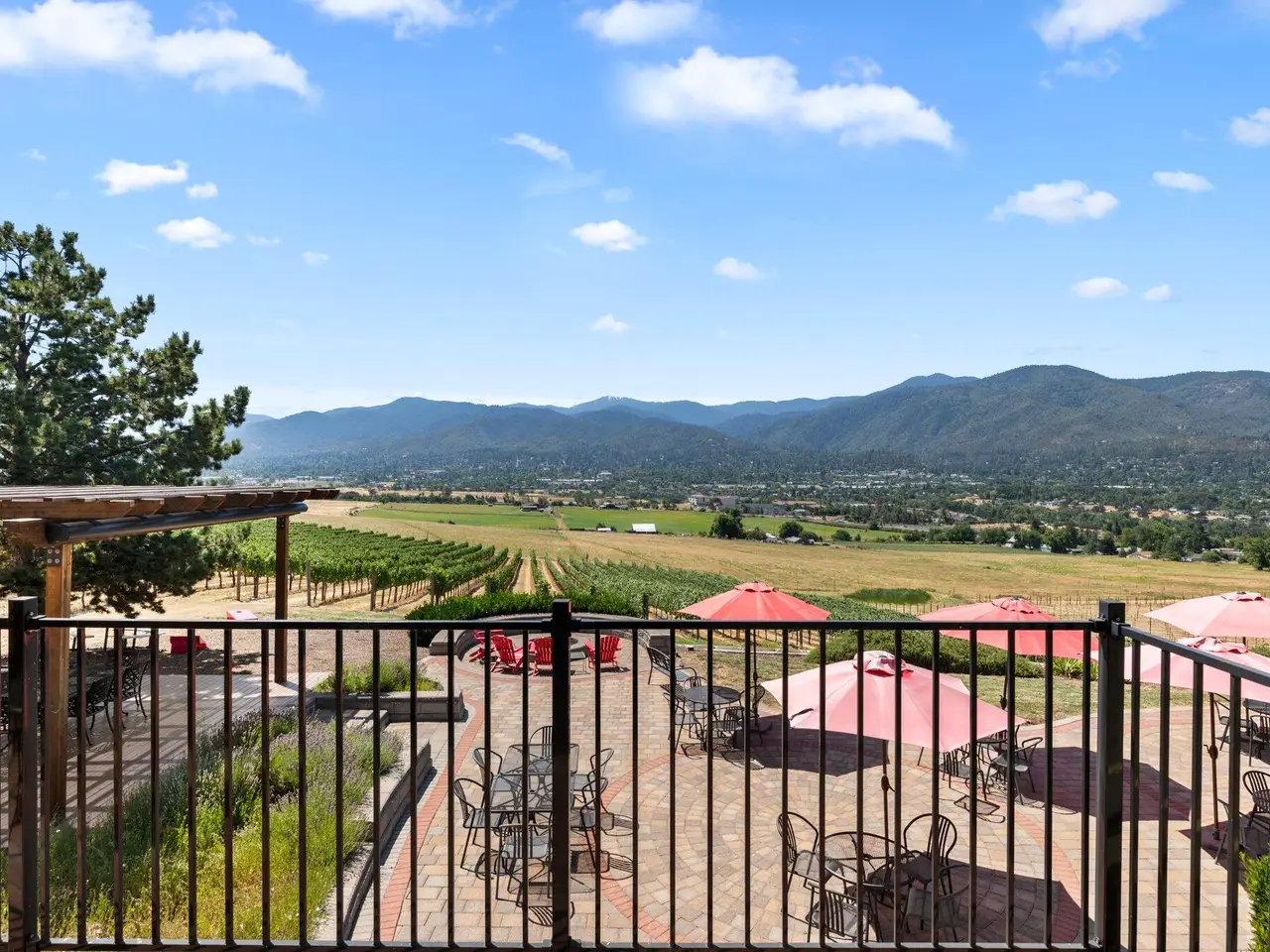 Dana Campbell Vineyards is a legacy wine business offering multiple avenues for growth with unparalleled proximity to Ashland's renowned cultural amenities. Elegantly remodeled tasting room residence with panoramic valley views, great room with service bar and gas fireplace, catering kitchen, break room, ADA-compliant bathrooms, and three guest suites ideal for boutique hospitality. Landscaped grounds with expansive paver patio, outdoor speakers, gas fire pit, composite deck and pergola with retractable awning, bocce ball court, and rose garden. State-of-the-art cold storage facility or potential winery building with glycol cooling system, fully irrigated acreage with southern exposure, over 13,000 established vines of eight estate-grown varietals producing 2,200 cases per year, seven additional acres ready for planting, wind turbine, frost fan, and all essential equipment included for turnkey tasting room operations. Inquire with agents to access additional documentation and details!